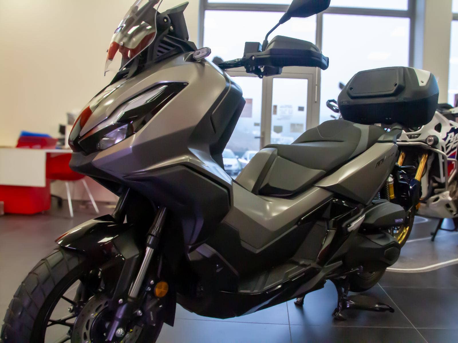 Nabízíme demo motocykl Honda ADV350 v šedé barvě, s nájezdem 641 km. Motocykl působí jistě, vyváženě a připravený vyrazit kamkoliv.