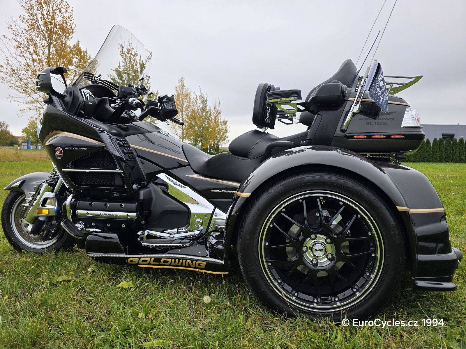 Dovoz v roce 2017. Honda Gold Wing GL1800 v profesionální přestavbě EML Martinique XGT (2021). Tento jedinečný stroj spojuje stabilitu tříkolky, komfort luxusního cestovního motocyklu a prémiový vzhled díky bohaté chromové i LED výbavě.