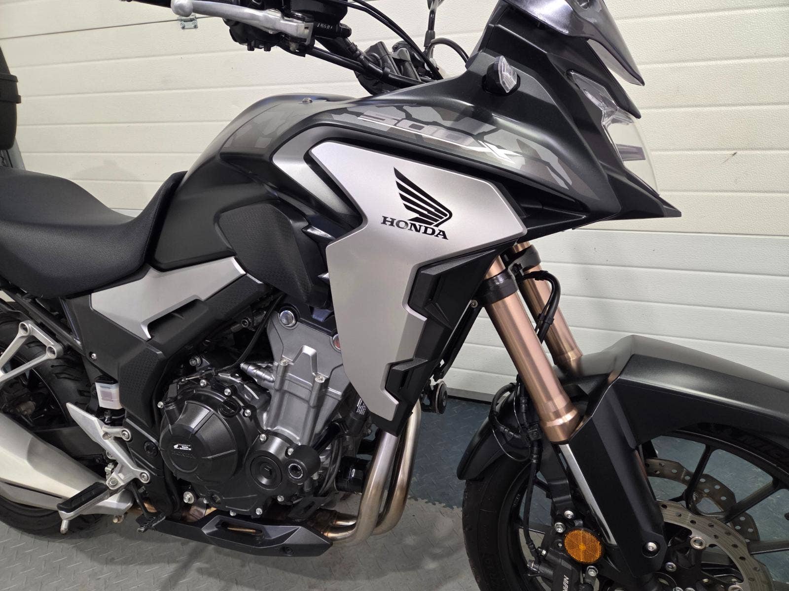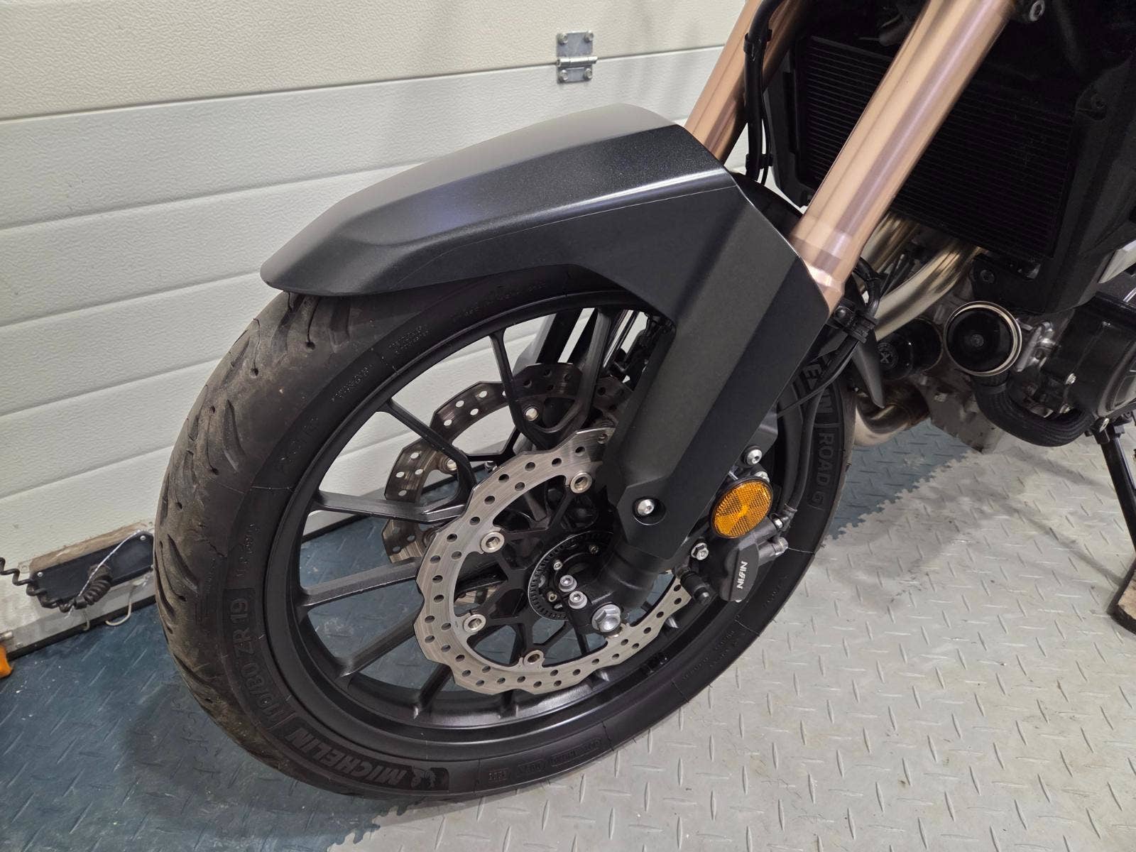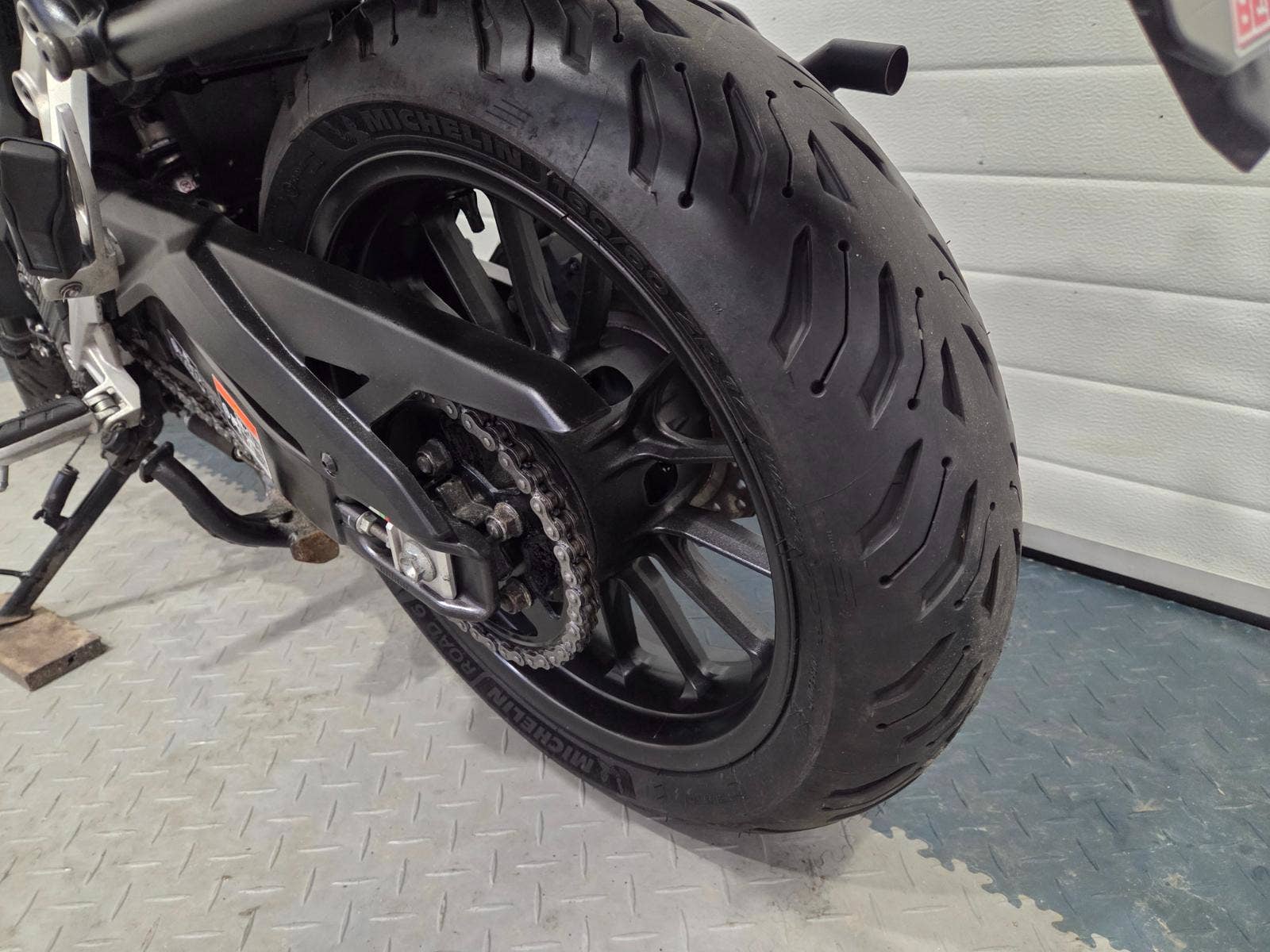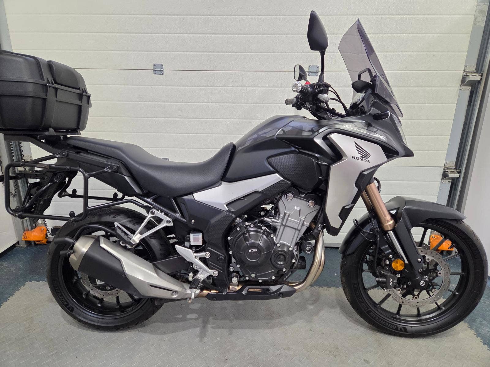 velká výbava: ABS, zásuvka, vysoké kouřové plexi, centrální stojan, 3x kufr s držáky, nástavec na výfuk aby se nepropálily kufry, pneu 80%, pádové protektory.