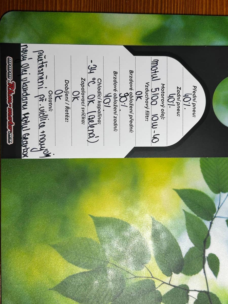 Po servisu – nový olej, filtry, olej v kardanu, přetěsněné přední vidlice, atd.