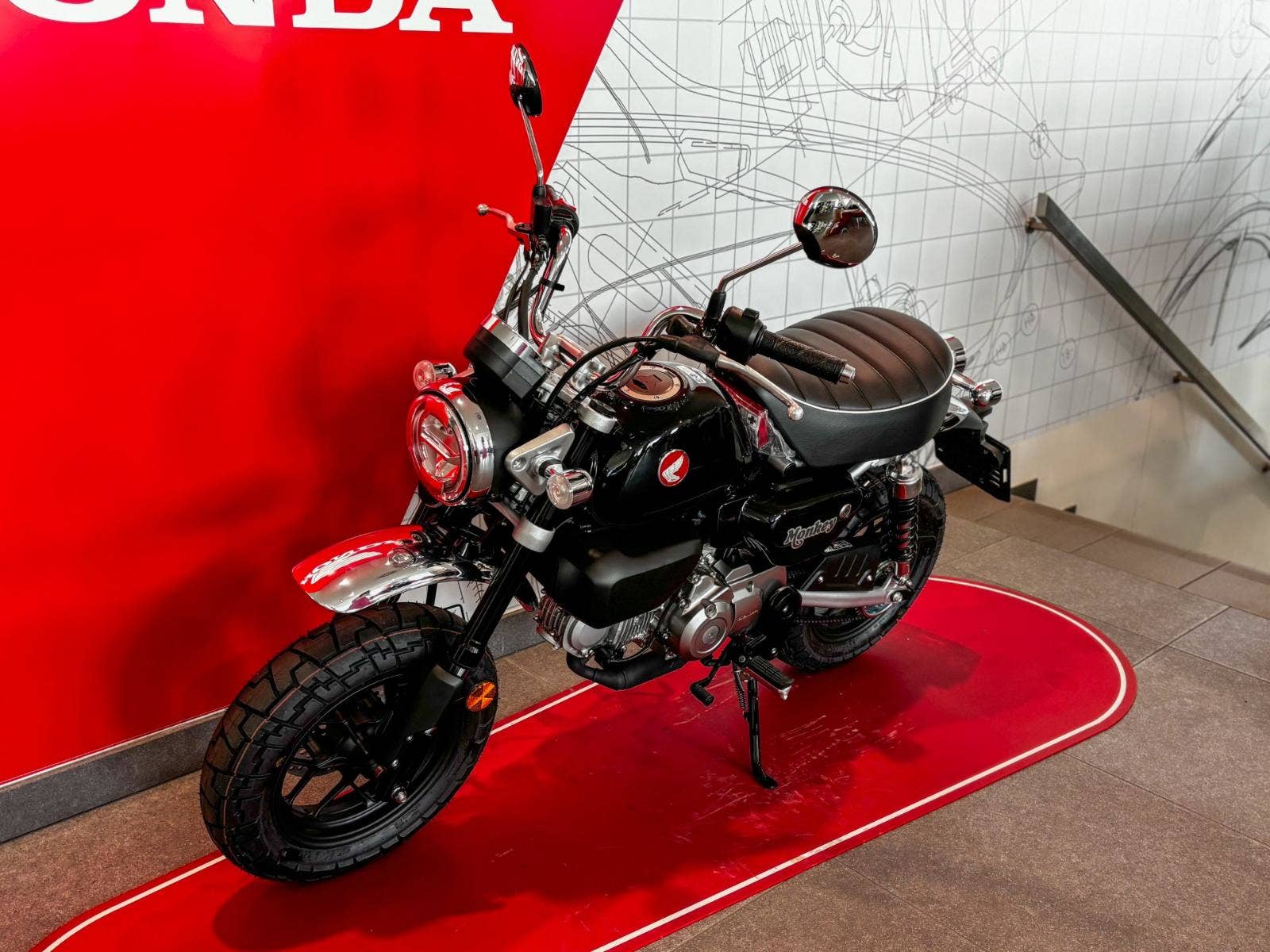 Modelu Monkey se nic jiného nevyrovná. Má svůj osobitý styl. A charakter, který se nedá k ničemu přirovnat. Chromovaná, vysoce posazená řídítka, a navíc rám, kyvná vidlice a tlumiče nalakované stejnou barvou jako drobná palivová nádrž – a vysoce zvednuté blatníky – to vše přitahuje pozornost, stejně jako mohutné pneumatiky s blokovým vzorkem. V jeho nitru se ale skrývá úplně nový, úsporný vzduchem chlazený motor o objemu 125 ccm a pětistupňová převodovka, které jsou přišroubované do robustního podvozku s brzdovým systémem ABS řízeným jednotkou IMU. Navíc je malý a lehký, váží pouhých 104 kg, má pohodlné sedlo ve výšce pouhých 775 mm nad zemí. Malý motocykl s velkým srdcem, který je zkonstruovaný tak, aby vás bavil. To je Monkey.