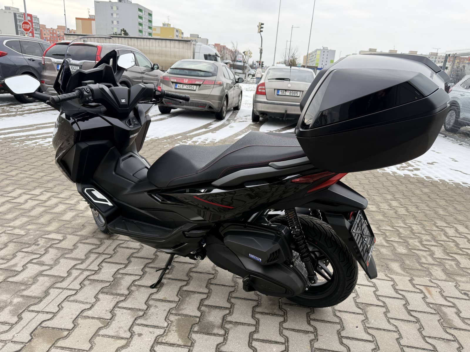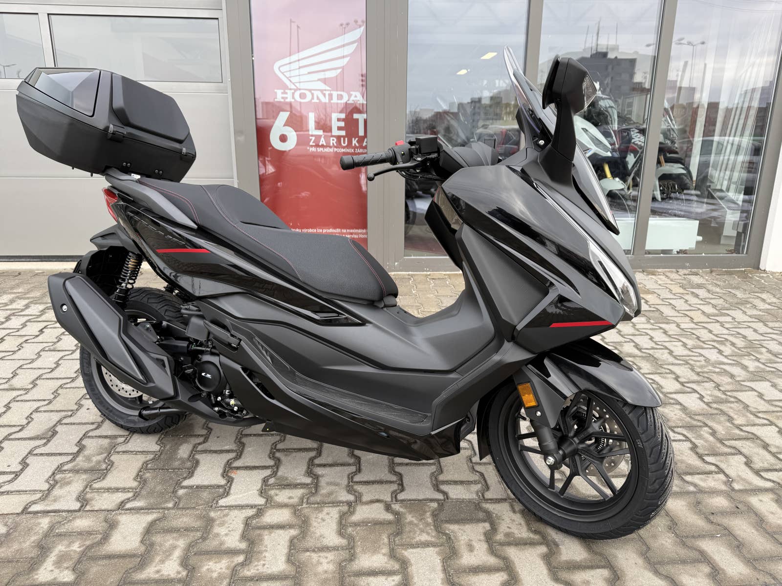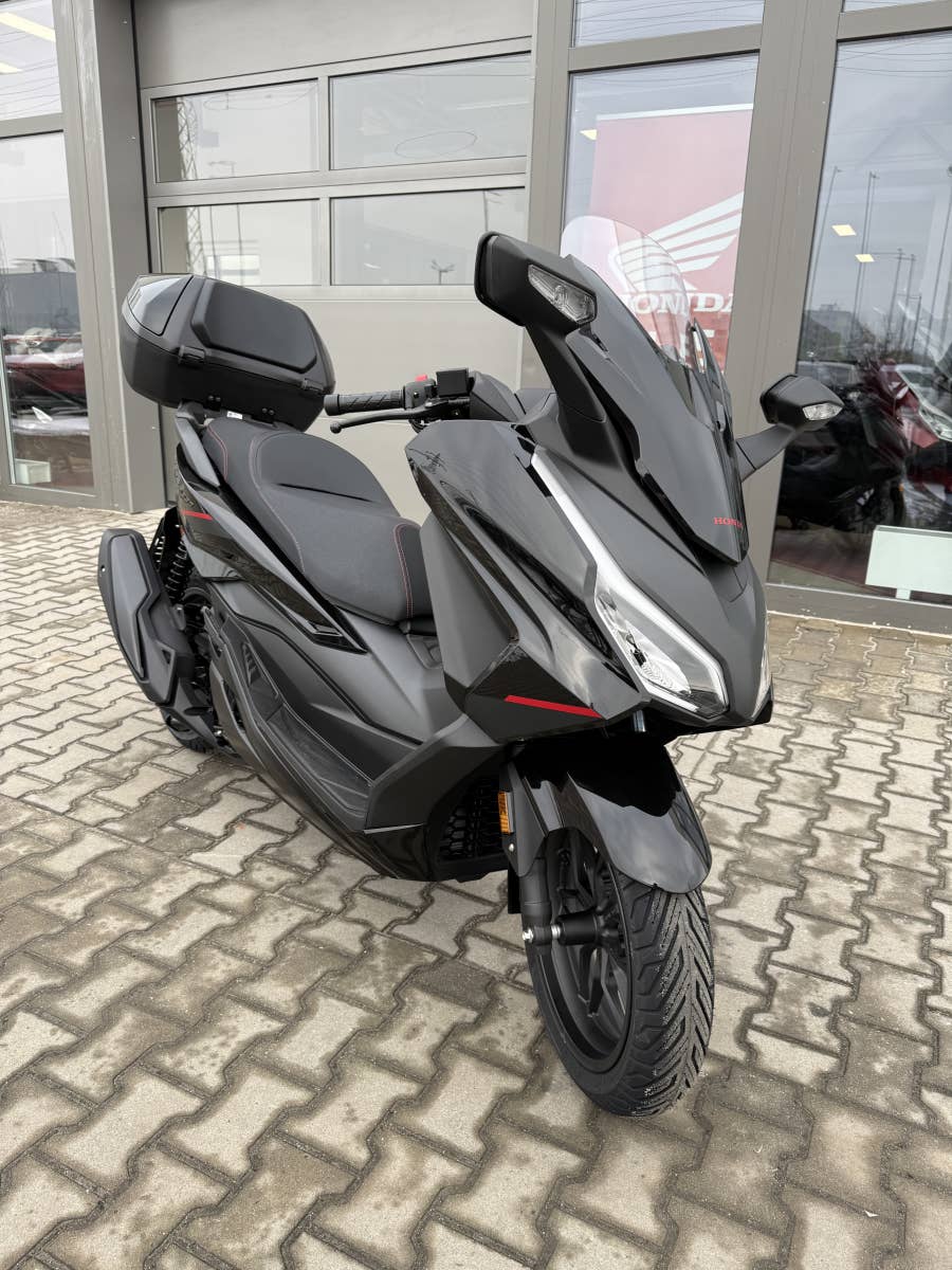 The Forza 350 je skutečný sportovní skútr GT, který nabízí silný výkon motoru, systém HSTC pro jistou jízdu a vynikající spotřebu paliva, to vše v elegantním designu s objemným úložným prostorem pod sedlem. Zůstaňte ve spojení po celý den díky 5palcovému TFT displeji a integraci Honda RoadSync, která poskytuje bezproblémový přístup k telefonním hovorům, hudbě a navigaci během jízdy.