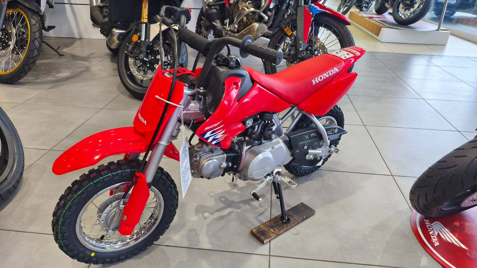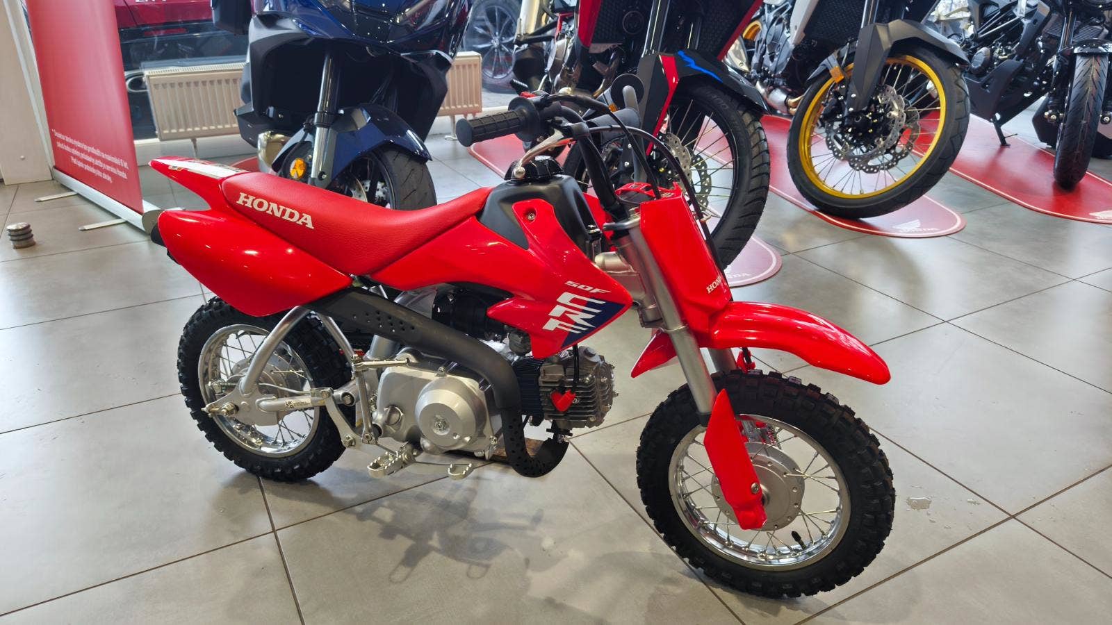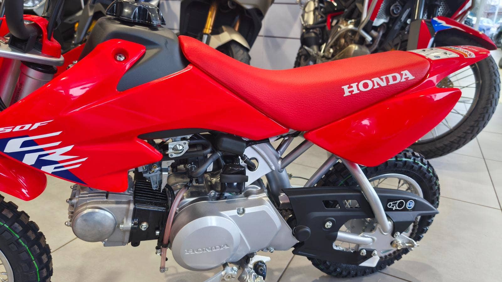 Nabízíme dětský motocykl Honda CRF50FS. Spolehlivý čtyřtaktní motor, jednoduché ovládání a odolná konstrukce – perfektní volba pro začátečníky i první jízdy v terénu.