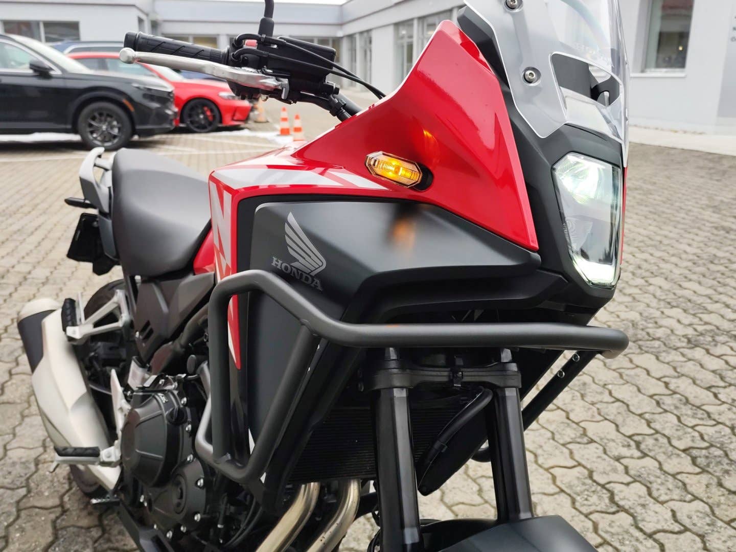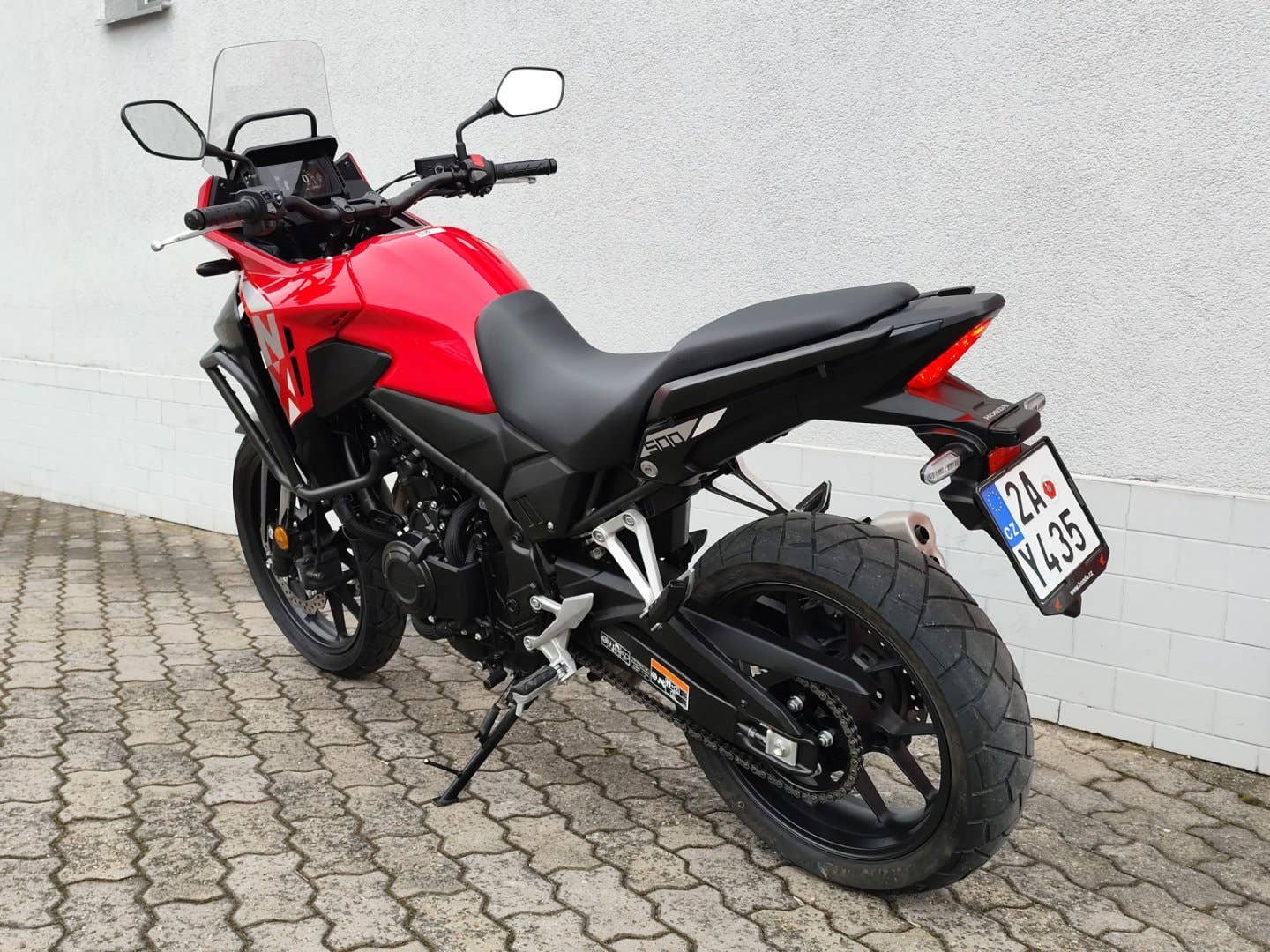 Doplňkový padací rám. Koupené v CZ. Elektronická servisní historie, první servis proveden 12.5.2025 při 905 km. Výkon a točivý moment motoru o objemu 471 cm3 zůstaly stejné – 35 kW a 43 Nm. Díky úpravám elektronické řídicí jednotky se zlepšila akcelerace a systém nastavitelné kontroly trakce Honda je nyní součástí standardní výbavy. Přední 41mm inverzní vidlice Showa SFF-BP a zadního tlumiče. Dva brzdové kotouče na předním kole jsou spojeny se dvoupístovými třmeny. LED světlomet přispívá k lepší viditelnosti při jízdě za tmy, zatímco nový 5palcový TFT displej ovládaný zjednodušeným a podsvíceným čtyřsměrovým přepínačem disponuje technologií Honda RoadSync. Pro bližší informace kontaktujte prodejce na tel. čísle 777 777 139, 777 777 293; Tato inzerce není návrh na uzavření kupní smlouvy dle zákona 89/2012 Sb.