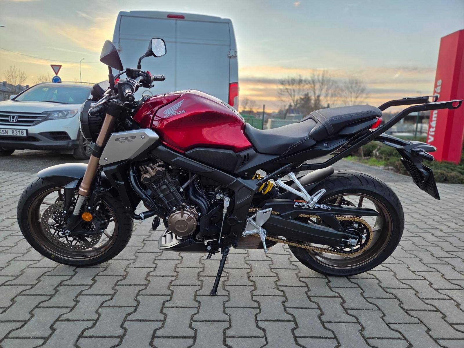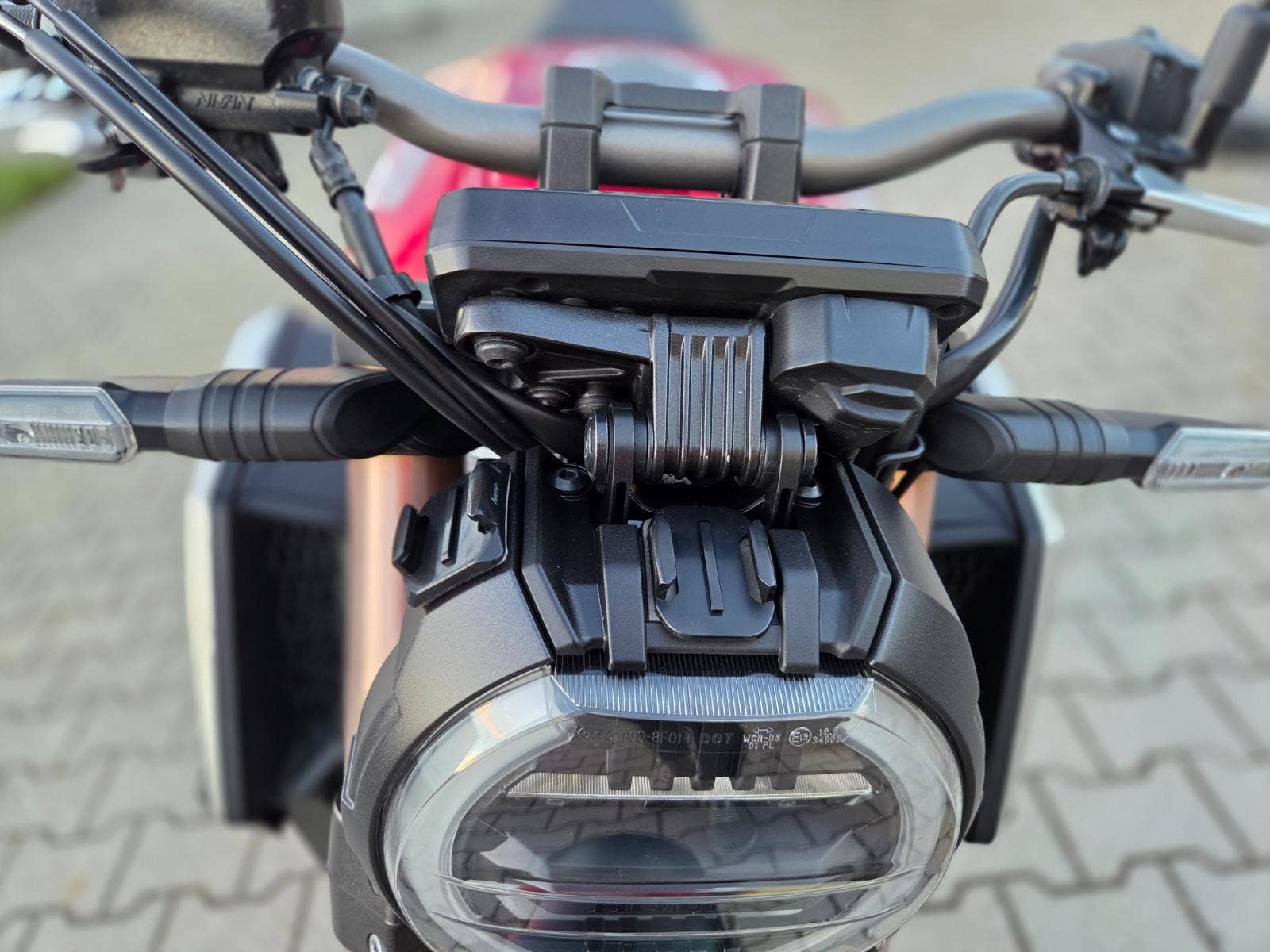Výbava: Držák kufru bez plotny, quickshifter (pouze nahoru), klín pod motor, tankpad. Mřížka chladiče a plexi Puig k moto, nenamontováno.