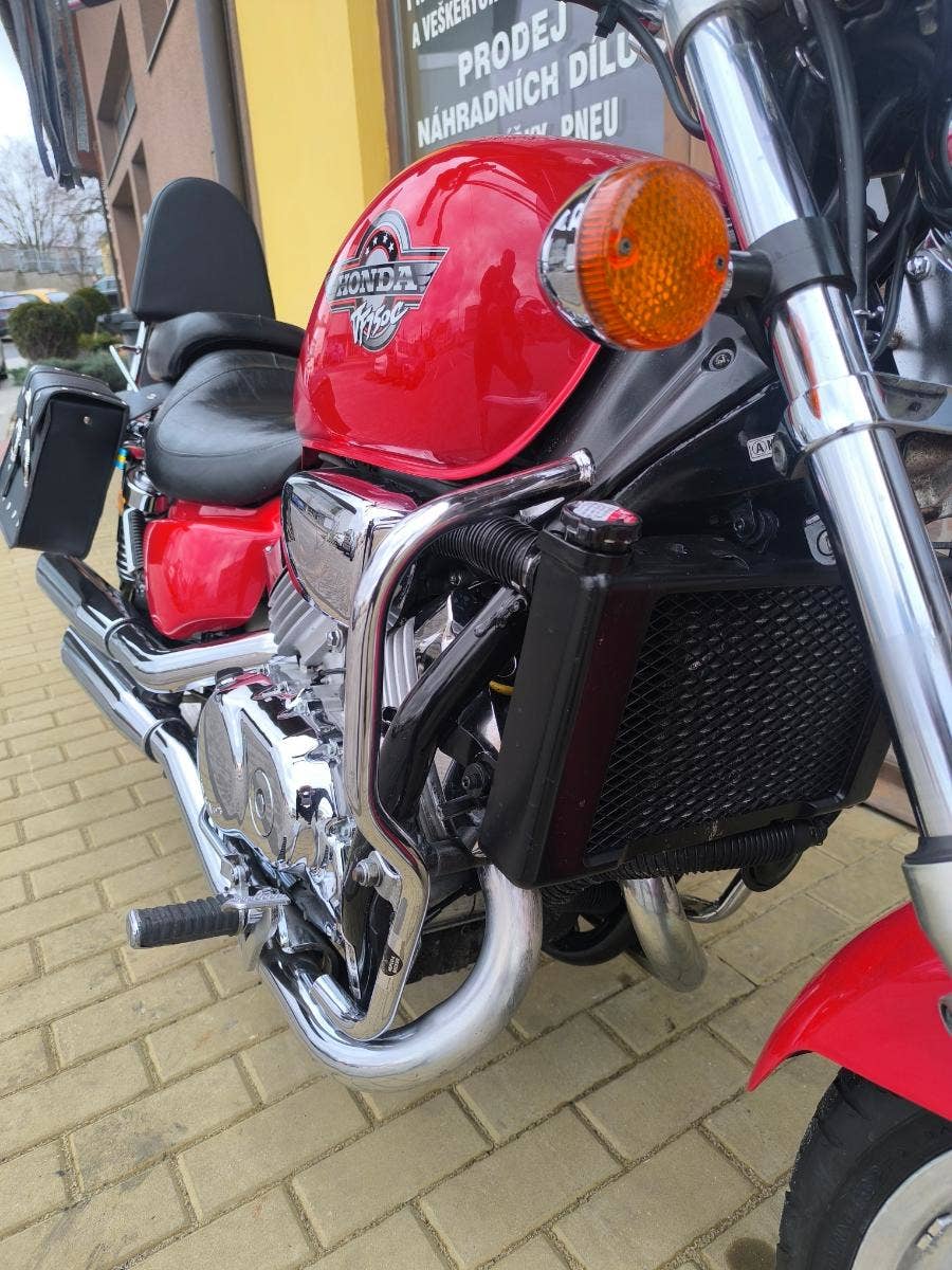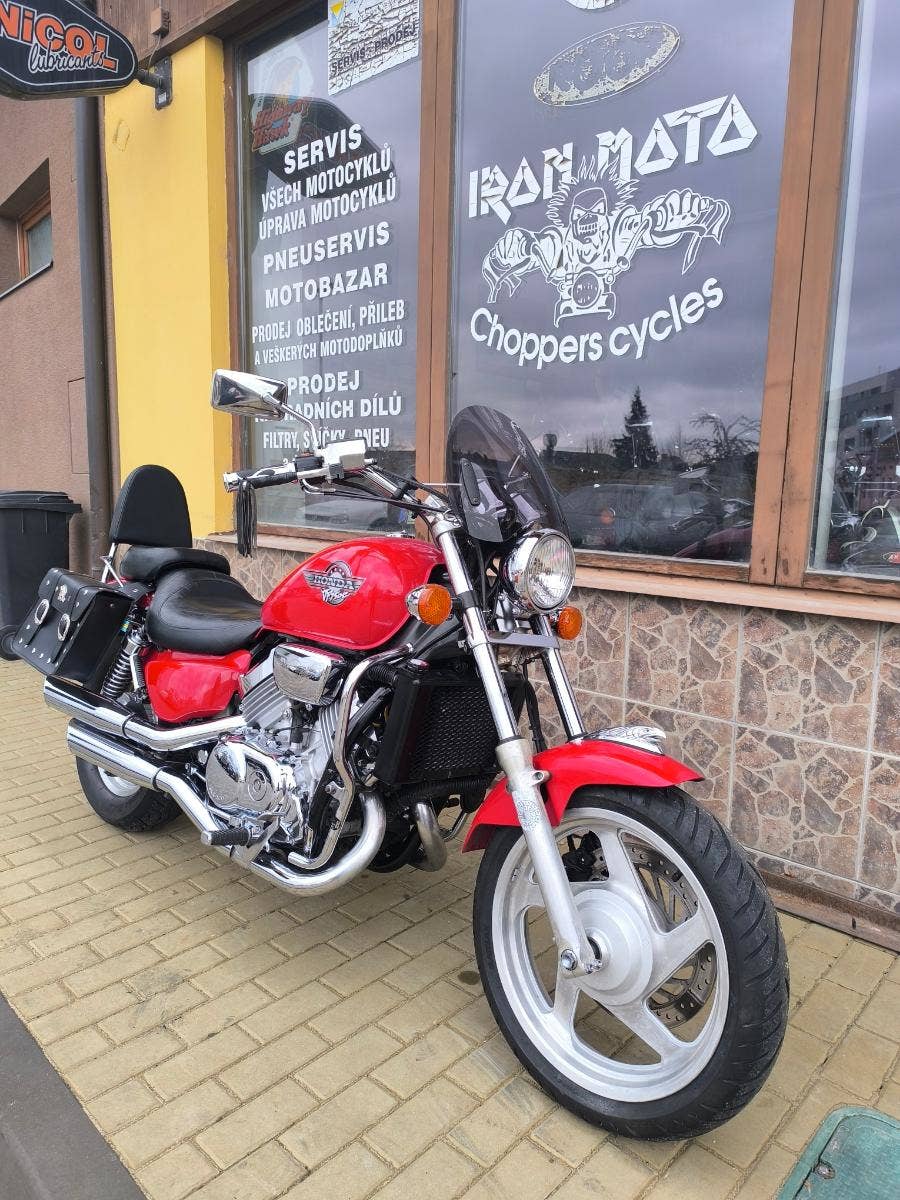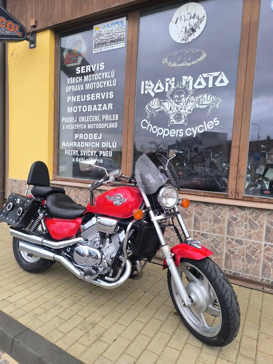 Prodám honda VF 750 C Magna r.v. 94 najeto 53 300 km a výkon 64 kW. Magna je svižný Chopper s motorem V 4 nádherný charakteristický zvuk. Motorka je velmi zachovalá chromy super a v perfektním technickém stavu po seřízení karburátorů, kontrole všech náplní, nové svíčky, nový vzduchový filtr a nová STK na 4 roky. Připravena na sezonu bez investic. Doplňky, plexi, padák, opěrka, podpěry + brašny. Pro více info tel. Před návštěvou volat!!! Po dohodě motorku i dovezeme. Při zakoupení sleva v našem motoschopu. Zajistíme vám servis, díly a doplňky. jsme již od roku 1999 IRON MOTO