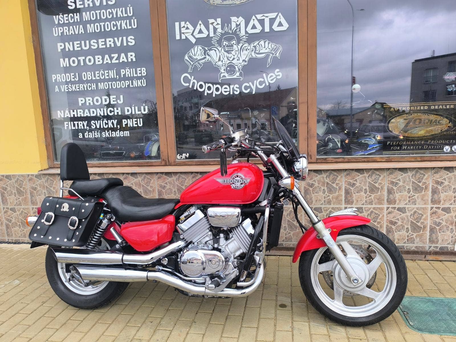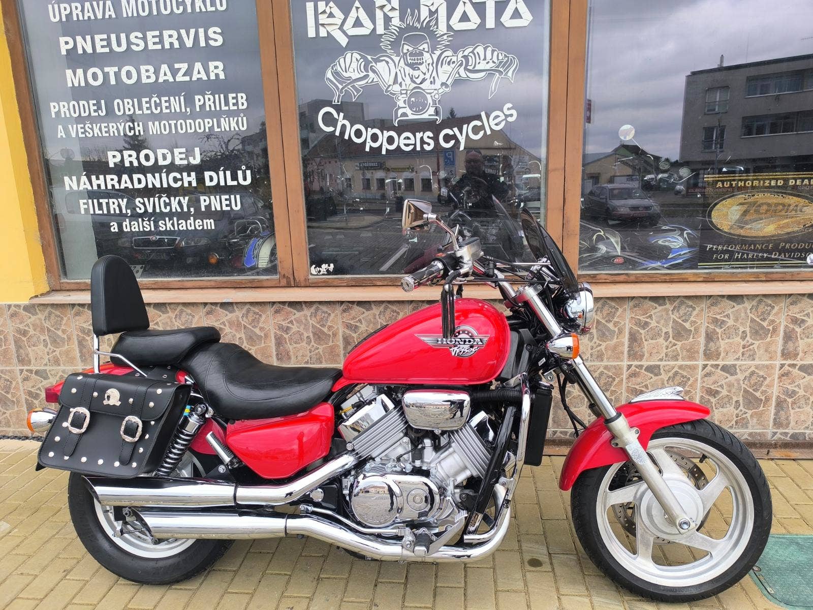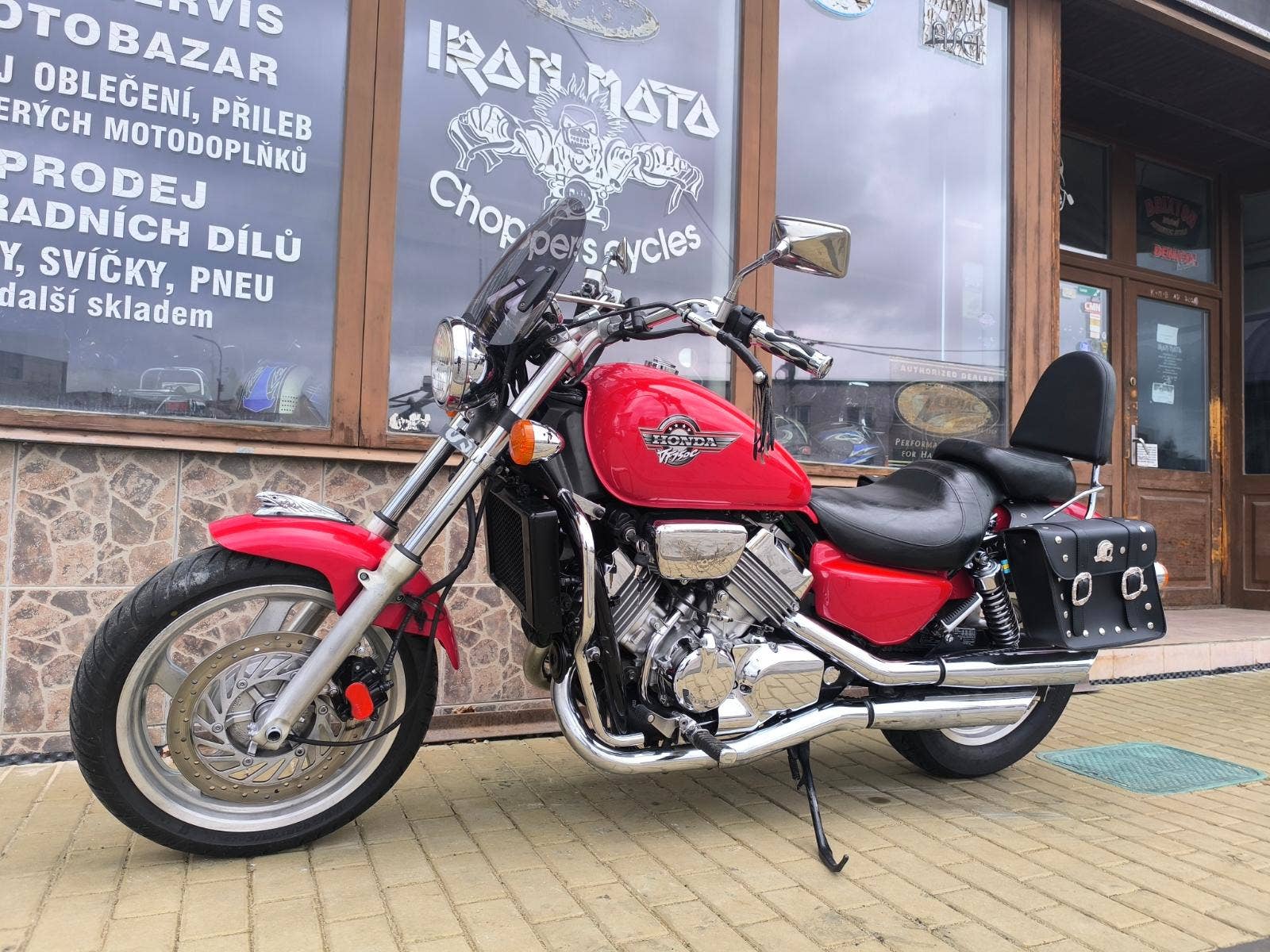 Prodám honda VF 750 C Magna r.v. 94 najeto 53 300 km a výkon 64 kW. Magna je svižný Chopper s motorem V 4 nádherný charakteristický zvuk. Motorka je velmi zachovalá chromy super a v perfektním technickém stavu po seřízení karburátorů, kontrole všech náplní, nové svíčky, nový vzduchový filtr a nová STK na 4 roky. Připravena na sezonu bez investic. Doplňky, plexi, padák, opěrka, podpěry + brašny. Pro více info tel. Před návštěvou volat!!! Po dohodě motorku i dovezeme. Při zakoupení sleva v našem motoschopu. Zajistíme vám servis, díly a doplňky. jsme již od roku 1999 IRON MOTO