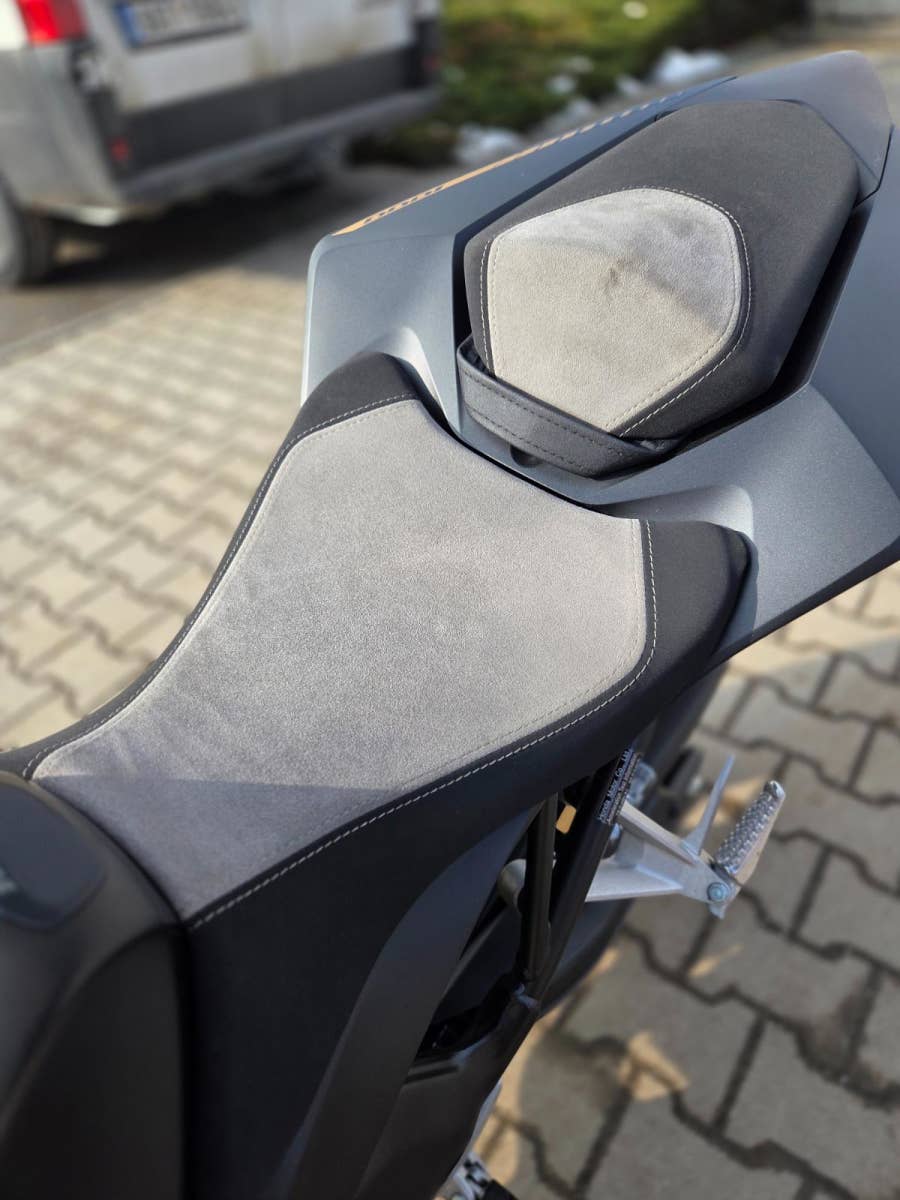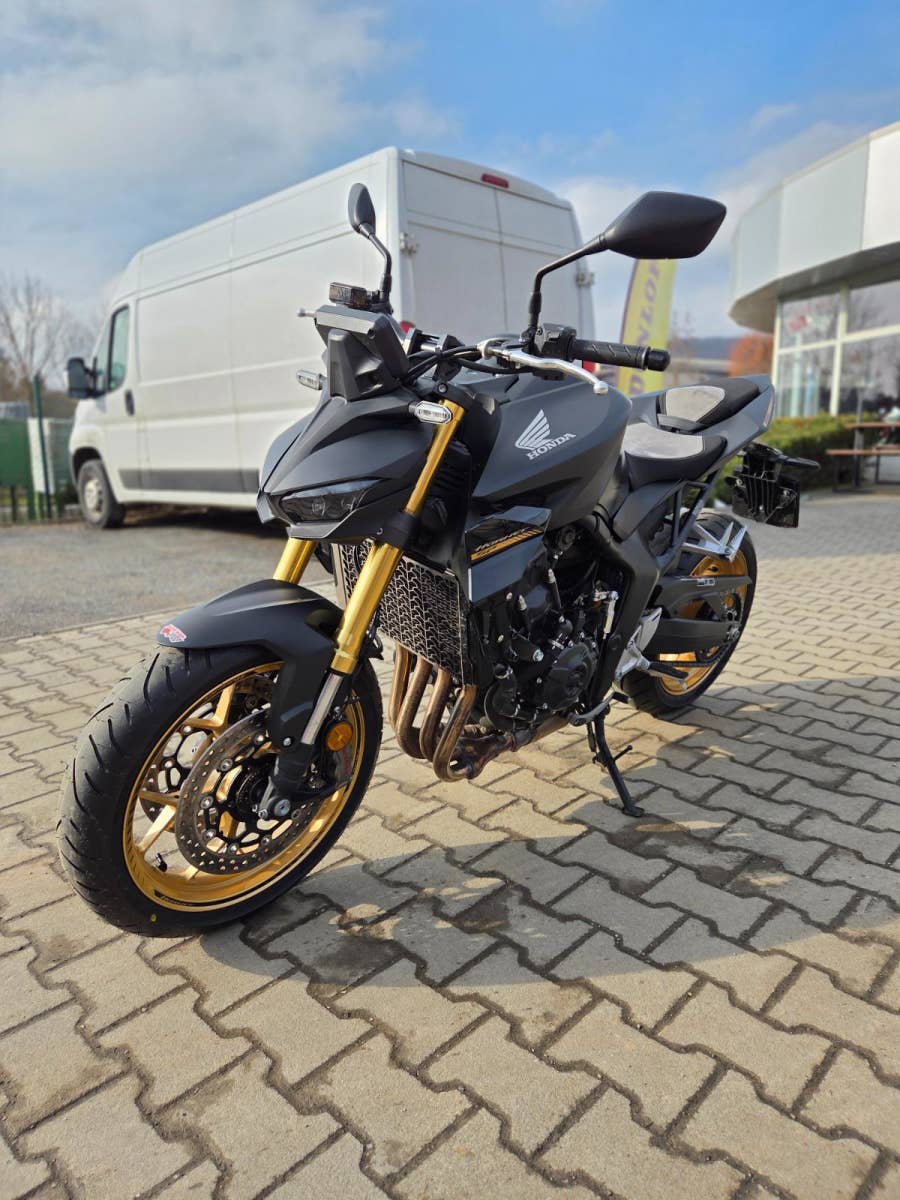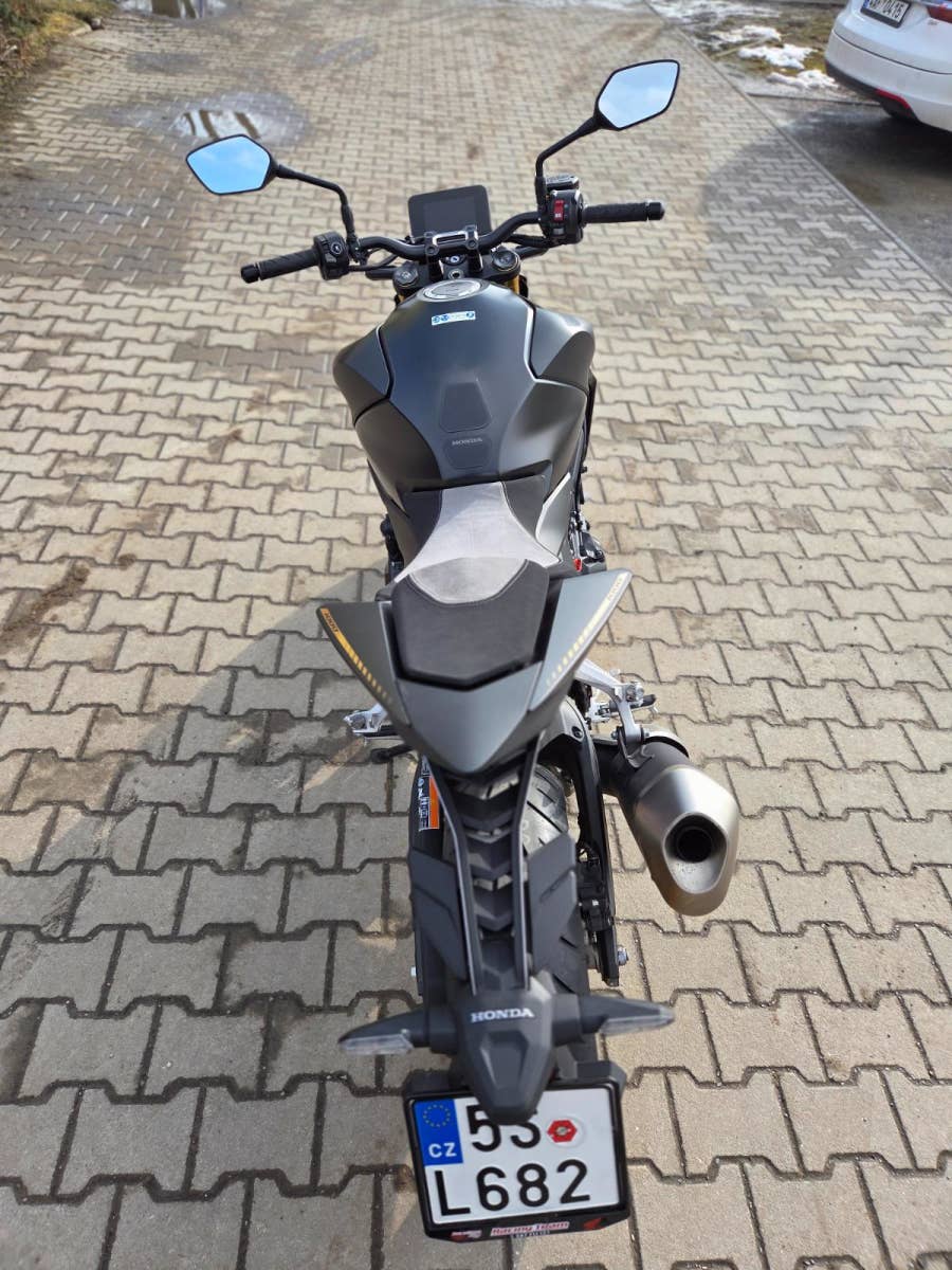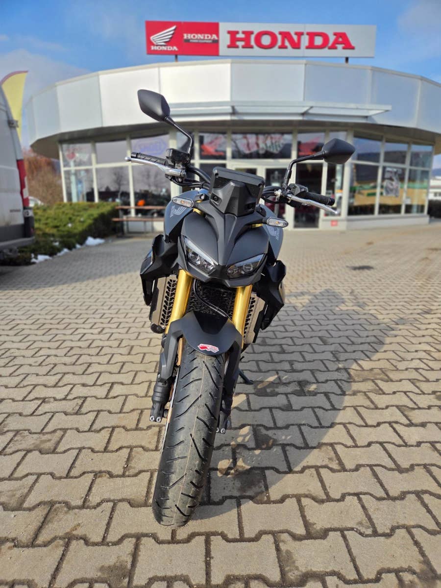 Výbava: proužky na ráfcích, quickshifter, zátka oleje, sedačky Alcantara, mřížka chladiče, tankpad