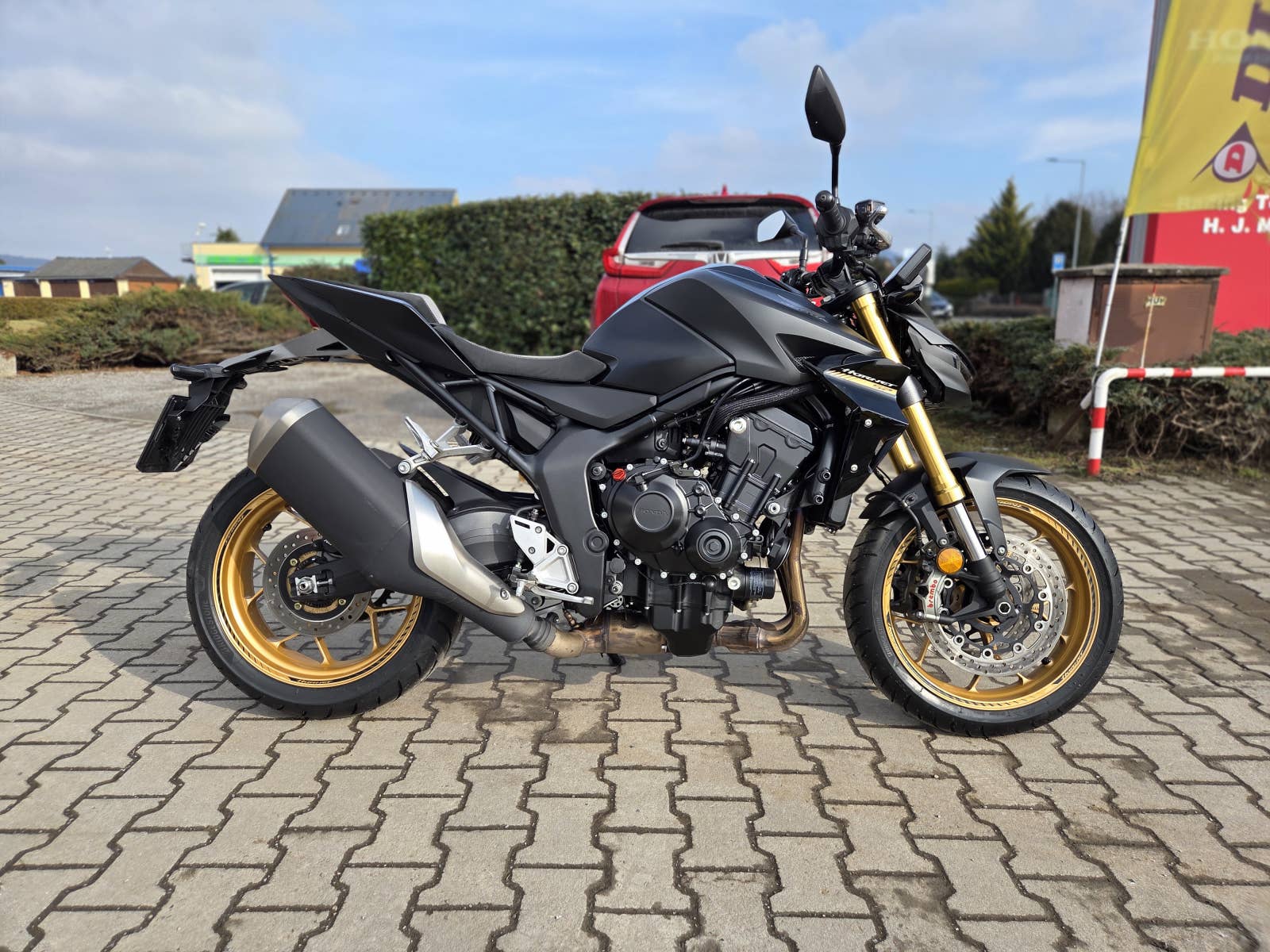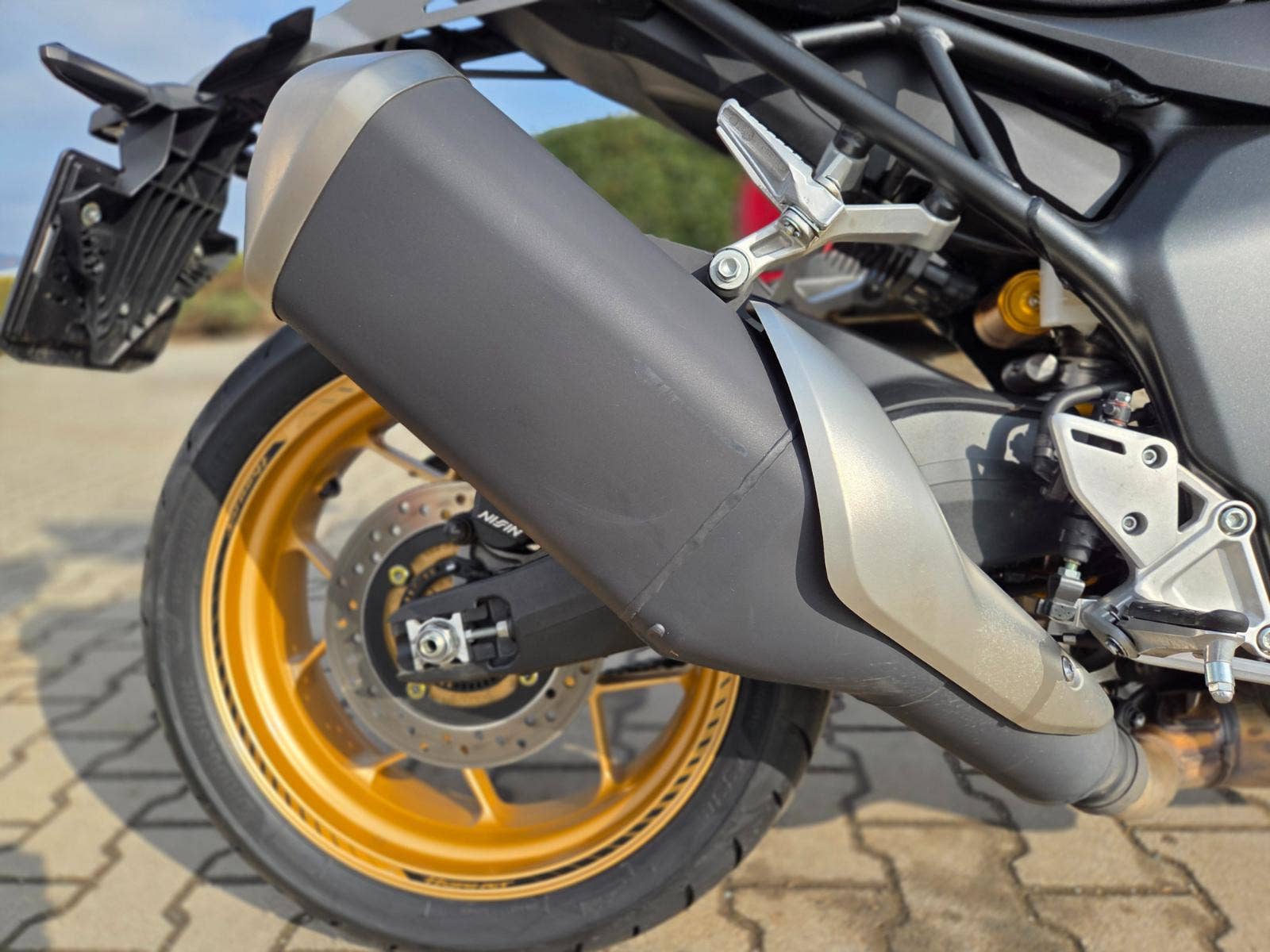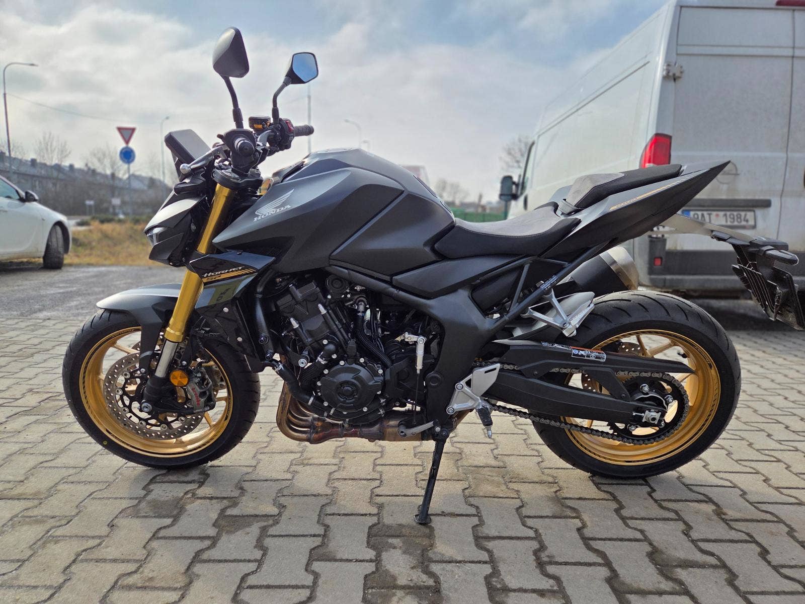 Výbava: proužky na ráfcích, quickshifter, zátka oleje, sedačky Alcantara, mřížka chladiče, tankpad