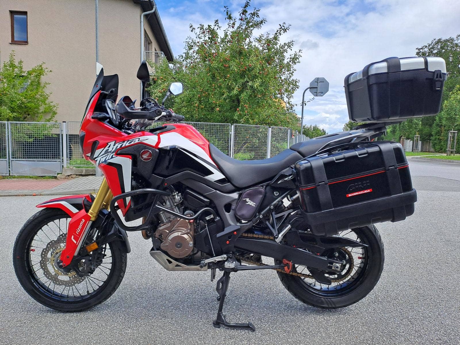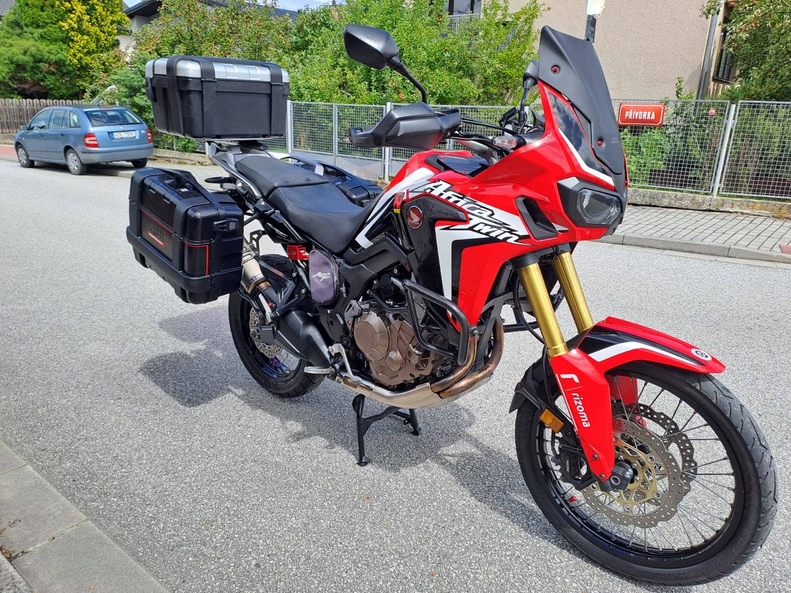 Honda CRF 1000 Africa Twin ABS r.v. 2016 naj. 55000 km, pěkný stav, pěkné pneu, 2ks klíčů, centrální stojan, laděný výfuk Termignoni, padací rám, vyřívané rukojeti, sada tří kufrů, originální plexi k motocyklu… atd. Cena motocyklu včetně STK na 4 roky 217000Kč. Možnost splátkového prodeje od společnosti Essox. 776288873