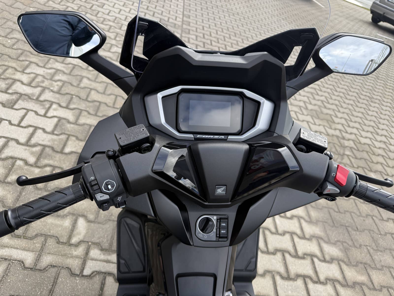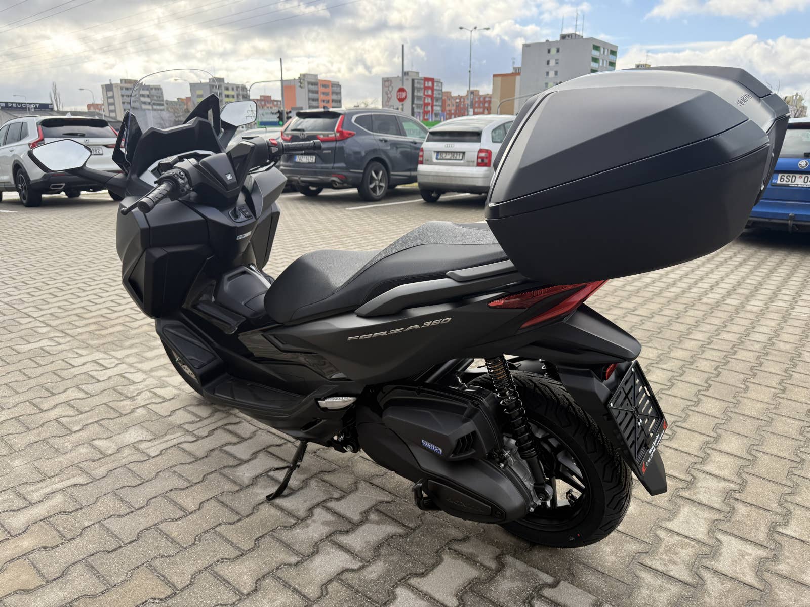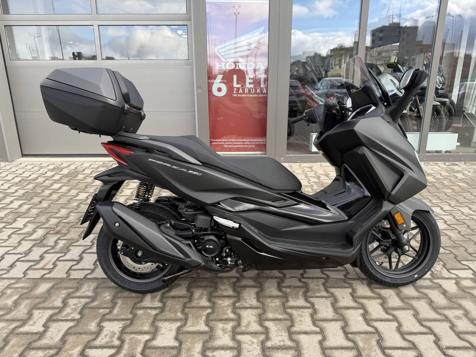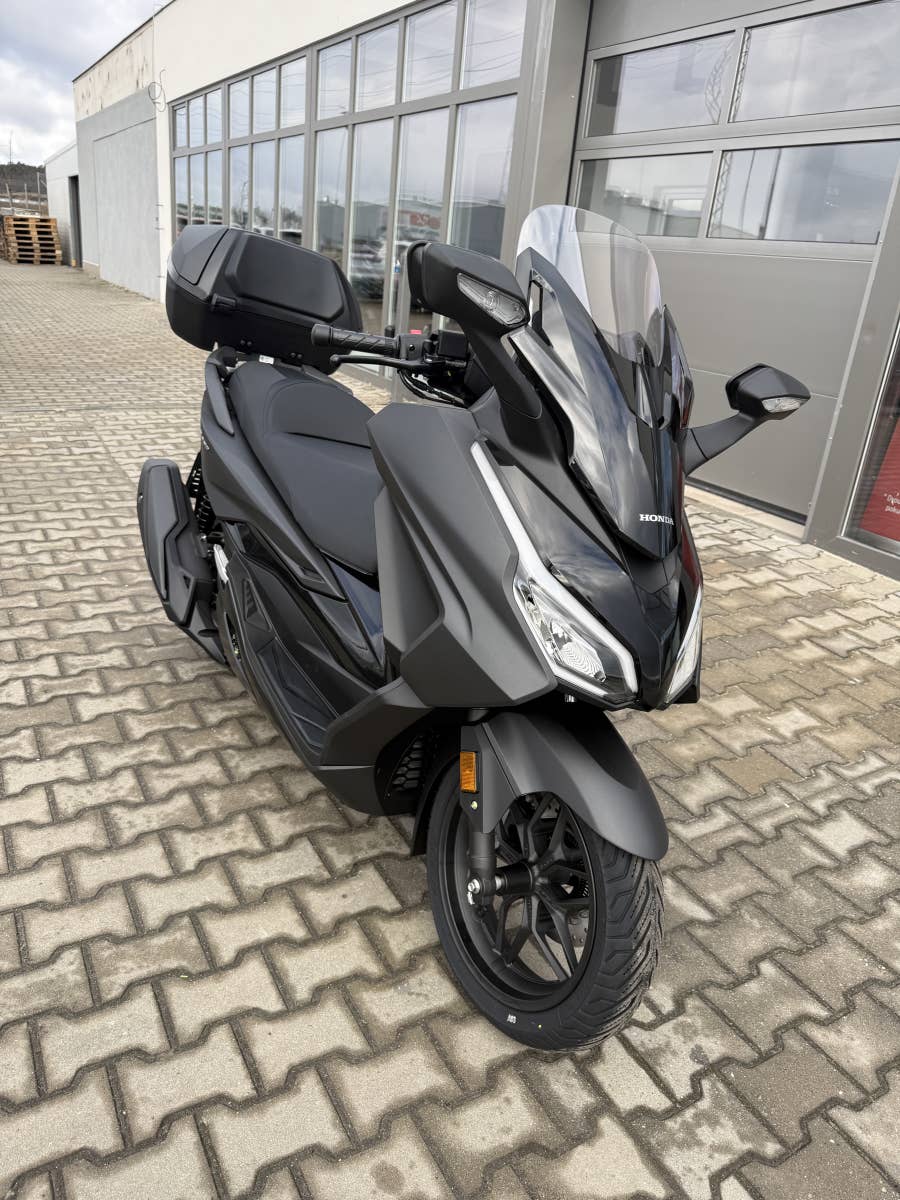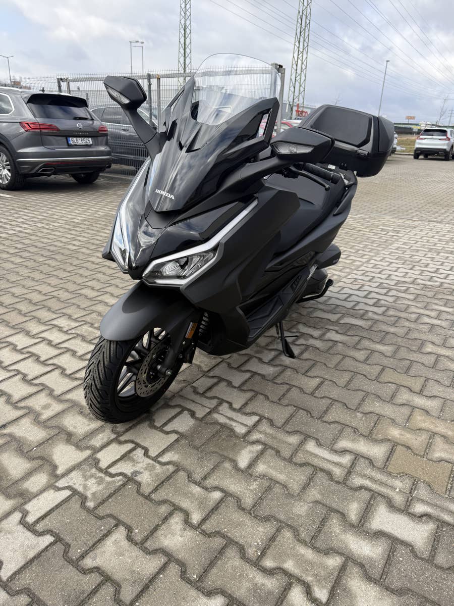 The Forza 350 je skutečný sportovní skútr GT, který nabízí silný výkon motoru, systém HSTC pro jistou jízdu a vynikající spotřebu paliva, to vše v elegantním designu s objemným úložným prostorem pod sedlem. Zůstaňte ve spojení po celý den díky 5palcovému TFT displeji a integraci Honda RoadSync, která poskytuje bezproblémový přístup k telefonním hovorům, hudbě a navigaci během jízdy.