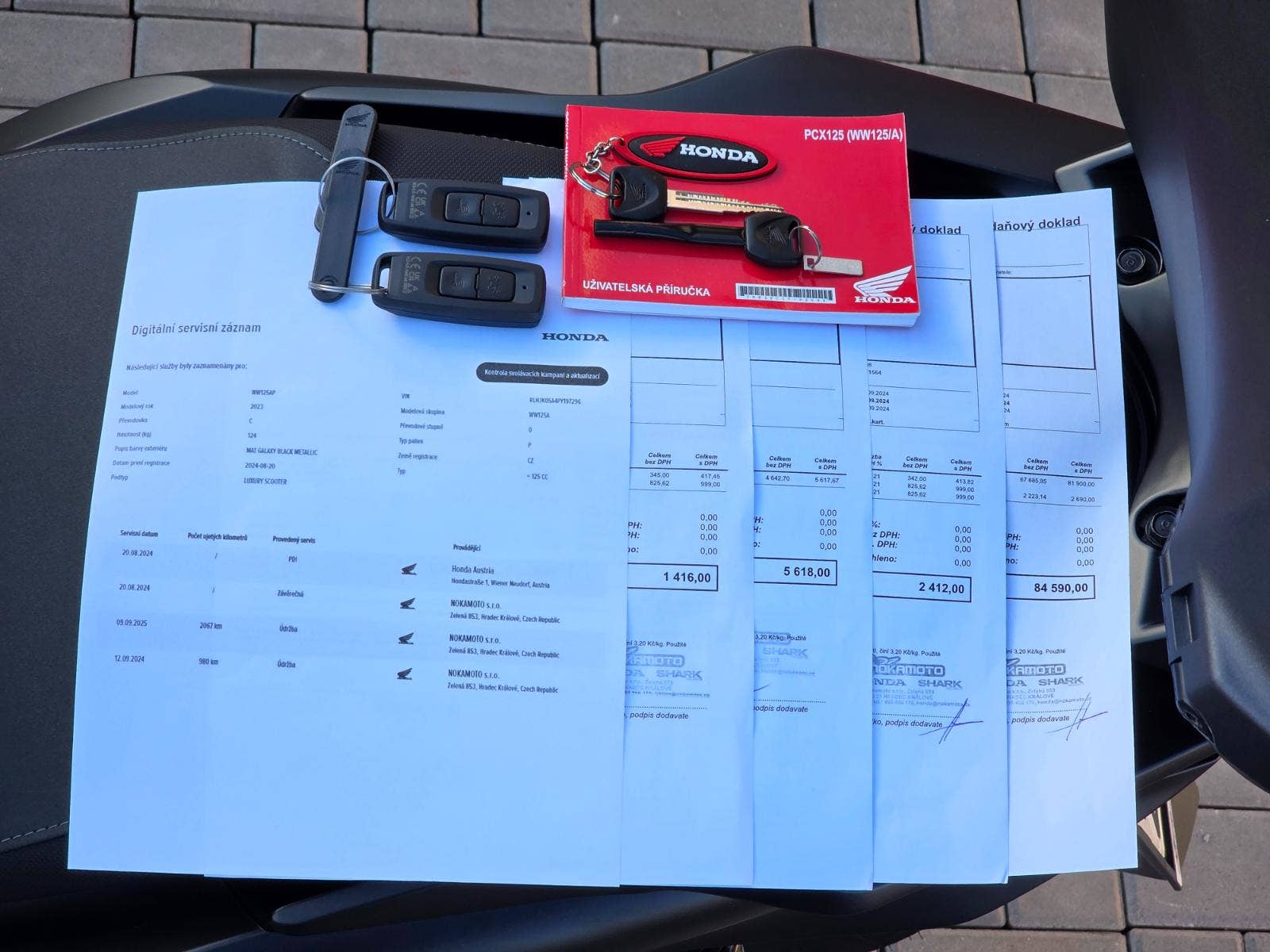 Prodám Honda PCX 125 v matně šedé barvě, rok výroby 2024, najeto pouze 2.070 km, výkon 9,2 kW, objem motoru 125cm3, STK platná do 8/2030. Koupeno jako nové u autorizovaného prodejce Honda Nokamoto Hradec Králové. Jeden majitel, poctivě zajížděno dle manuálu k obsluze. První servis v 1.000 km, druhý po roce v 2.067 km. Vše zapsané v servisní knížce. Bezproblémový a velice oblíbený skútr s nízkými provozními náklady, perfektní spotřebou a krásným moderním vzhledem. Celkově ve stavu nového skútru jako na salonu Honda, nehavarovaný, nelakovaný bez jediného škrábance.