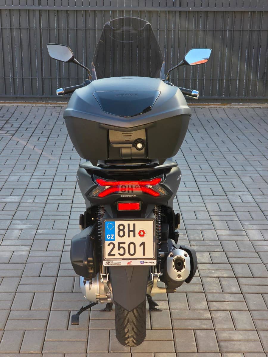 Navíc je na skútru dokoupené vysoké tmavé plexi Puig (2.700Kč) a originální kufr Honda s plotnou (6.000Kč), původní plexi a krytka místo kufru zabalené ke skútru. Původní cena skútru vč. příslušenství 90.000Kč. Všechno příslušenství je v ceně skútru.
