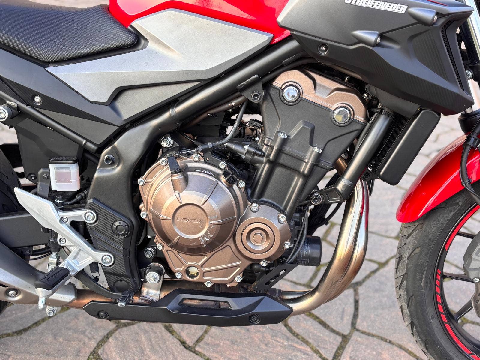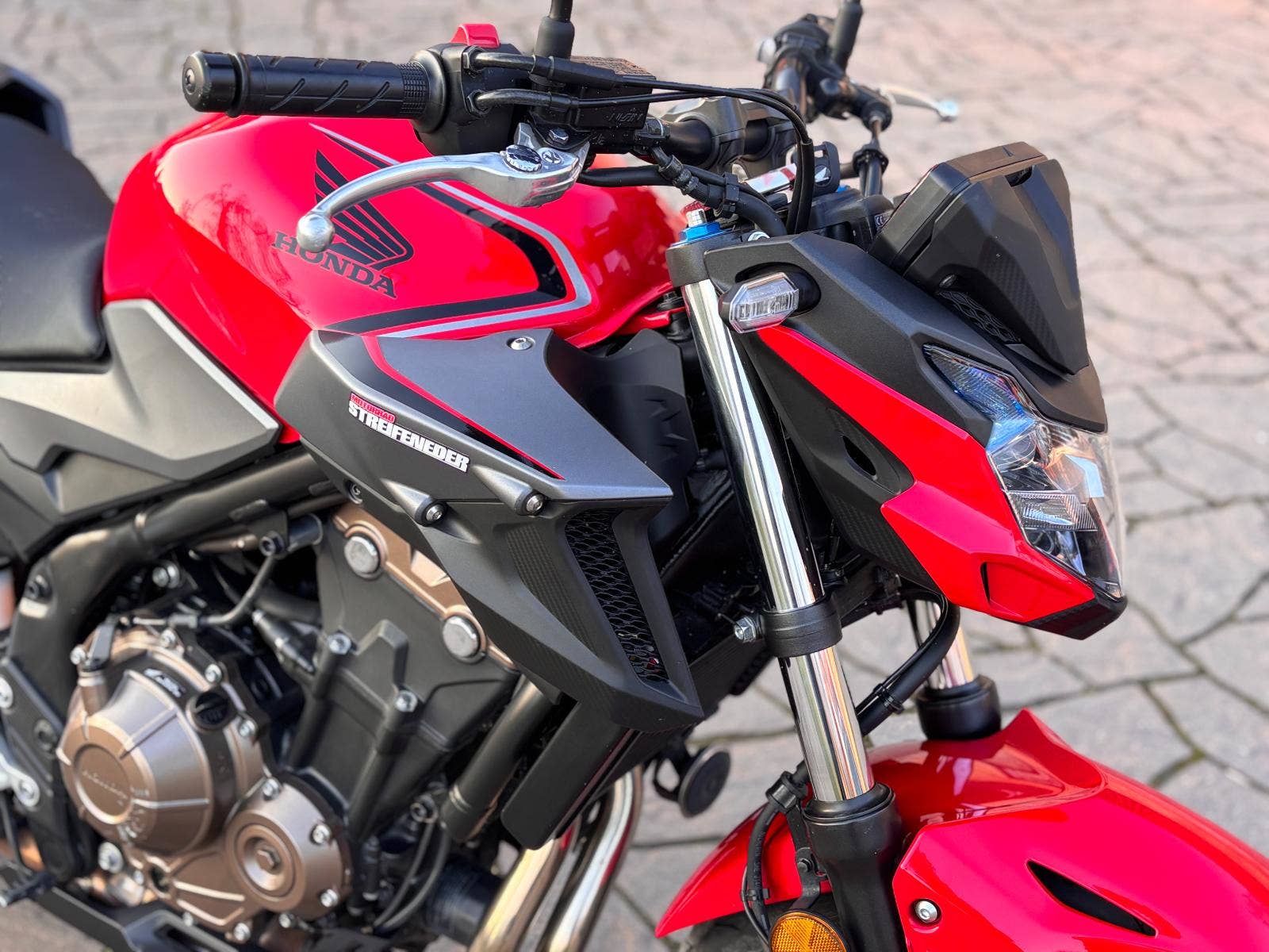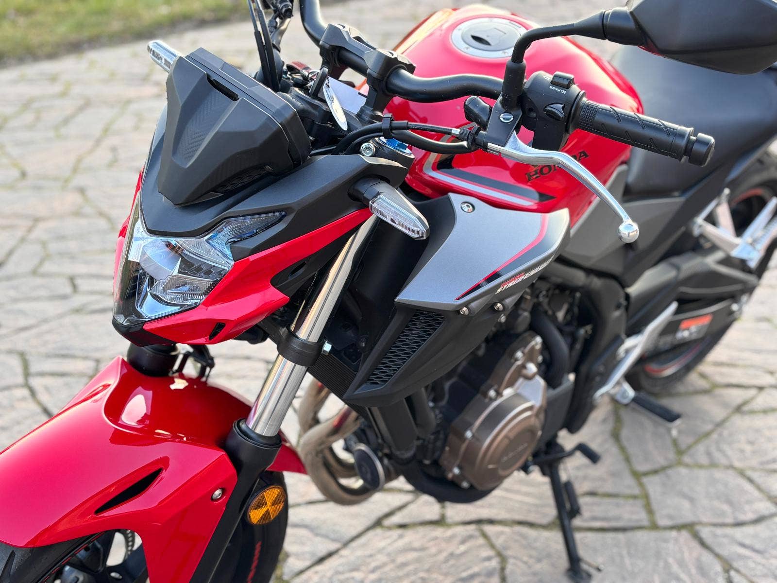 Moc pěkné CB 500 F dovezené z Německa po dívce, navíc kratší držák SPZ. Ideální motorka pro začátečníky i na každodenní ježdění, výkon 35 kW.