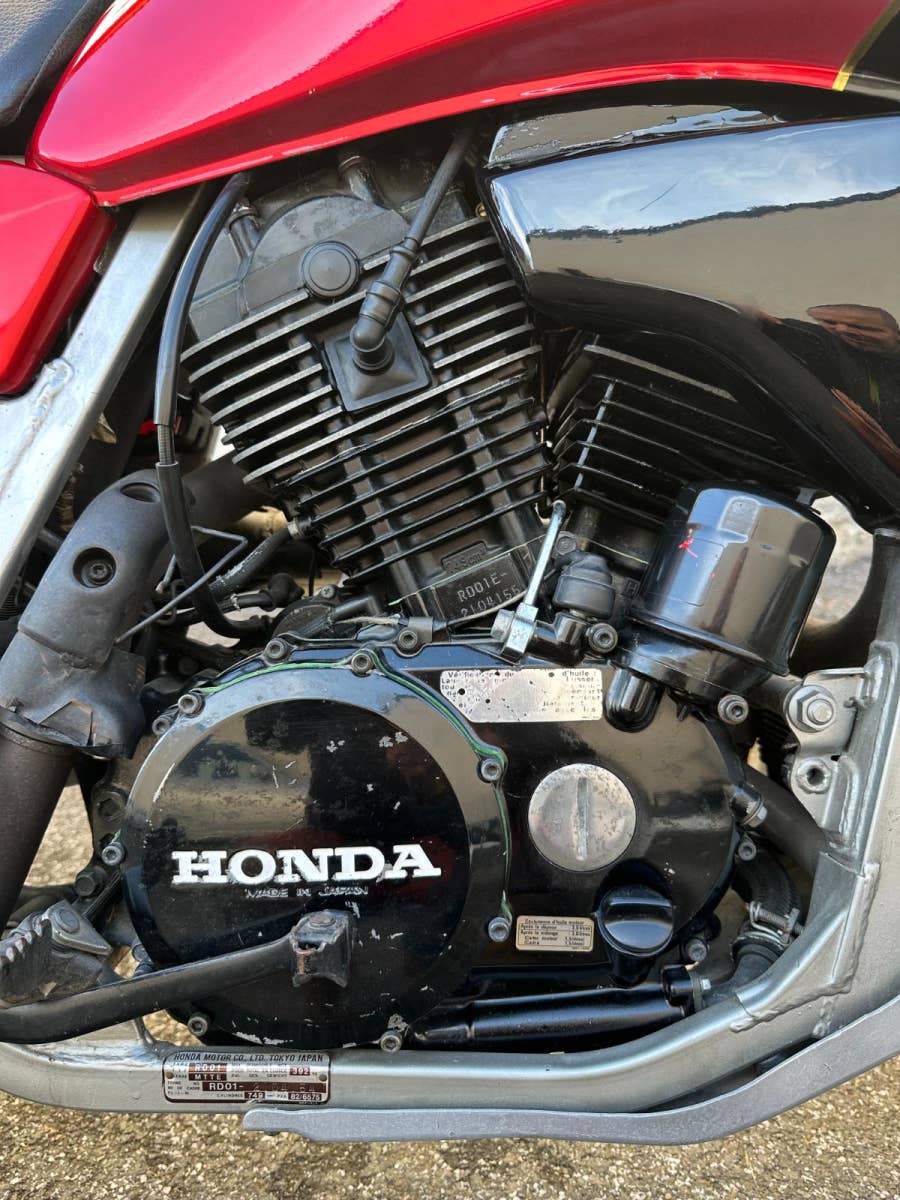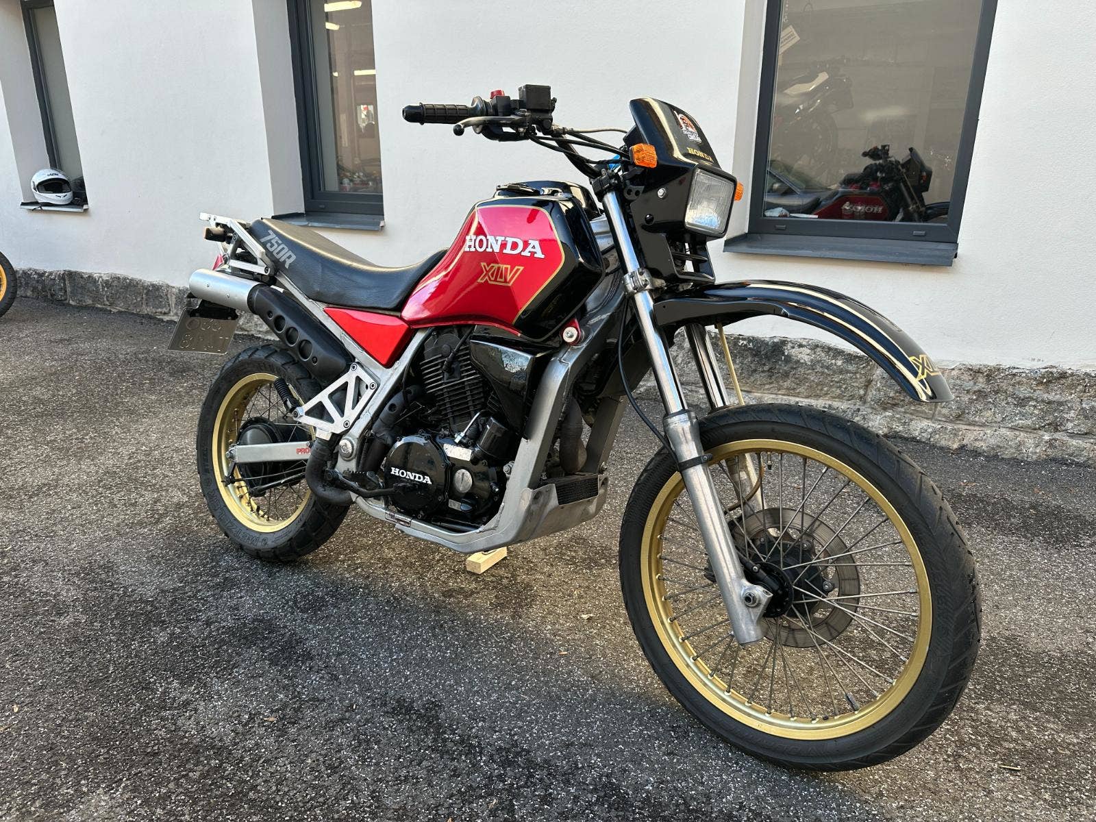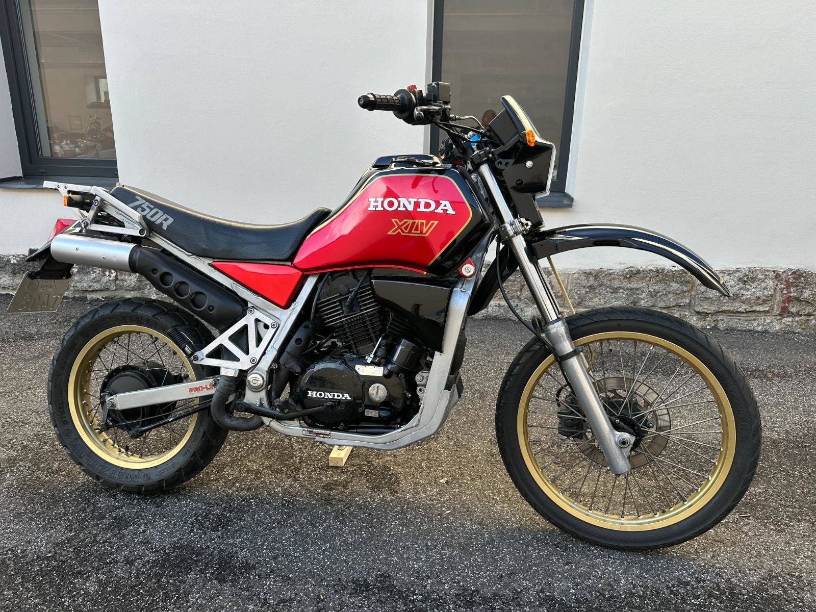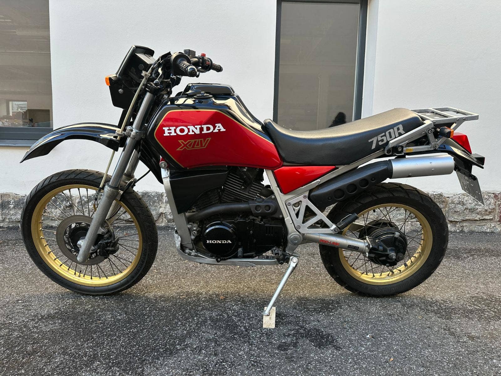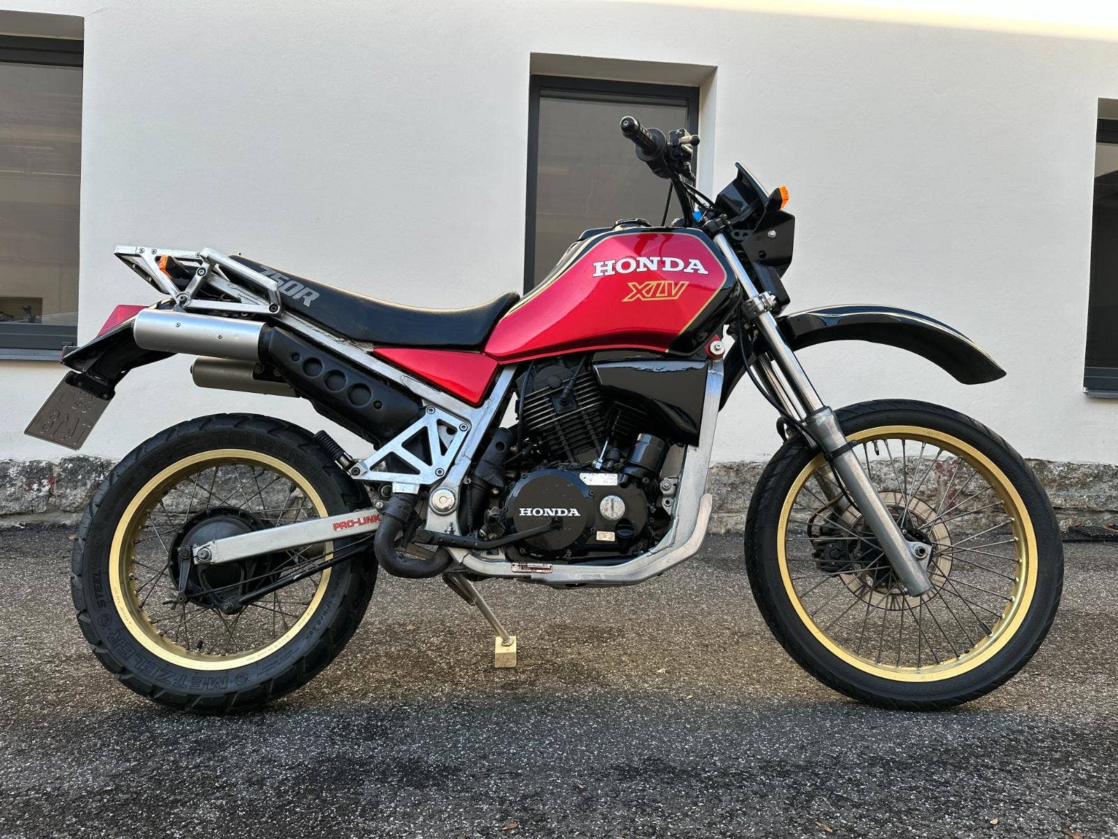Honda XLV 750R RD01, r.v. 1985, CZ doklady, najeto 52tis km. Původ Francie (1. majitel), následně ve sbírce v DE (2. majitel), nyní sběratel v ČR (3. majitel). Krásný stav, nyní po zprovoznění po dlouhodobém stání za 12tis (aku, opravná sada karburace a čištění ultrazvukem, nový palivový kohout). Funguje a běží nádherně. K motocyklu faktura za velký servis motoru v DE (5tis Eur) a původní francozuský TP. Klasické blinkry Honda (ty co tam mají být) jsou k motocyklu.