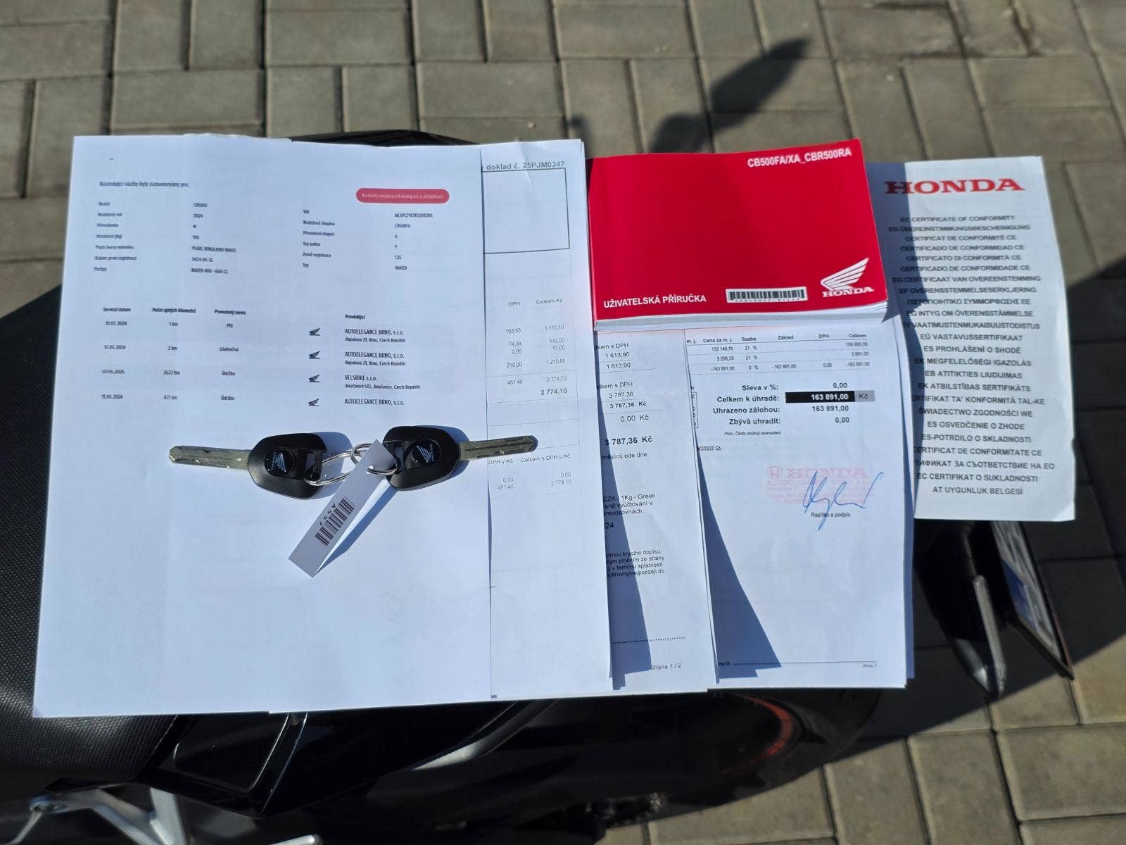K motorce kompletní dokumentace manuál k obsluze, elektronická servisní knížka, dva klíče.