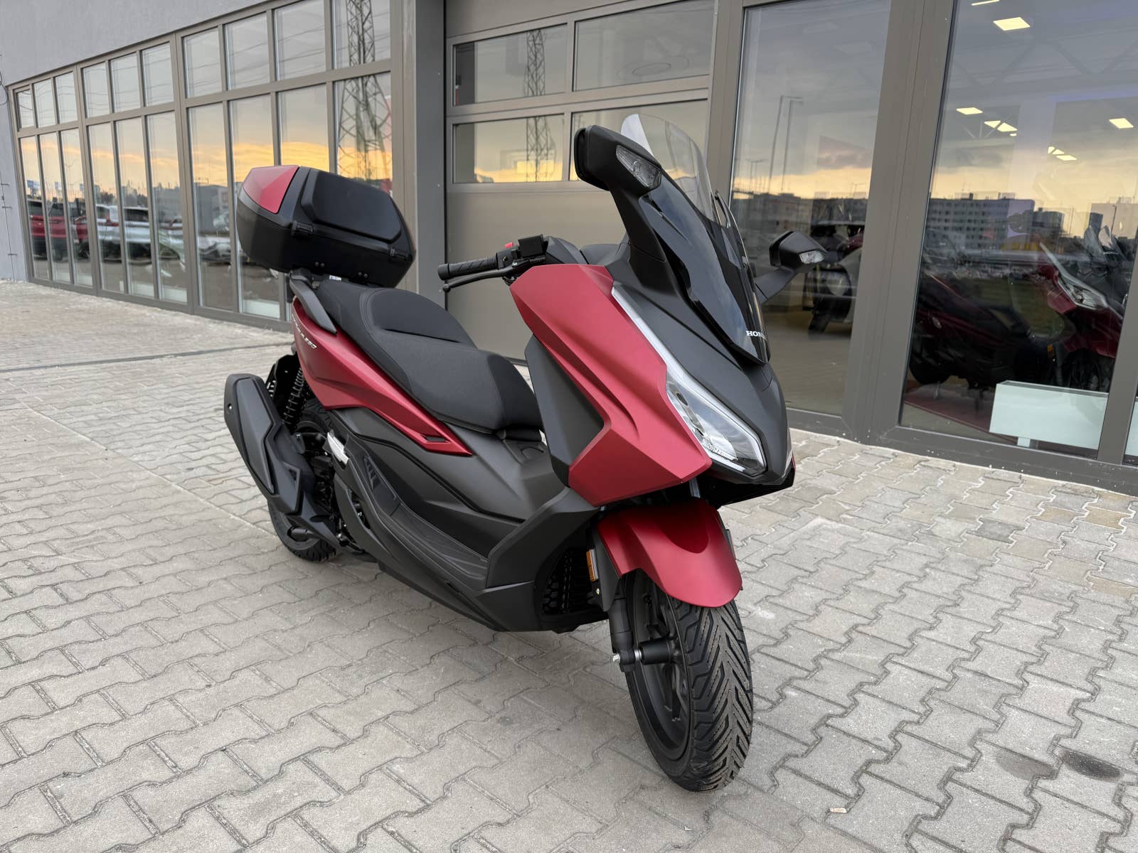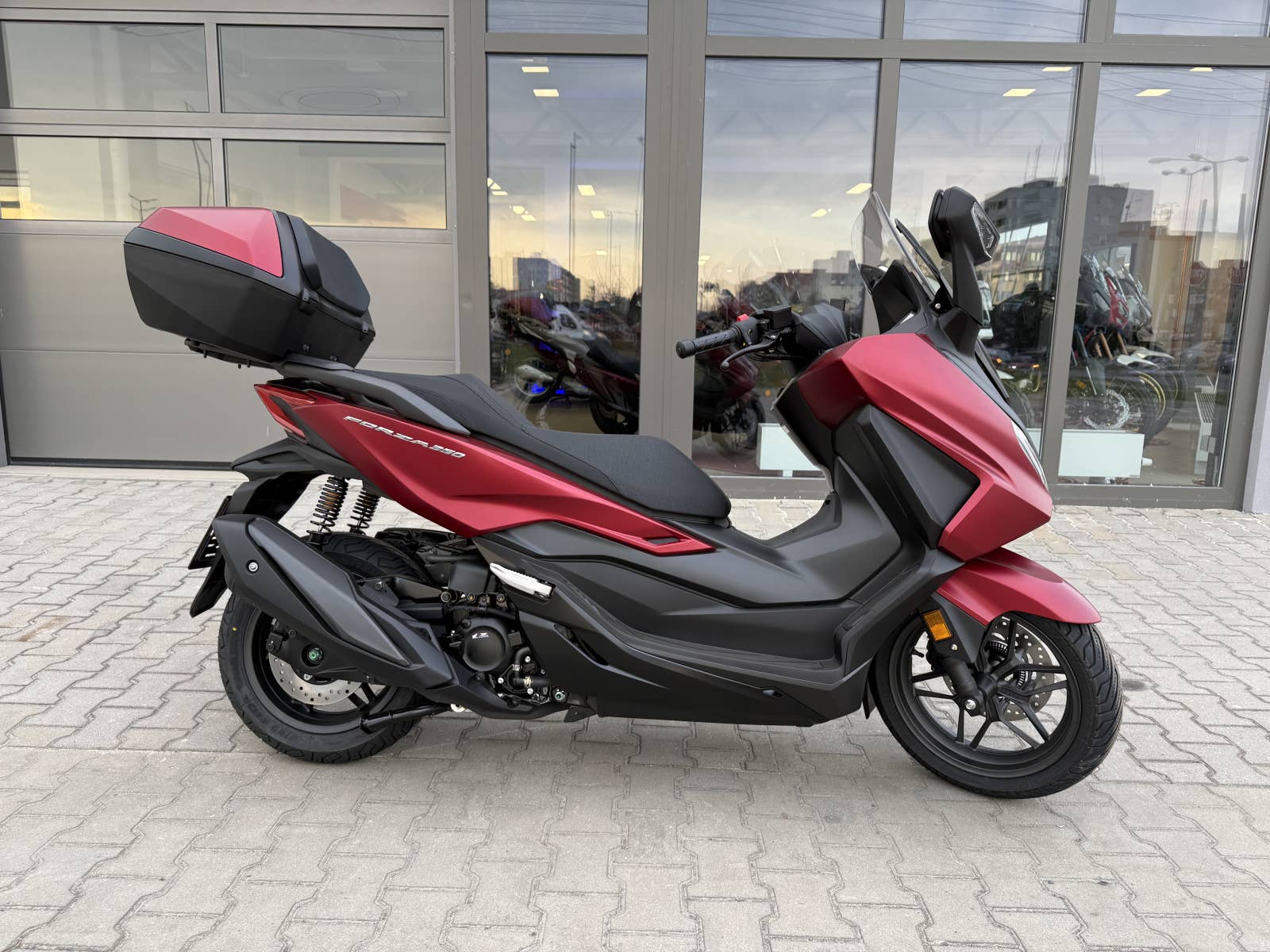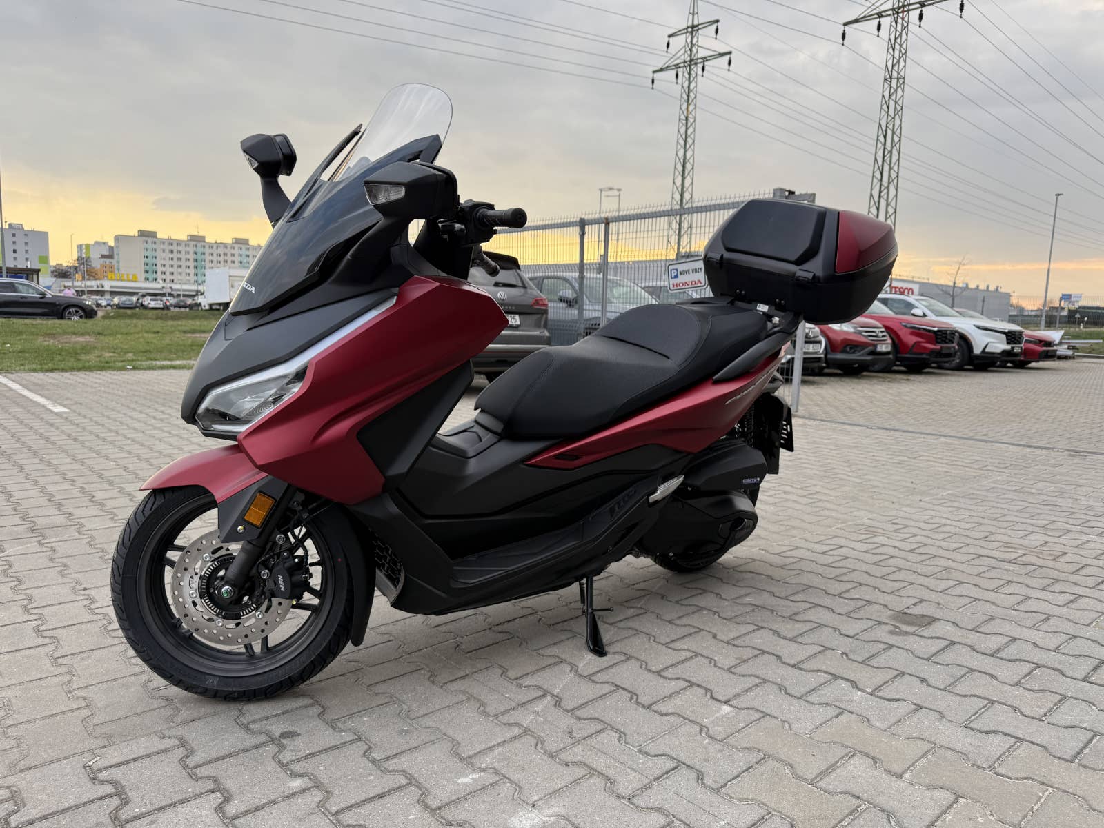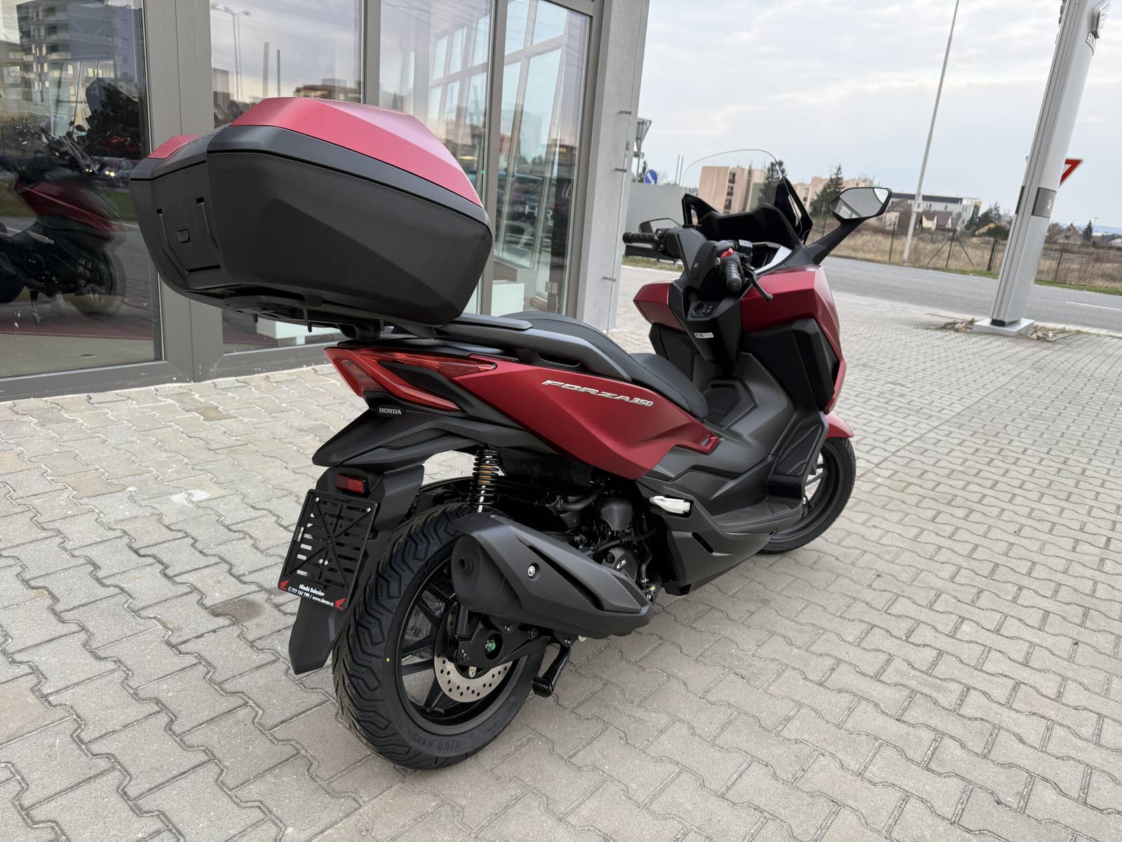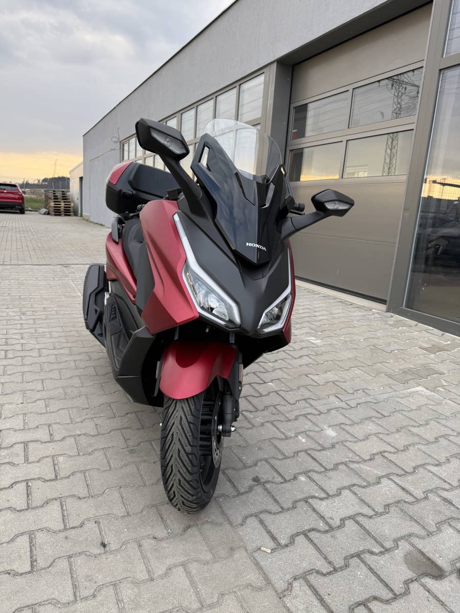 The Forza 350 je skutečný sportovní skútr GT, který nabízí silný výkon motoru, systém HSTC pro jistou jízdu a vynikající spotřebu paliva, to vše v elegantním designu s objemným úložným prostorem pod sedlem. Zůstaňte ve spojení po celý den díky 5palcovému TFT displeji a integraci Honda RoadSync, která poskytuje bezproblémový přístup k telefonním hovorům, hudbě a navigaci během jízdy.