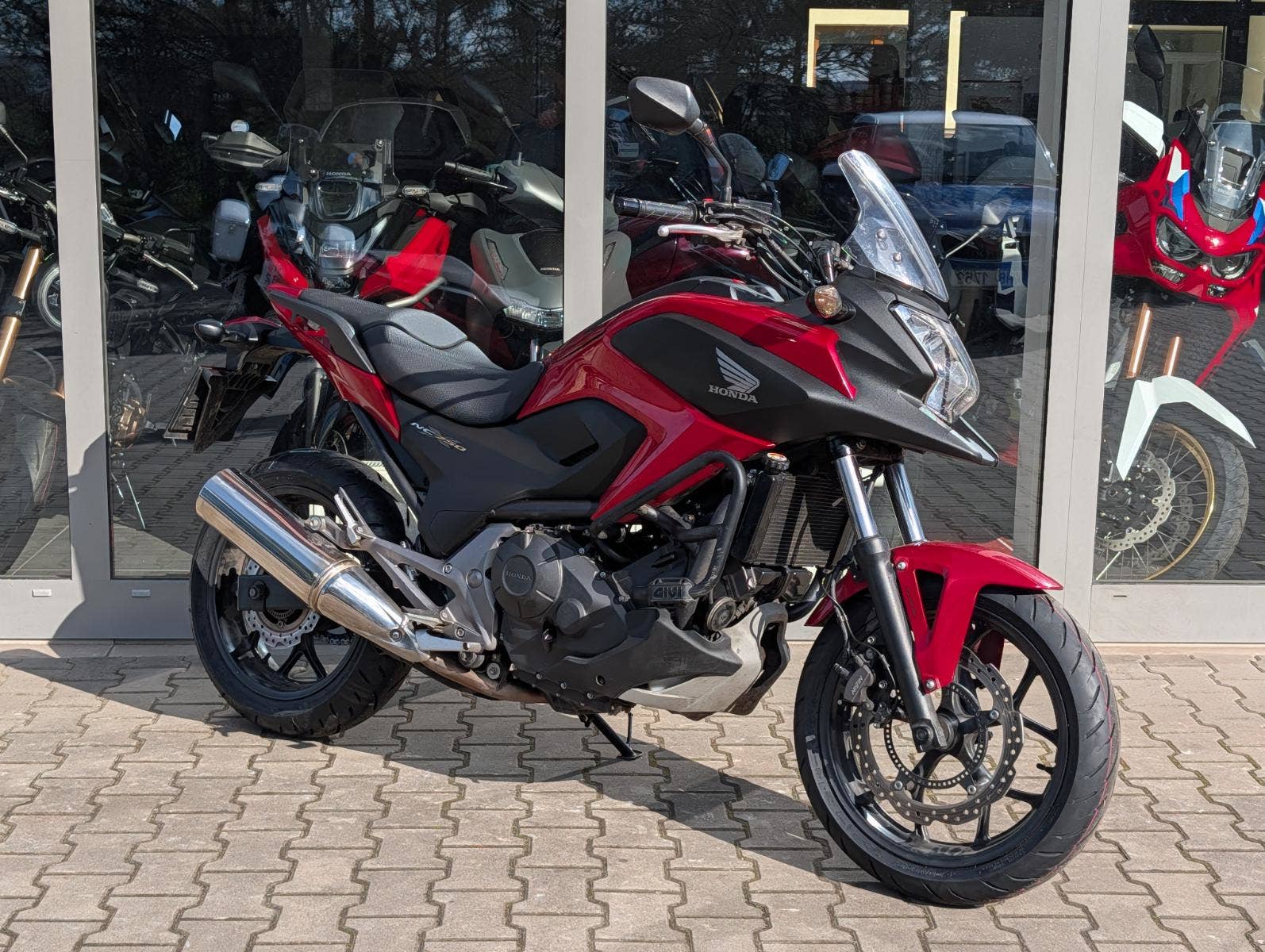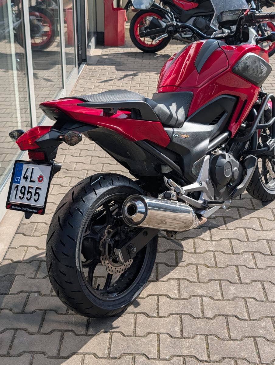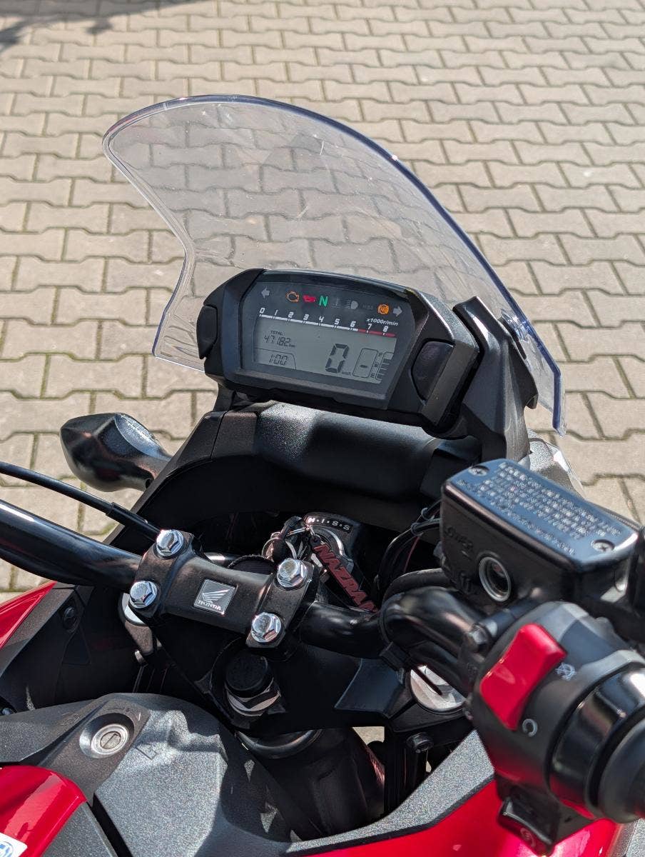 CZ původ, po prvním majiteli. Aktuálně po velkém servisu 48 tis. km (motorový olej + filtr, seřízení ventilových vůlí, nová chladící kapalina, nová brzdová kapalina, nová sada pneu Dunlop GPR300). Motocykl má padací rámy GIVI a nádrž umýstěnou vzadu, díky tomu disponuje schránkou na schovaní např. přilby.