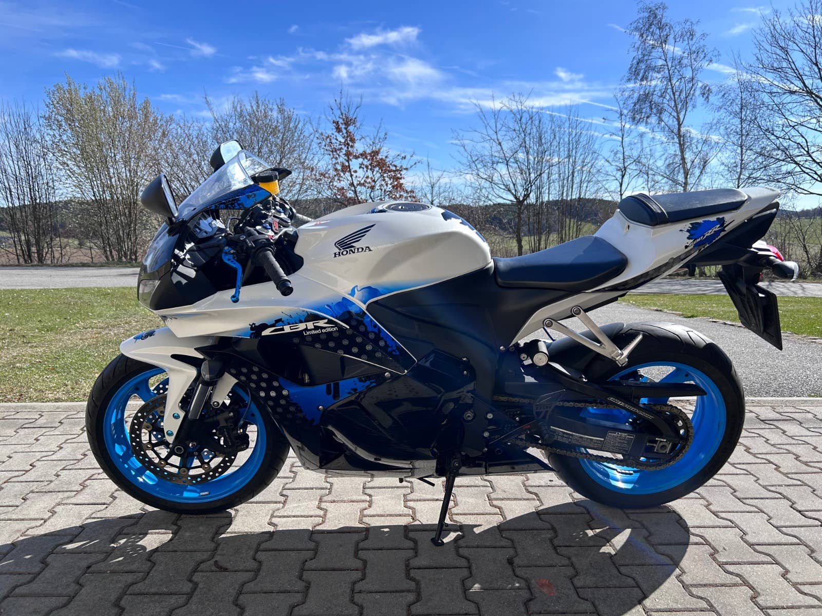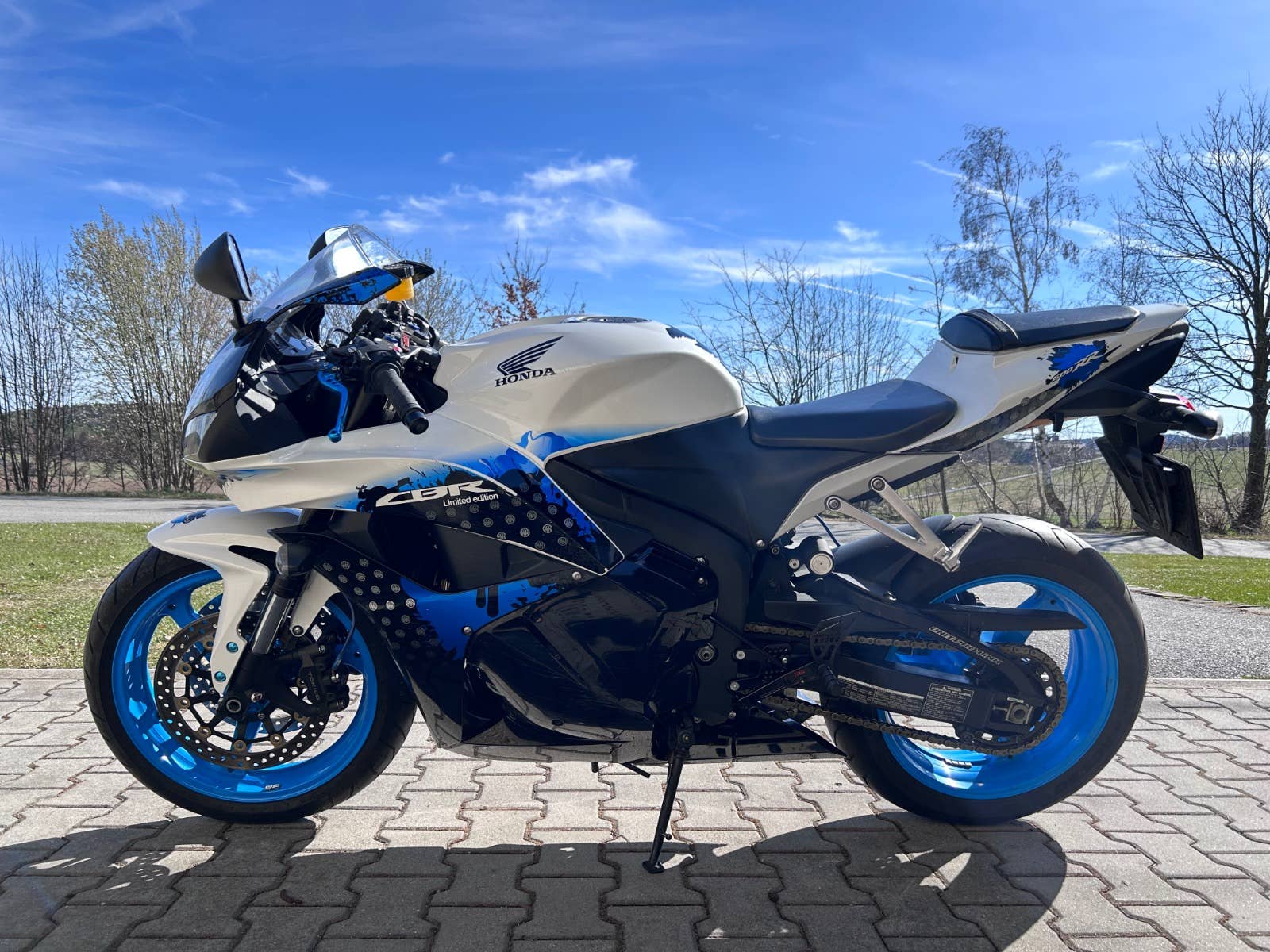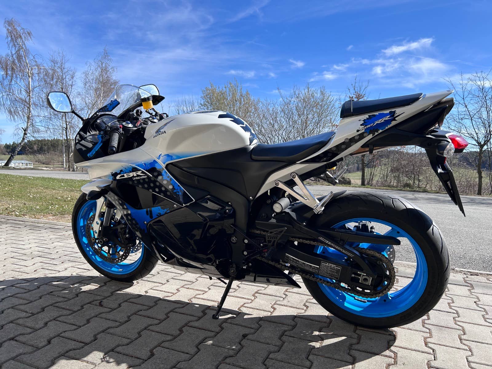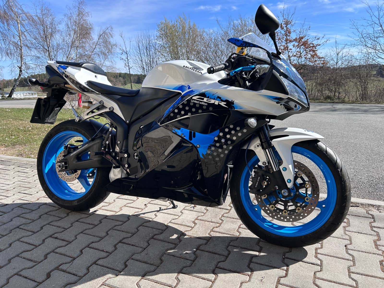 • Ikonický supersport Honda CBR 600 RR v exkluzivní a vyhledávané limitované edici Phoenix (bílá perleťová metalíza s modrou grafikou. Motorka byla koupena v ČR a celou dobu ji vlastnil pouze jeden majitel.