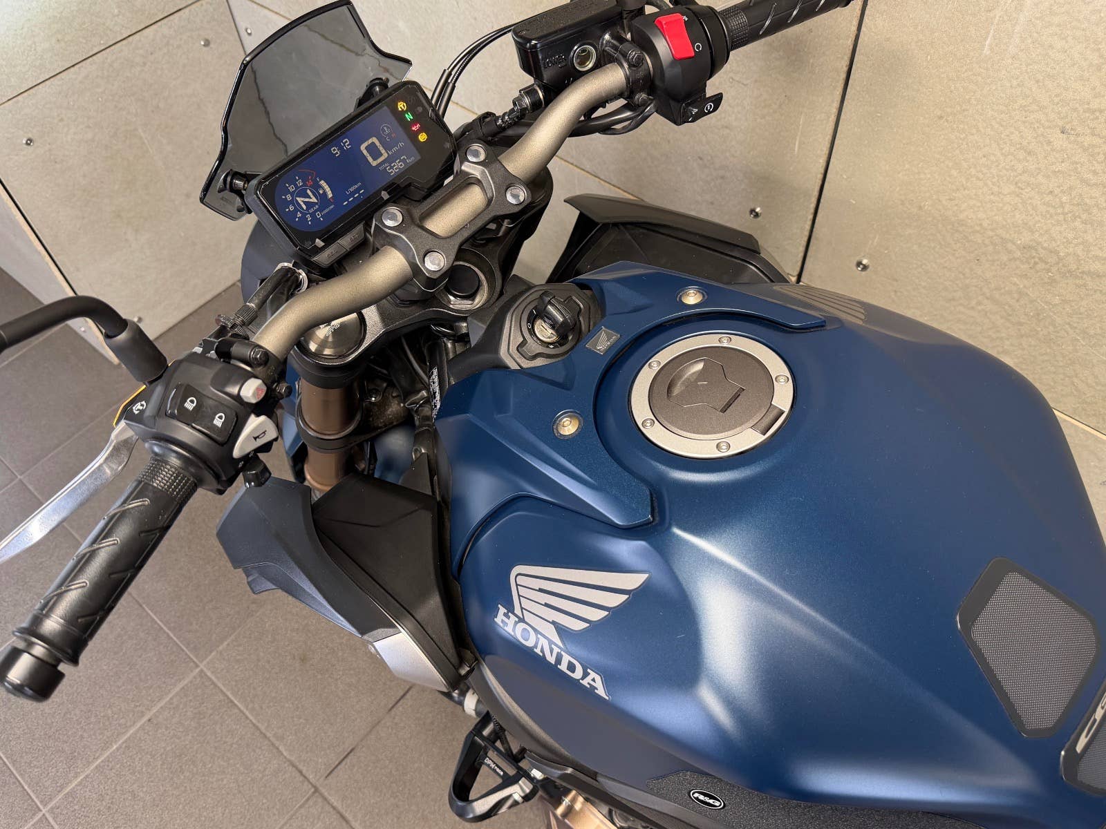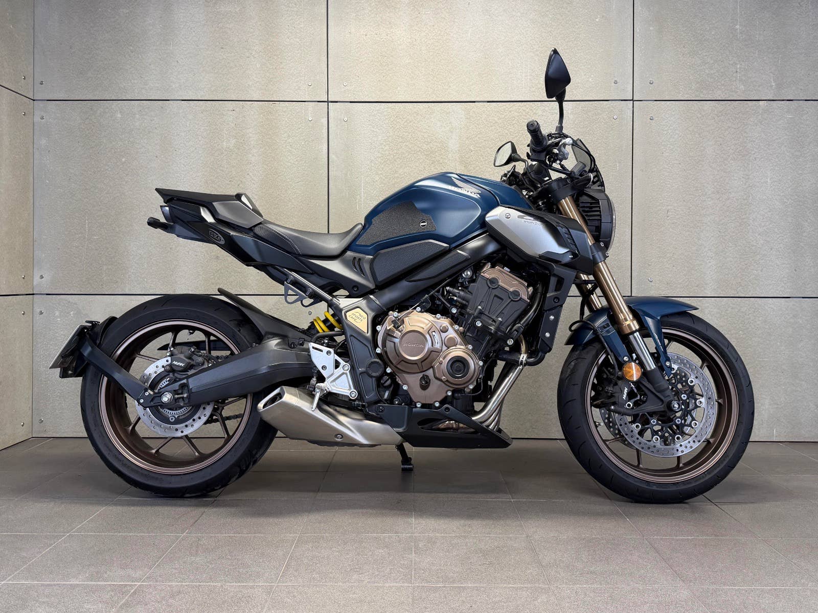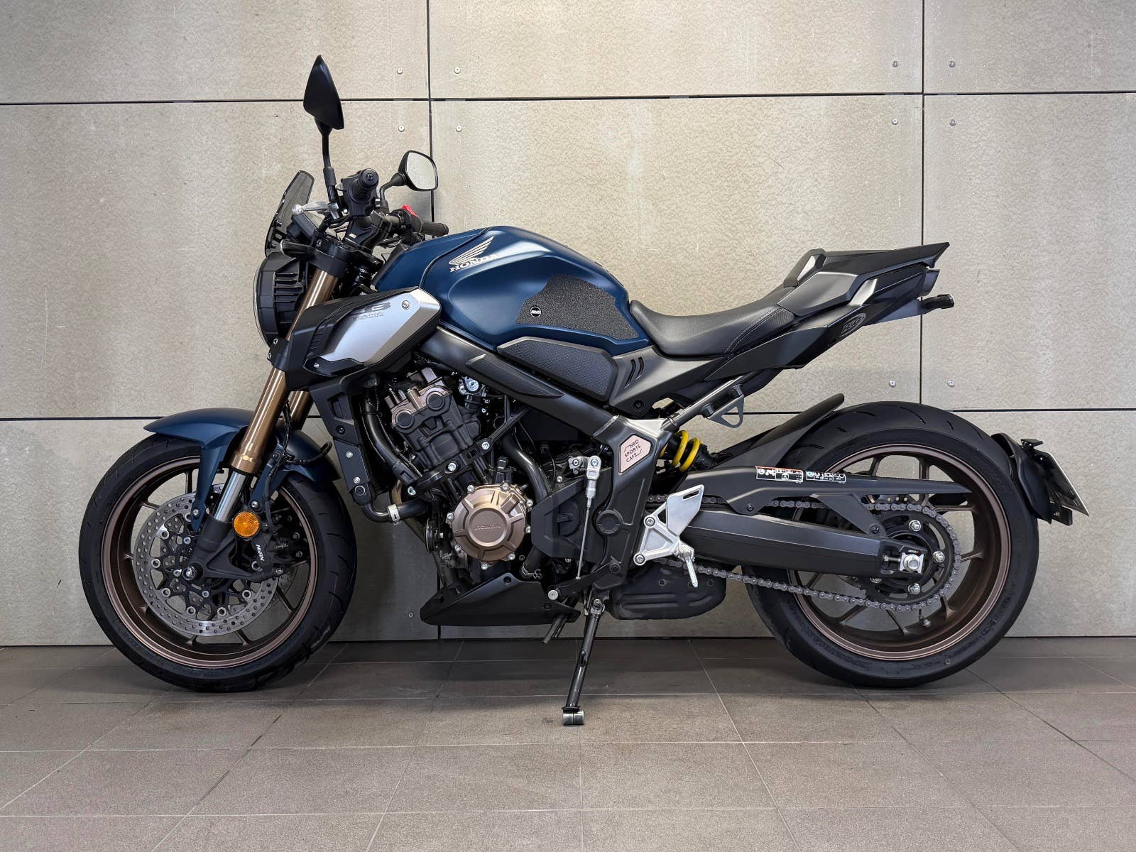 Honda CB 650 R - NEO SPORTS CAFE ABS, r.v. 2021, koupená nová u dealera v Praze, kde byla každý rok pravidelně servisovaná, velice málo ježděná starším majitelem, který na motocykl nakoupil mnoho doplňků. Motocykl má příplatkový Quickshifter, boční deflektory, padací protektory na motoru a na osách, přední větrný štítek, zadní krovku, zadní nosič SPZ na zadním kole (všechny originální díly a stupačky přibaleny k motocyklu). Bez pádů, vždy garážován a používán pouze v cestovním režimu. Zeptejte se nás také na výhodné splátky, nově i s nulovou akontací! Schválení trvá 15 minut, a schválení můžeme vyřidit i po telefonu! K danému motocyklu dostanete voucher na 5000 Kč na další stoje z nabídky motopalace. cz a další slevový voucher do eshopu ACI (vybavení, oblečení, moto-kosmetika)! Rezervujte si svůj motocykl včas! Před návštěvou nás prosím kontaktujte, abychom Vám mohli být k dispozici, snažíme se vyhovět i mimo pracovní dobu (večery, víkendy i svátky). Těšíme se na Vás!