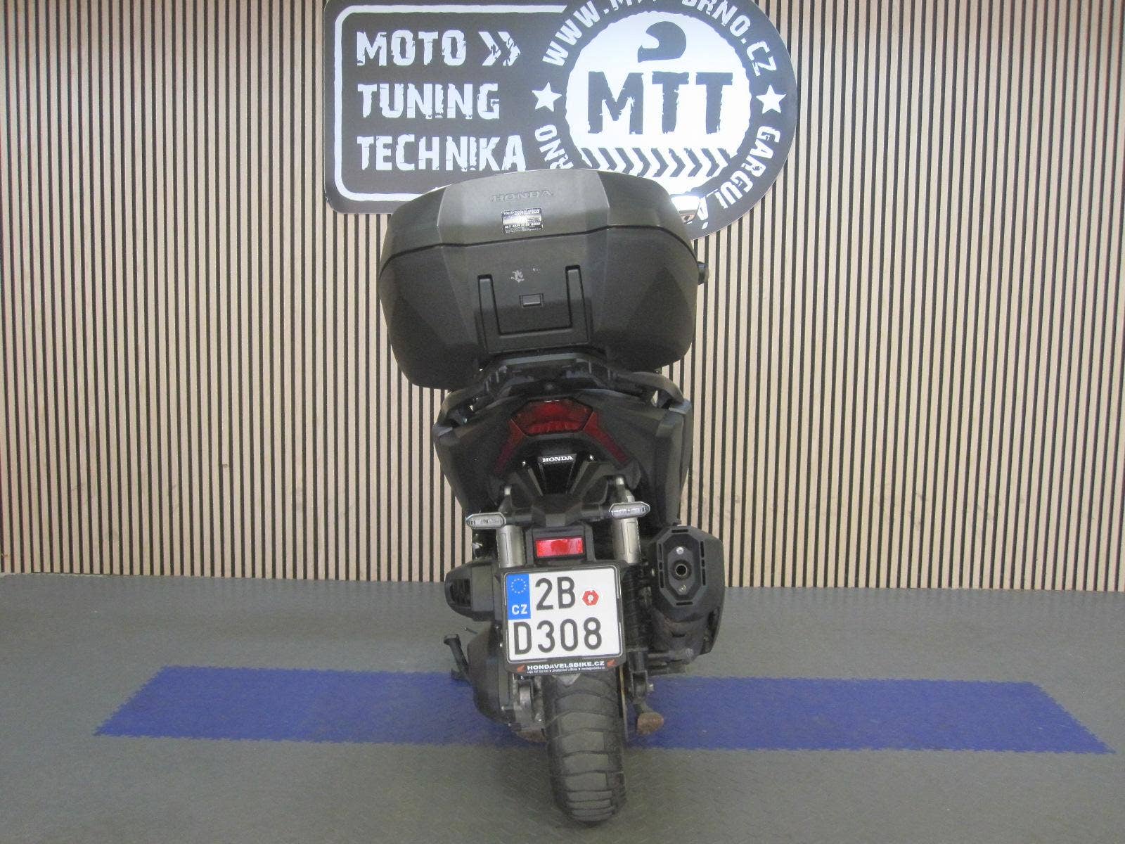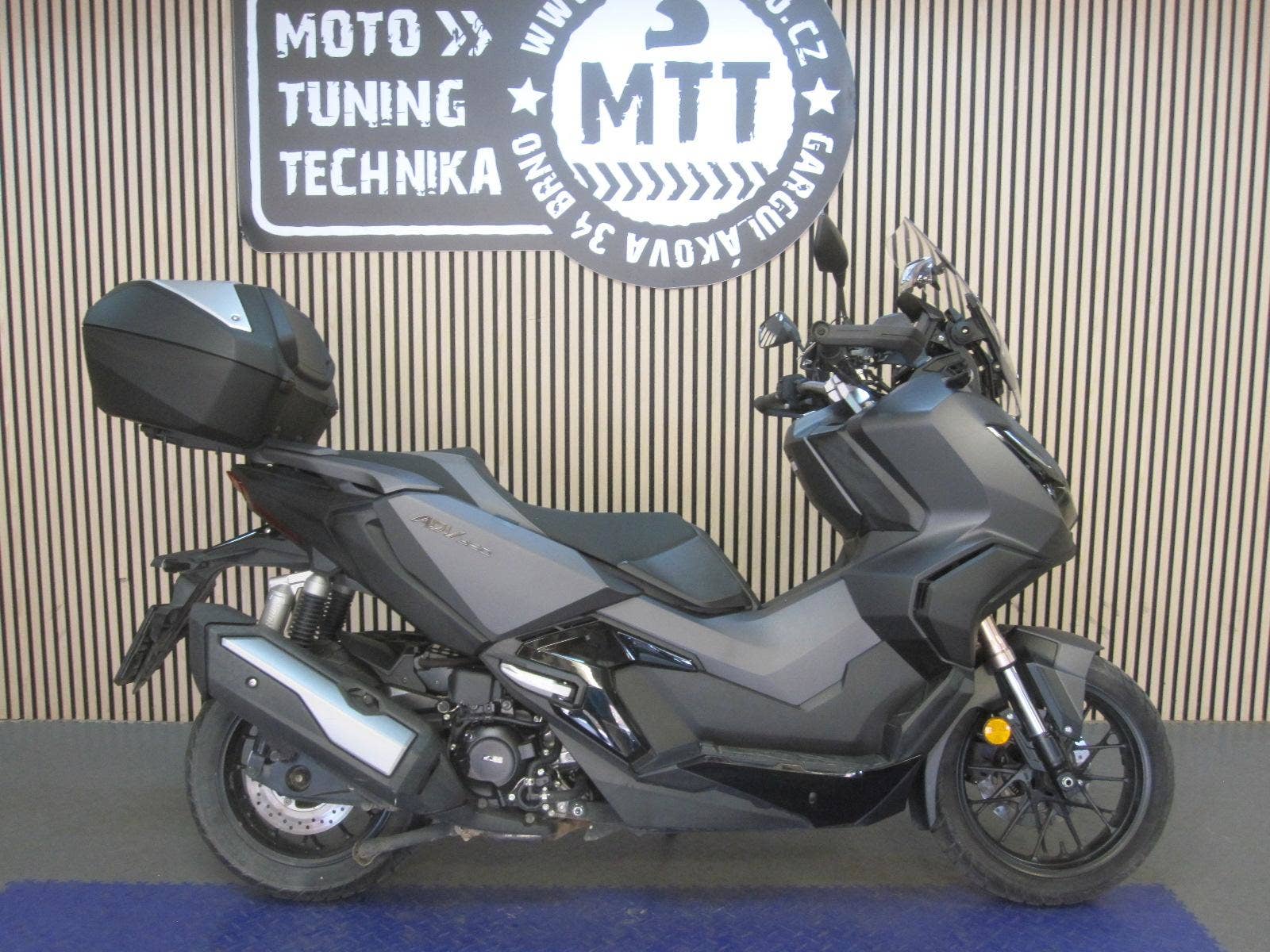 Honda ADV350 (písmeno „A“ v označení ADV350A značí standardní výbavu s ABS) je momentálně jedním z nejprodávanějších skútrů ve své třídě, a to z dobrého důvodu. Je to „SUV na dvou kolech“ – kombinuje podvozek schopný pobrat rozbité české silnice s praktičností městského skútru. Tento konkrétní skutr byl koupen v ČR v roce 2023. V TP zapsán výkon 21,5 kW, TK do roku 2029. Momentální stav tachometru 12.433 km. K motocyklu velký TP, COC list, uživatelský manuál, originální Smart Top Box (kufr, který se odemyká bezklíčově spolu se skutrem). Proč je tak populární? Skutr na rozdíl od běžných skútrů má motocyklovou přední vidlici a zadní tlumiče s expanzní nádobkou. Výsledek? Žehlí nerovnosti, kočičí hlavy i polní cesty s neuvěřitelným klidem. Motor Smart Power+ (eSP+): Jednoválec o výkonu 21,5 kW (29 koní). Je to prověřený motor z Hondy Forza 350 – tichý, úsporný (kolem 3,4 l/100 km) a velmi pružný v městském provozu. Pod sedlo se vejdou dvě integrální helmy, což je v této kategorii unikátní. Bezklíčové ovládání (Smart Key), nastavitelný štít (4 polohy), trakční kontrola (HSTC) a LCD přístrojovka s konektivitou. Ročník 2023 už má plně odladěný systém Honda Smartphone Voice Control, který propojí telefon s displejem (ovládání hudby, hovorů a navigace přes tlačítka na řídítkách). Kola mají 15 palců vpředu a 14 vzadu s pneumatikami s hrubším vzorkem, které zvládnou i lehký šotolinový přejezd.