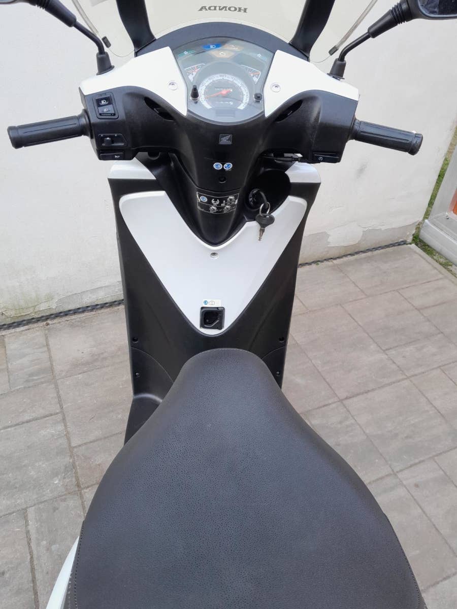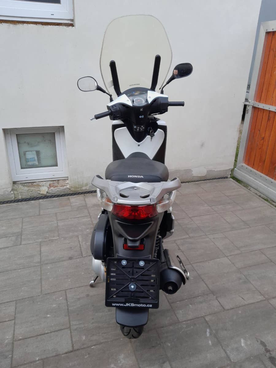 Vodou chlazený 4-takt se vstřikováním paliva, velmi nízká spotřeba kolem 2l/100 km, max. rychlost přes 100km/h. Velká 16" kola- snadná ovladatelnost a stabilita. Uvedená cena je bez doplňkového, originál Honda kufru, možno přikoupit. Skútr ve velmi dobrém stavu, nebyl havarovaný, původní lak bez poškození. Nová přední pneu, zadní ještě cca 70% vzorku.