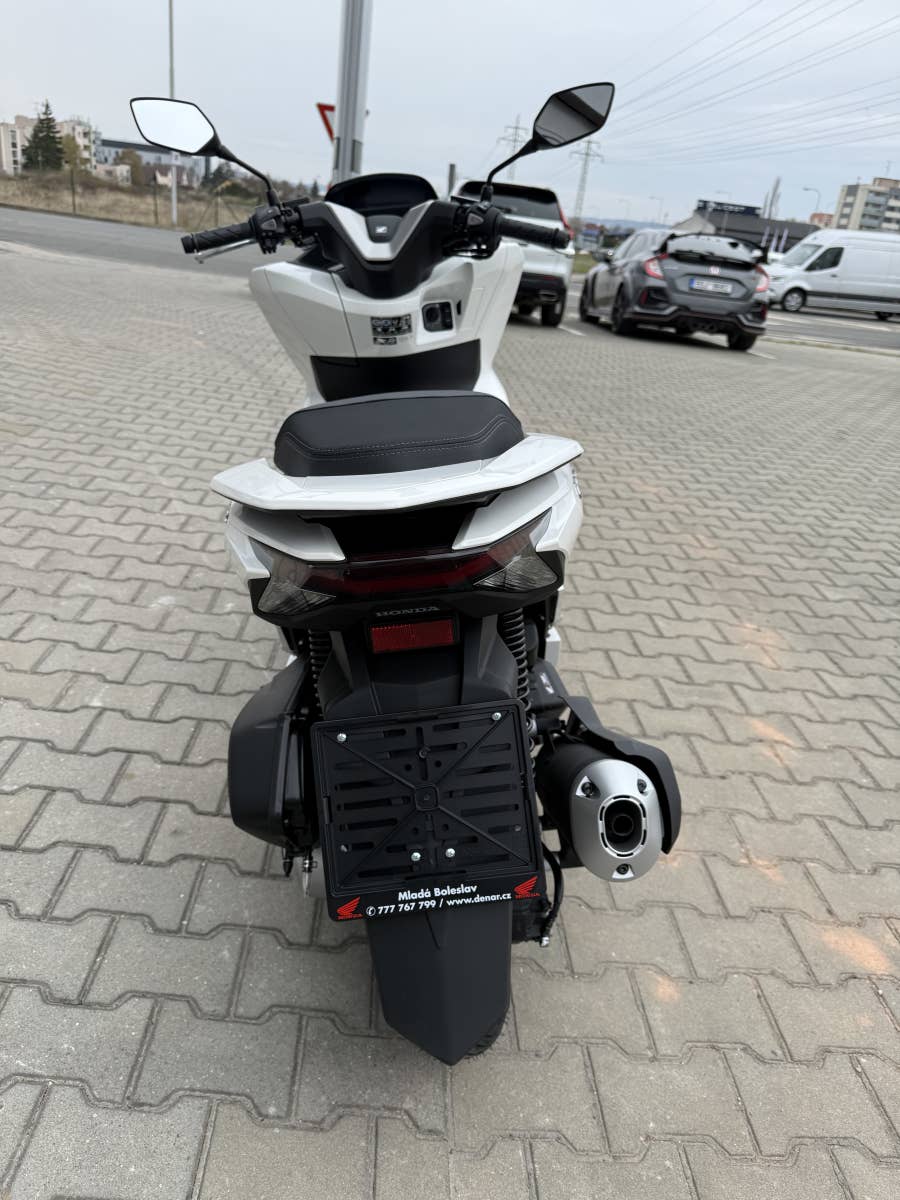 oto je PCX125. Ale lepší. Poháněn kapalinou chlazeným čtyřventilovým motorem, který zajišťuje plynulou akceleraci a zároveň úžasnou spotřebu paliva. Elegantně inovované provedení vyniká futuristickými liniemi, ochranou před větrem, a navíc modernizovanou zadní kotoučovou brzdu pro zvýšení brzdného účinku.