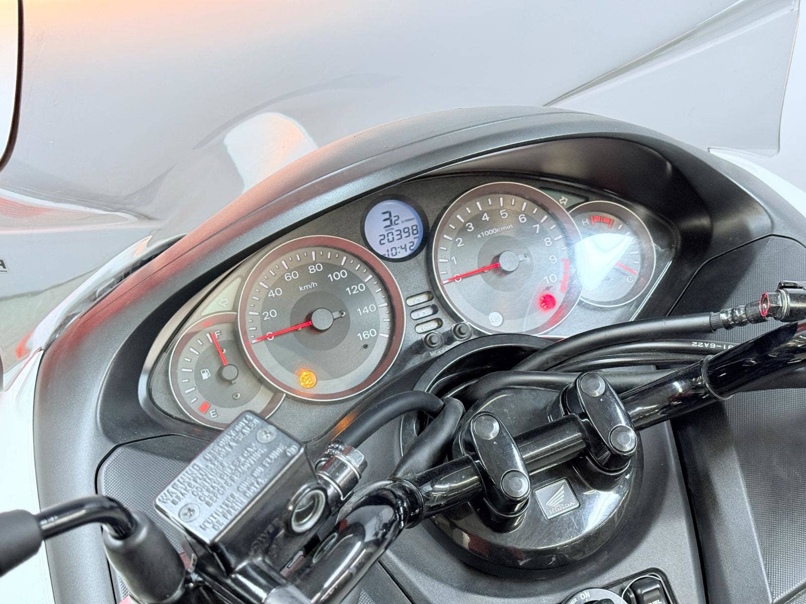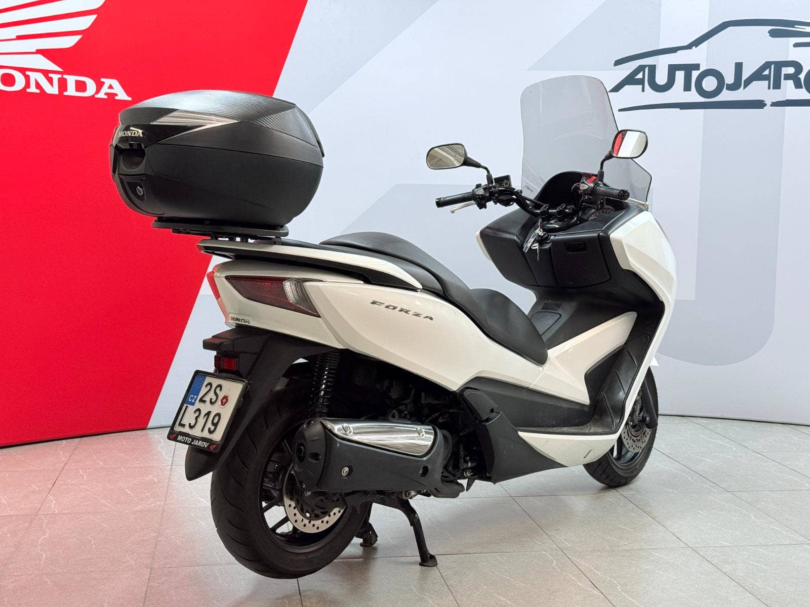 2. majitel, koupené nové v Auto Jarov, 2 klíče, servisní knížka vedená, návod k obsluze, vysoké plexi, zadní kufr Honda, poslední záznam servisu 8/2025 při 19.944 km, lehké poškození, na výměnu zadní pneu…