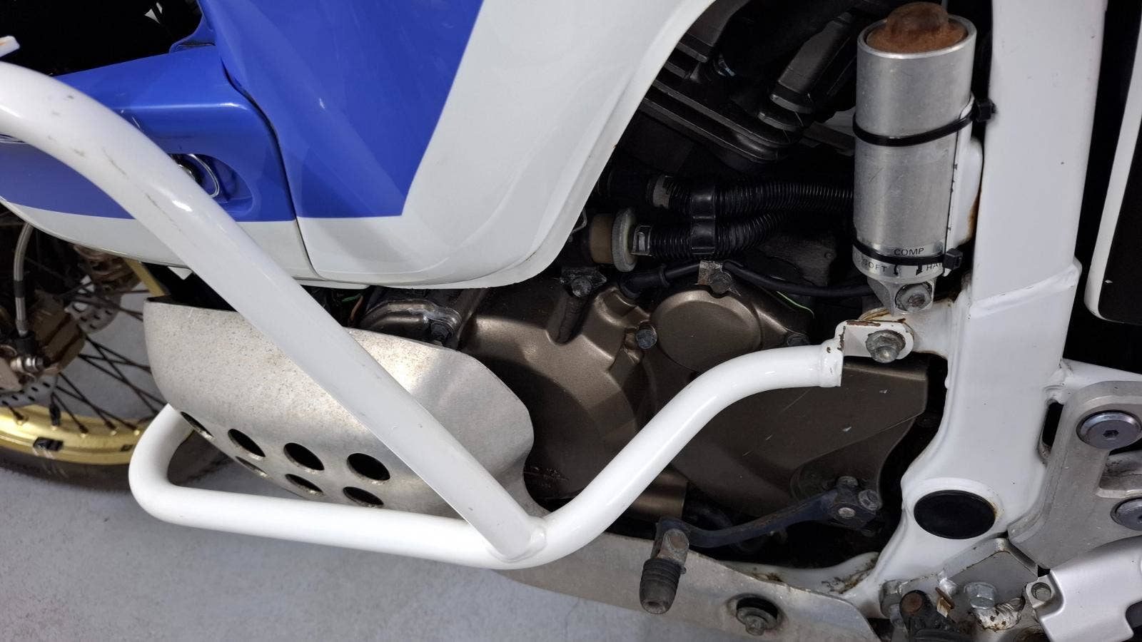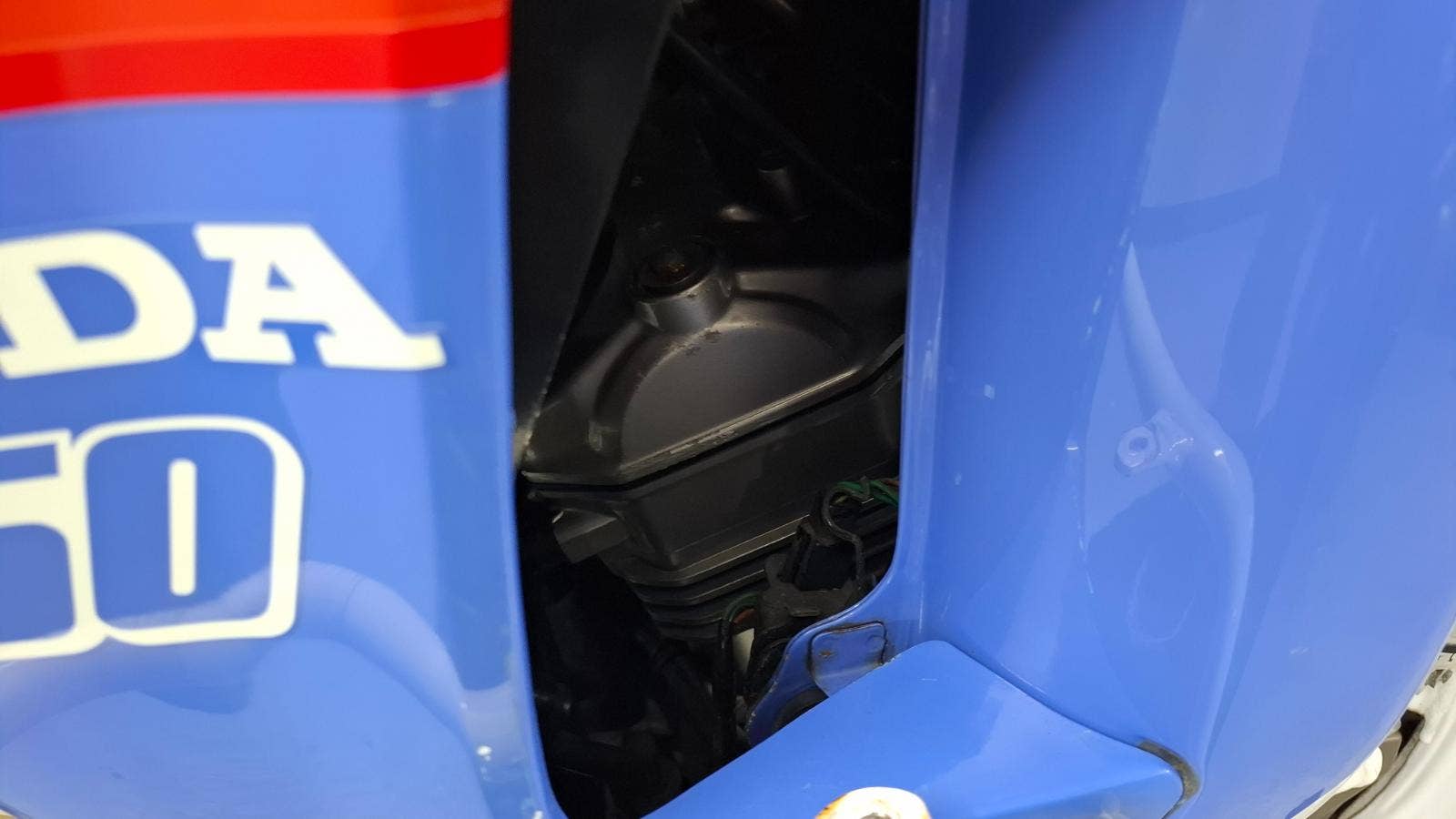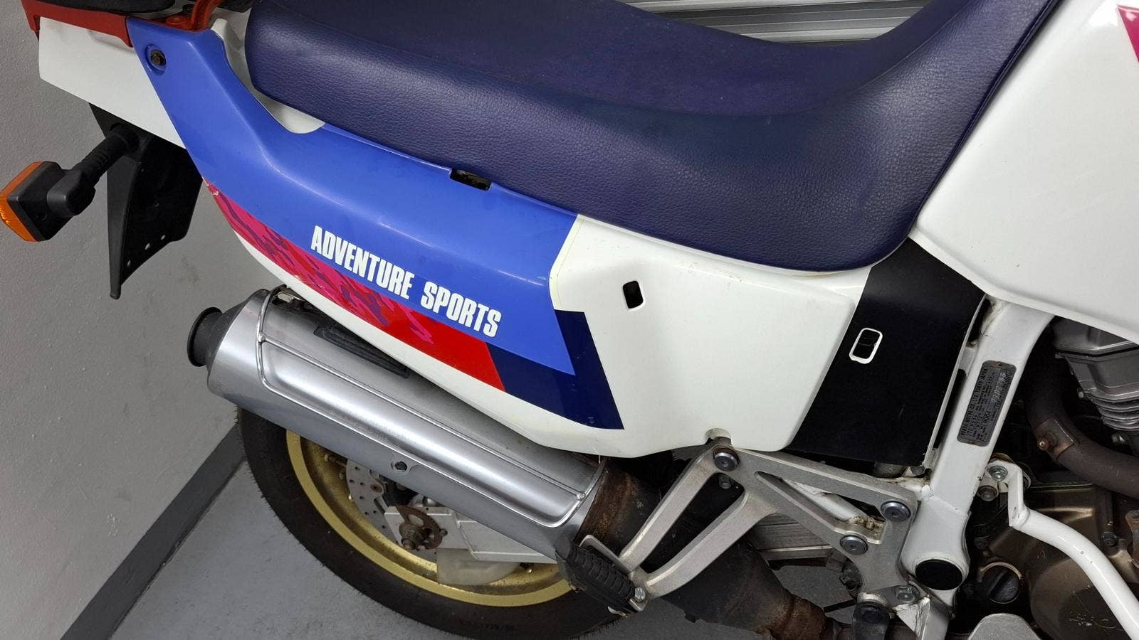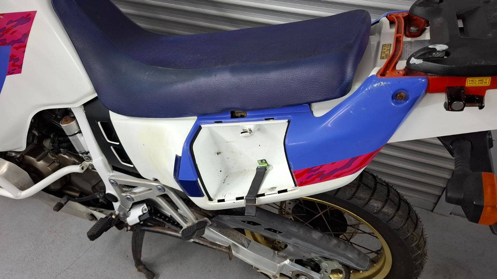 Na levé straně chybí krytka podsedlového plastu, kde je uchyceno nářadí.