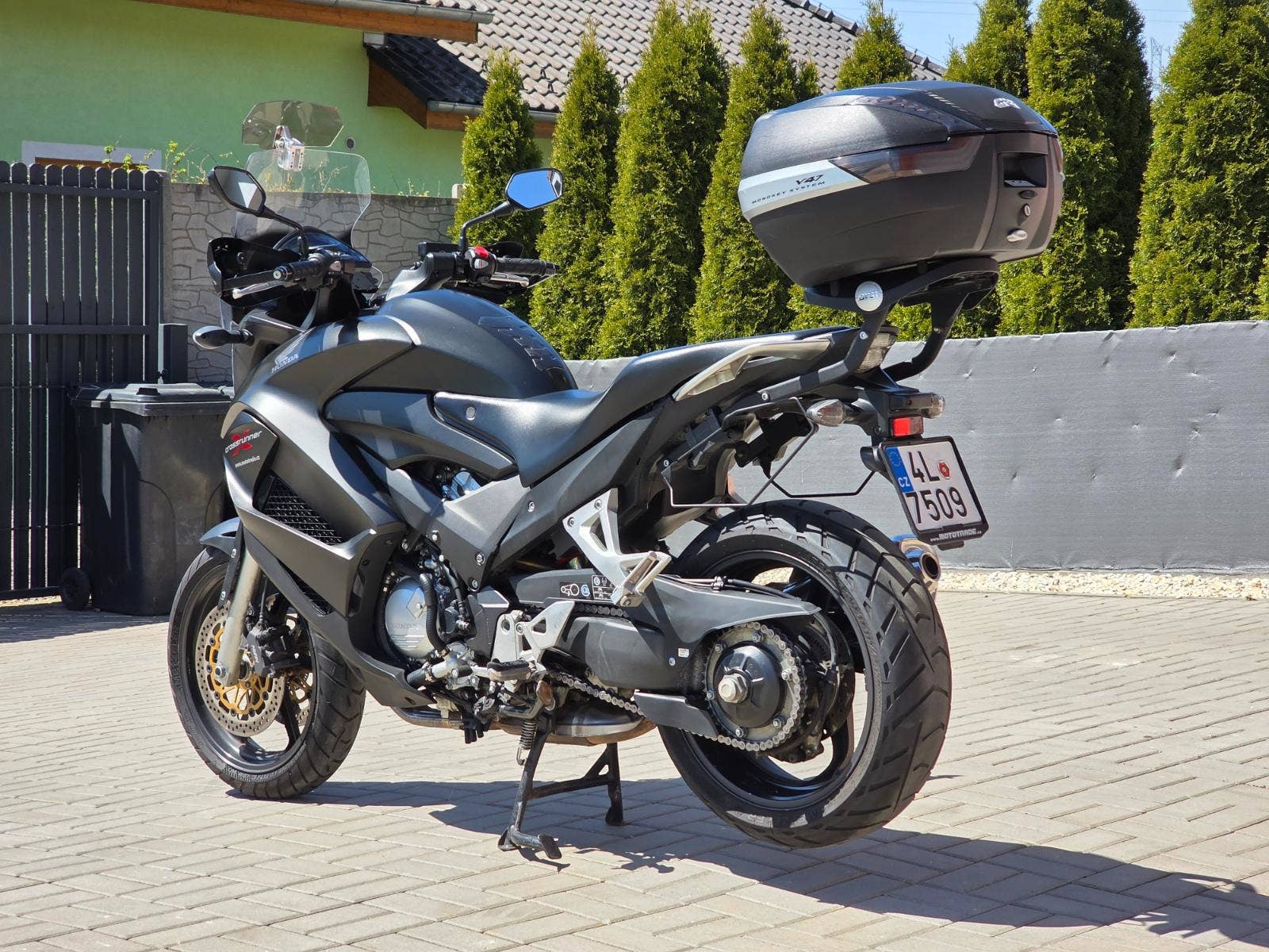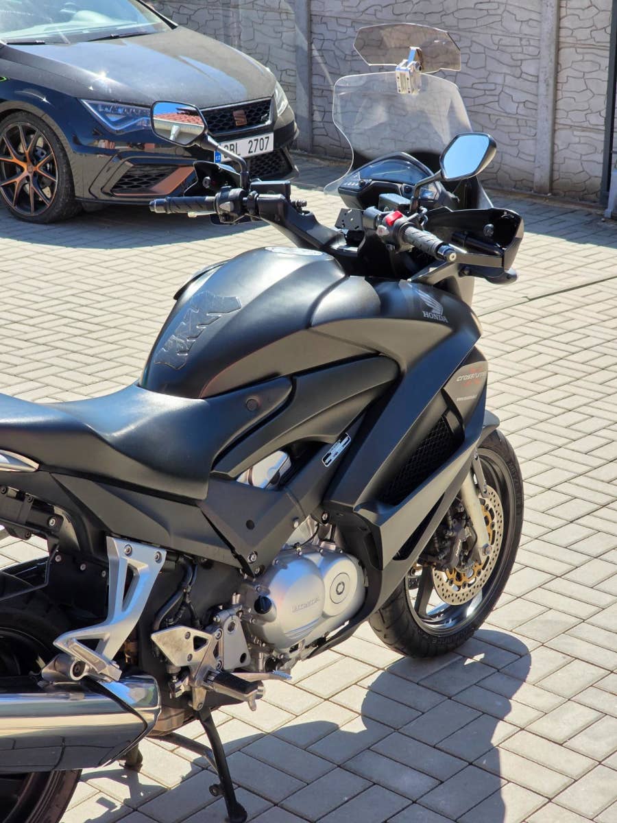 Prodám Honda VFR 800 X Crossrunner, rok výroby 2014, najeto 49.000 km, výkon 75 kW, objem motoru 782cm3, STK platná do 5/2030. Motorka dovezena firmou MotoTrade v roce 2018 s nájezdem 28.000 km. Pravidelný servis, aktuálně by bylo dobré pouze udělat výměnu oleje a filtru ikdyž nájezd byl jen cca 2000 km, ale je tam druhý rok. Jinak motorka v pěkném stavu, plně funkční, bez oděrek. Navíc dokoupený kufr Givi V47 s plotnou a nosičem, držáky na brašny, deflektor na plexi, ukazatel zařazené rychlosti Gipro.