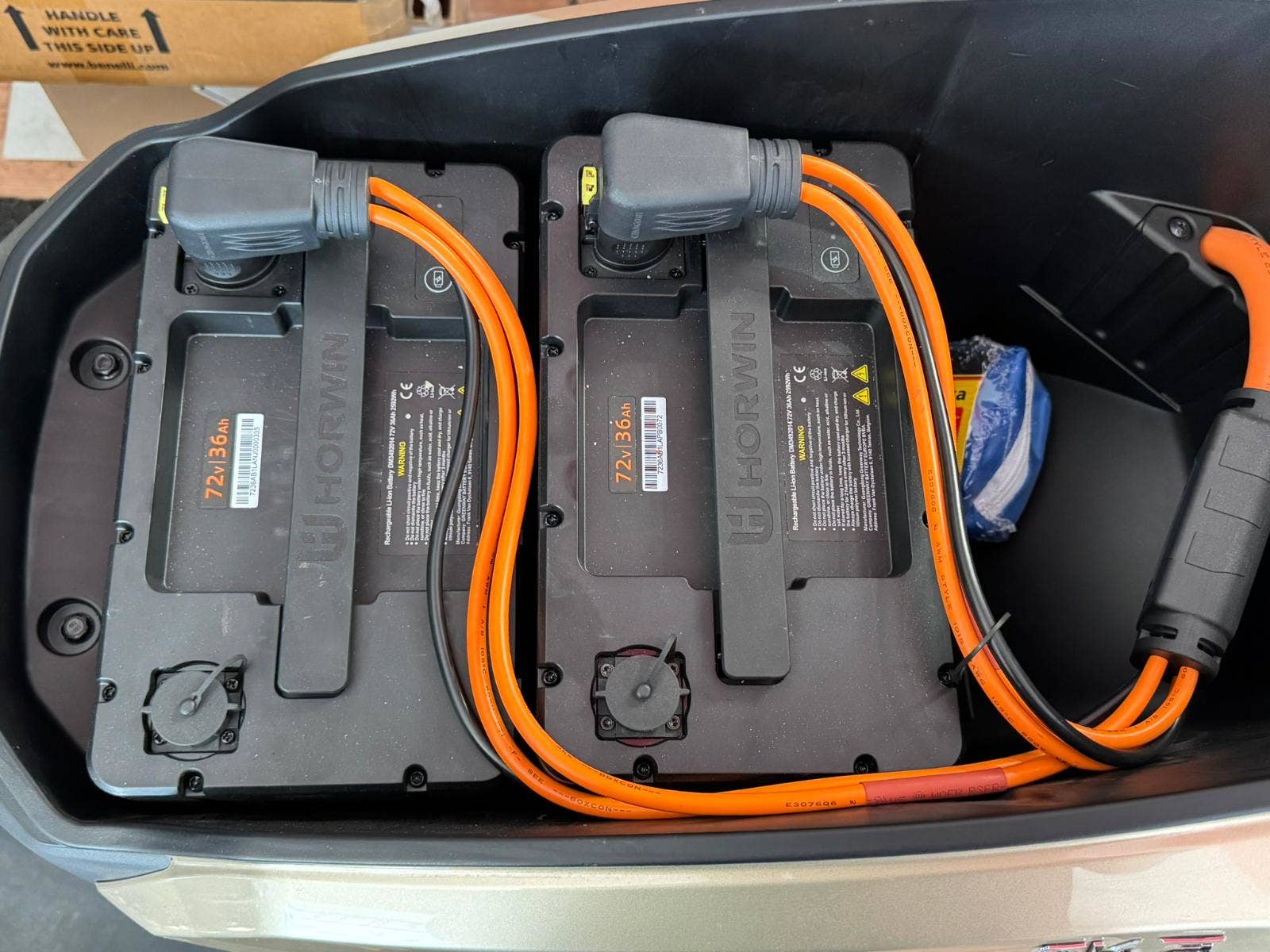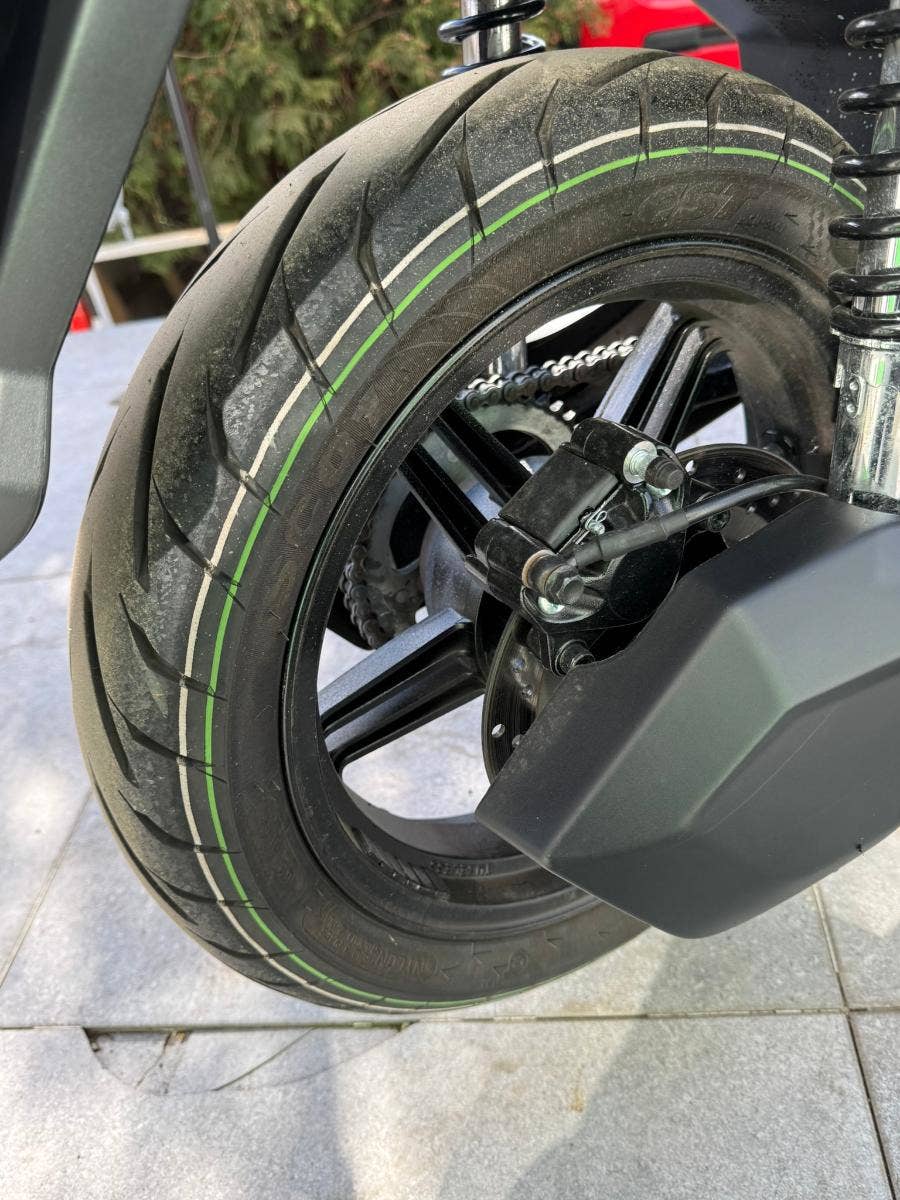 Baterie (2x 72 V / 36 Ah) poskytuje dojezd až 150 km (při rychlosti 45 km/h)