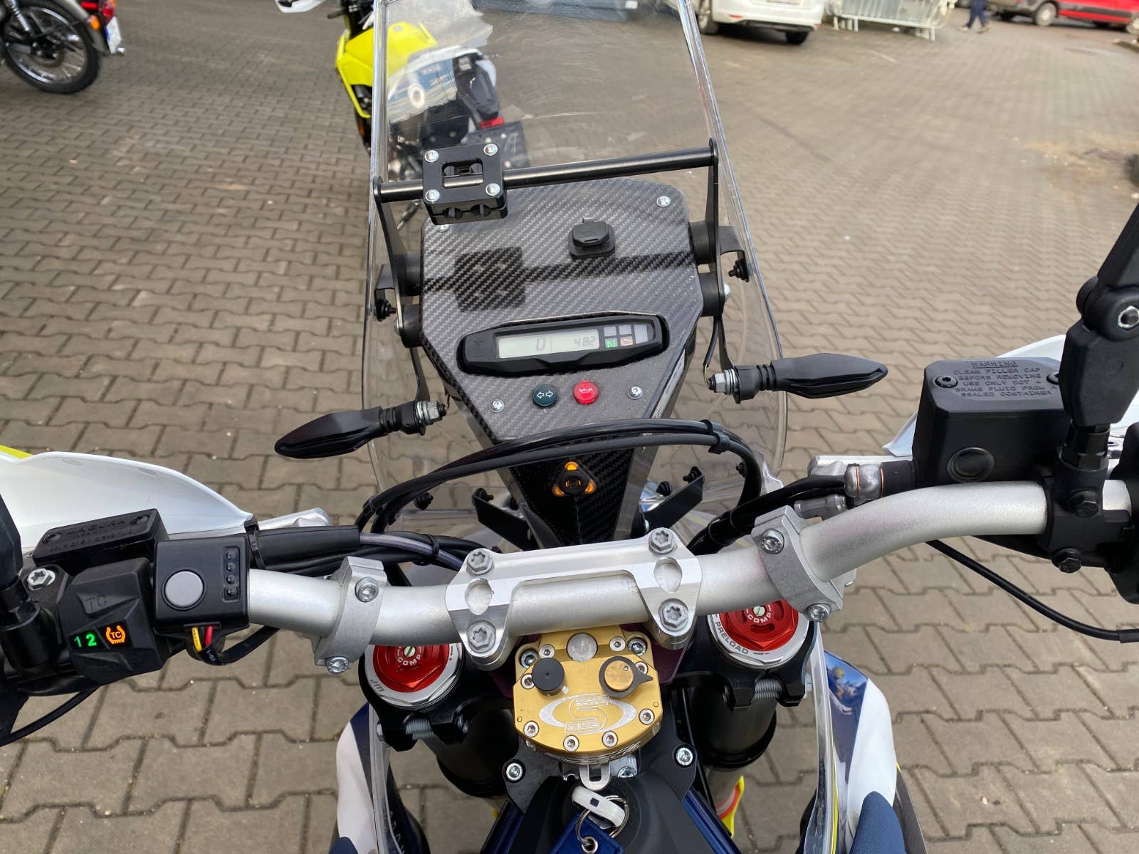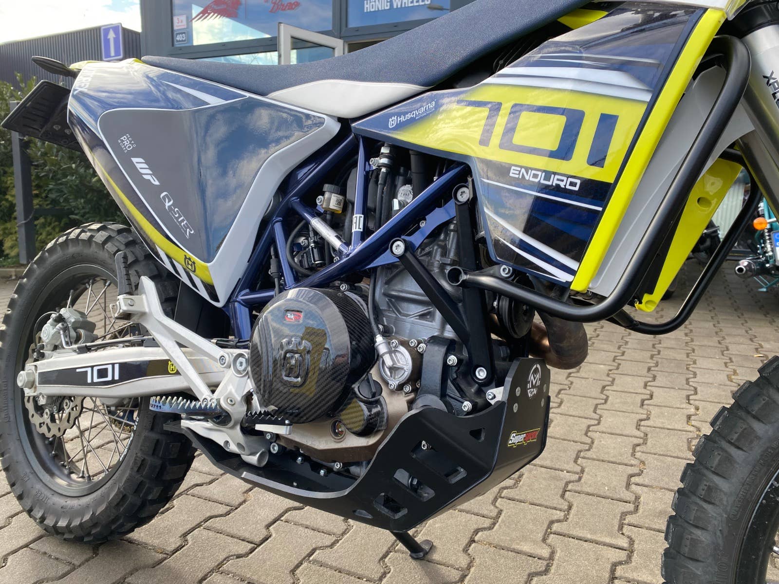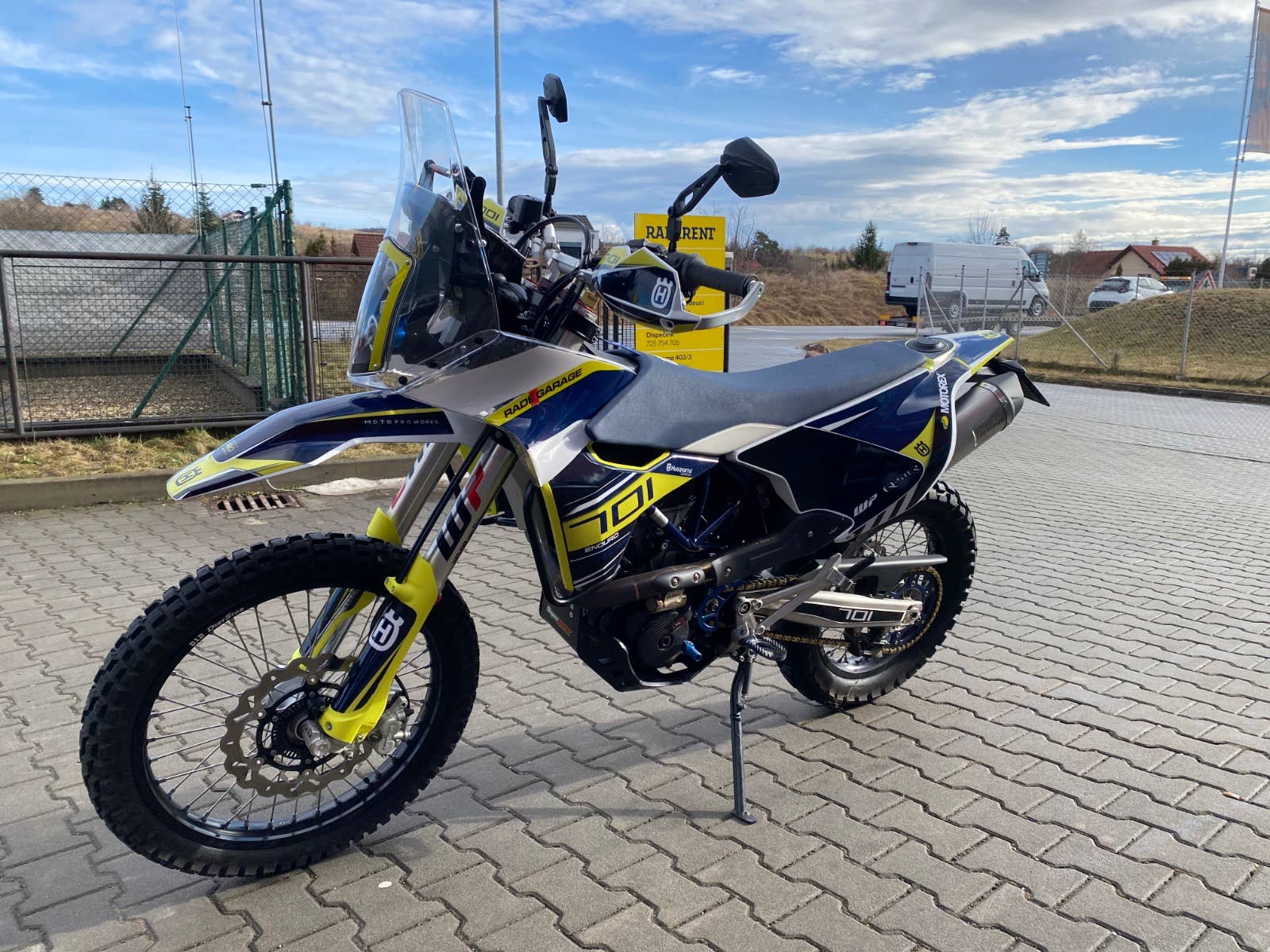 V komisním prodeji nabízíme tuto Rally stavbu. Stav nového motocyklu. Veškerý servis a úpravy provedeny u autorizovaného prodejce. Z doplňků je namontováno: polepy MotoProWorks, RadeGarage kaplička a brzdový pedál, duralové blastry, ohýbací zrcátka, ochrana chladiče, vyhřívané gripy, tlumič řízení SCOTTS, kryt motoru, carbonové kryty Tekmo, titanové stupačky, CNC páčka řazení, Vanasche kryt kolečka, Leo Vince výfuk, Carbon kryt výfuku, cartridge WP XPLOR PRO 6500, podvozek nastaven na váhu 105kg, větší rozeta 48 zubů.