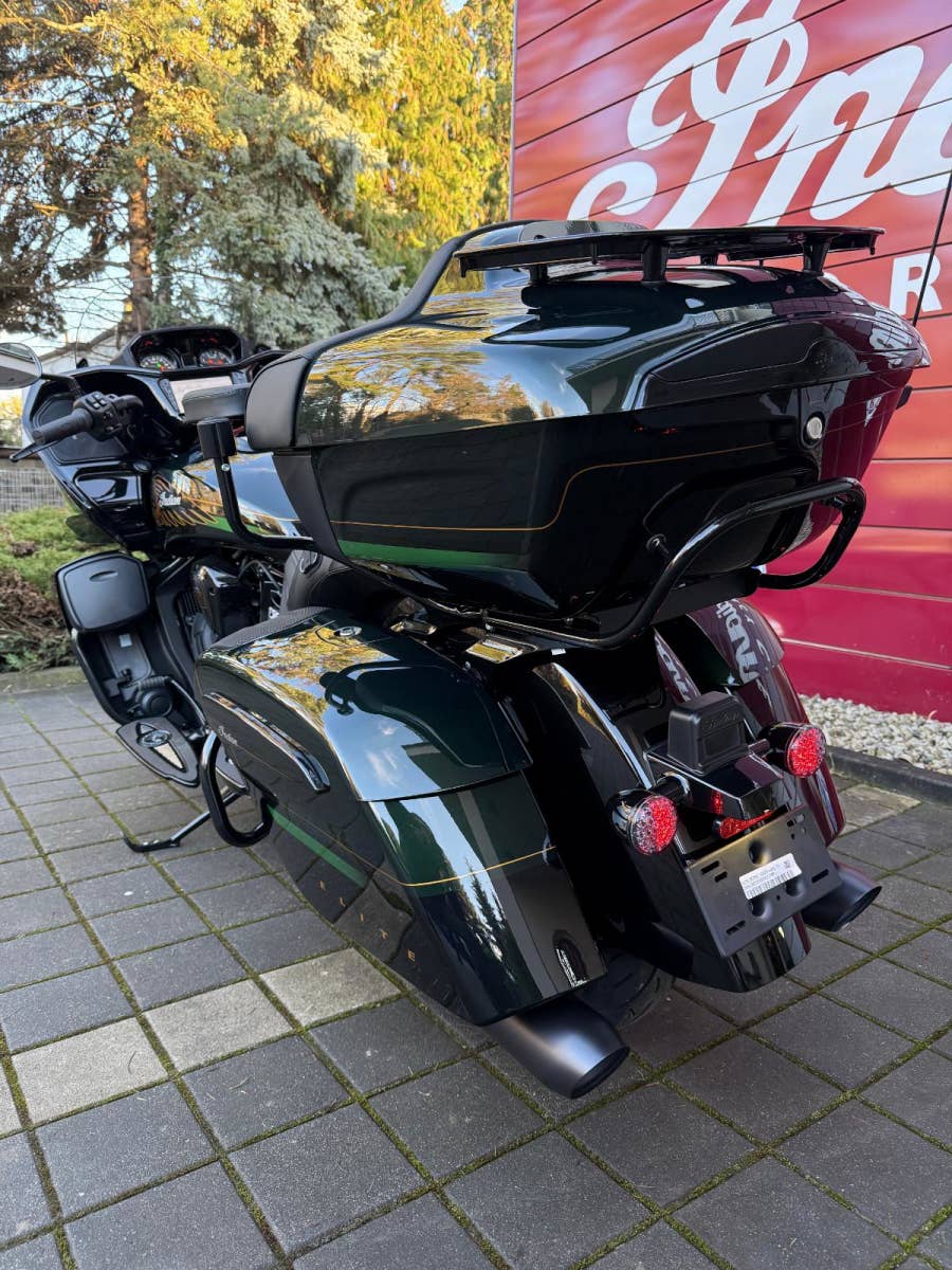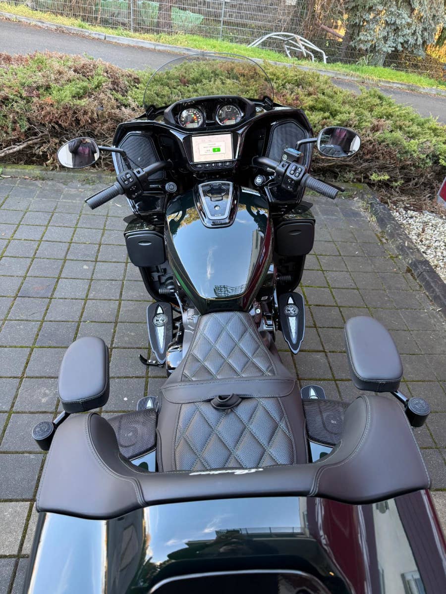 Špičkové, tříbarevné lakování, ručně malované zlaté detaily a luxusní odstíny Black Candy a Black Forest Candy… To je skutečné mistrovské dílo na dvou kolech Indian Pursuit Elite. Motocykl, který je vrcholem exkluzivity a stylu, vyrobený v limitované sérii s pouhými 250 kusy pro celý svět. Pokud hledáte motocykl, který spojuje ikonický americký design, nekompromisní výkon a maximální komfort na dlouhých cestách, Indian Pursuit Elite je přesně tou správnou volbou.