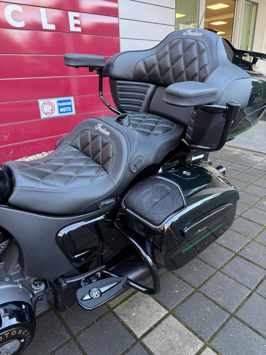 Barevně sladěné sedlo poskytuje prvotřídní pohodlí za každého počasí – jak pro vás, tak pro spolujezdce. Nastavení lze snadno upravit pomocí ovládacích prvků na sedle nebo přes infotainment systém. Exkluzivní plotny Headdress dodávají motocyklu elegantní vzhled a zároveň nabízejí více prostoru pro nohy. Opěrky rukou pak zajišťují dokonalé pohodlí i na dlouhých cestách, aby si jízdu naplno užil i váš spolujezdec. Podsvícené ovladače na řídítkách s vyhřívanými rukojeťmi, loketní opěrky spolujezdce a přídavná světla.