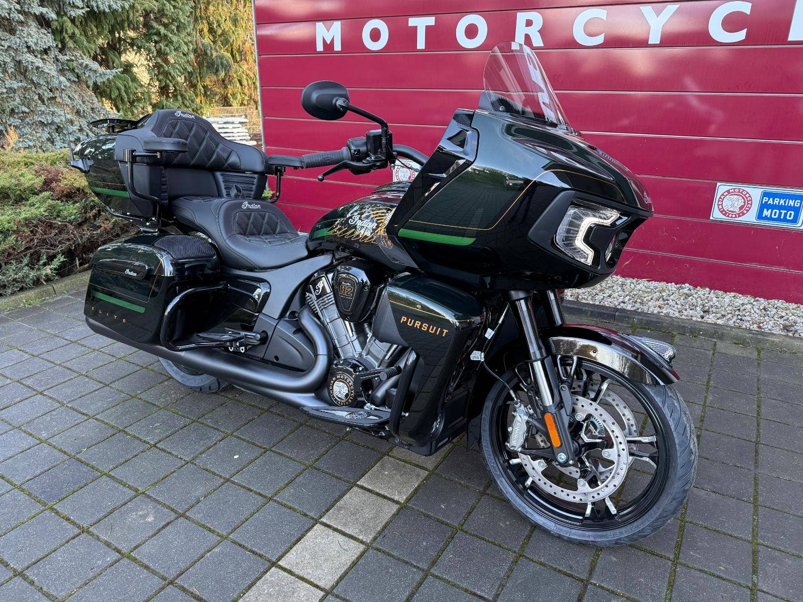 Vysoký výkon si žádá precizní techniku. Obrácená vidlice a dvojité radiální brzdy Brembo® nejsou jen výrazným designovým prvkem, ale především zajišťují špičkovou ovladatelnost a jistotu při brzdění. Indian Pursuit Elite přináší pokročilé asistenční systémy, které zvyšují bezpečnost a komfort každé jízdy. Ve standardní výbavě nechybí systém hlídání mrtvého úhlu, upozornění na hrozící náraz zezadu, výstražná světla při riziku kolize, asistent rozjezdu do kopce, elektronicky propojené brzdy a Smart Lean Technology s ABS a kontrolou trakce pro lepší stabilitu v náklonu. Navíc zde naleznete ve standardní výbavě bezklíčové zapalování, dálkově uzamykatelné kufry, tempomat a USB port.