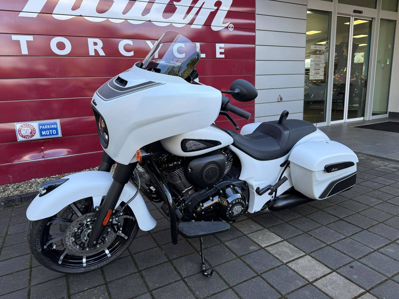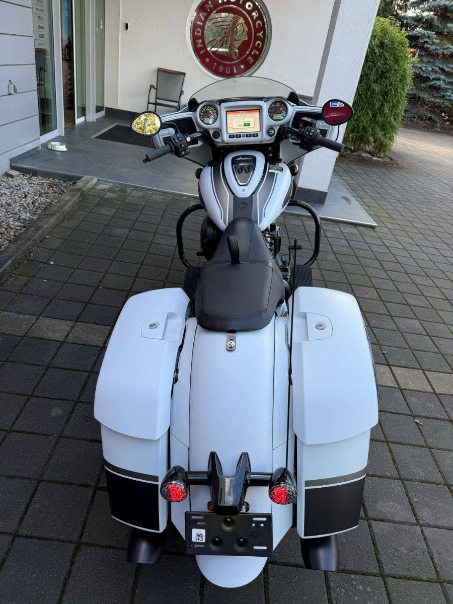 Nepřehlédnutelný Indian Chieftain Dark Horse v krásné, decentní barvě - Ghost White metallic. Výkonný, vzduchem chlazený motor Thunderstroke 116 ti nabídne skvělou ovladatelnost a kultivovanou jízdu, díky elegantní kapotáži výborná ochrana jezdce, asistenčními programy s možností m. j. volby jízdního režimu, 7 palcový, velkoplošný displej, navigace, audio, Apple CarPlay, tempomat, elektricky ovládané přední plexi, bezklíčové startování, LED světlomet, přední padací rámy, zamykatelné prostorné kufry, atd.