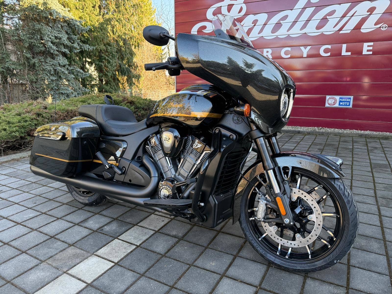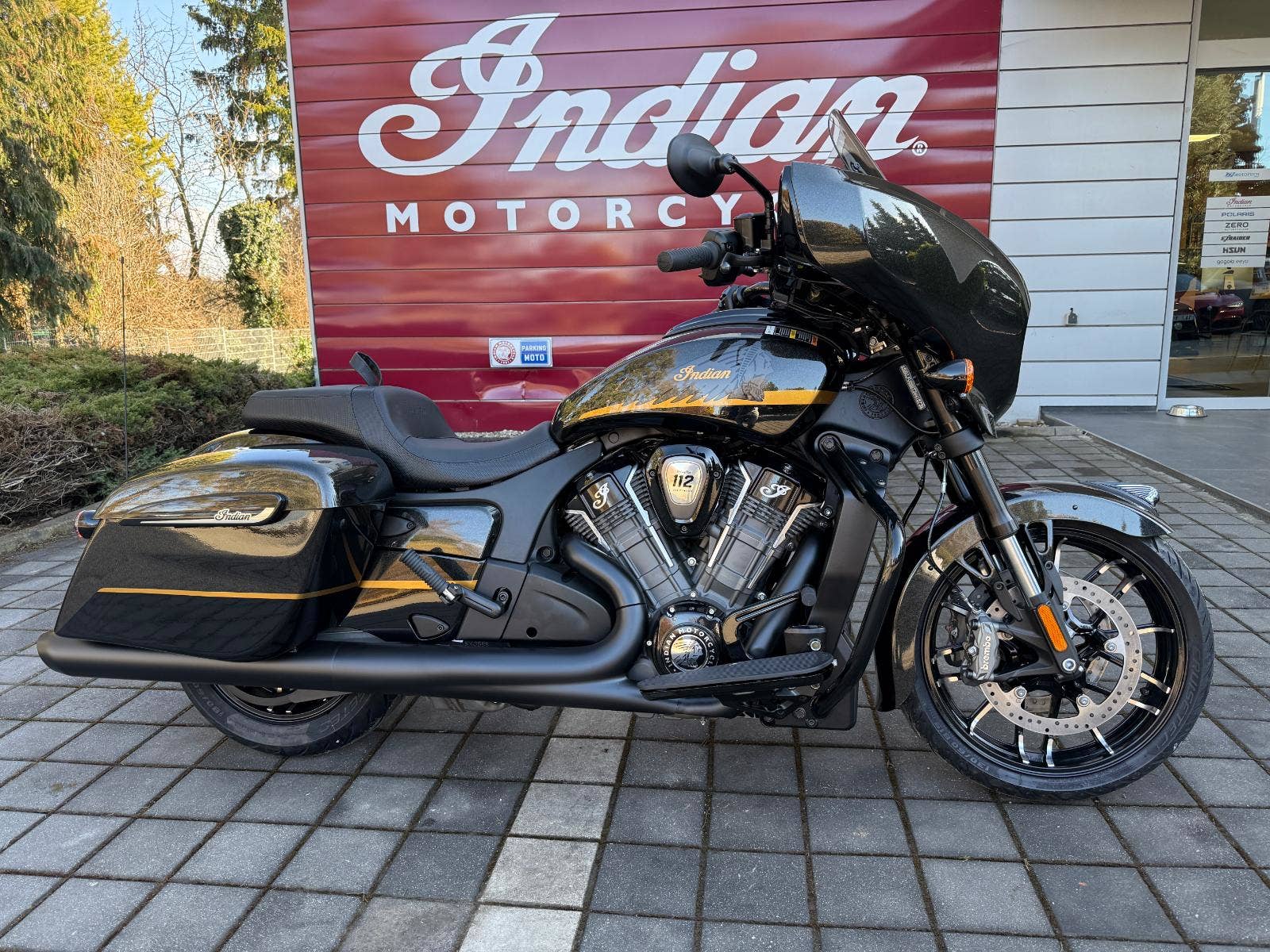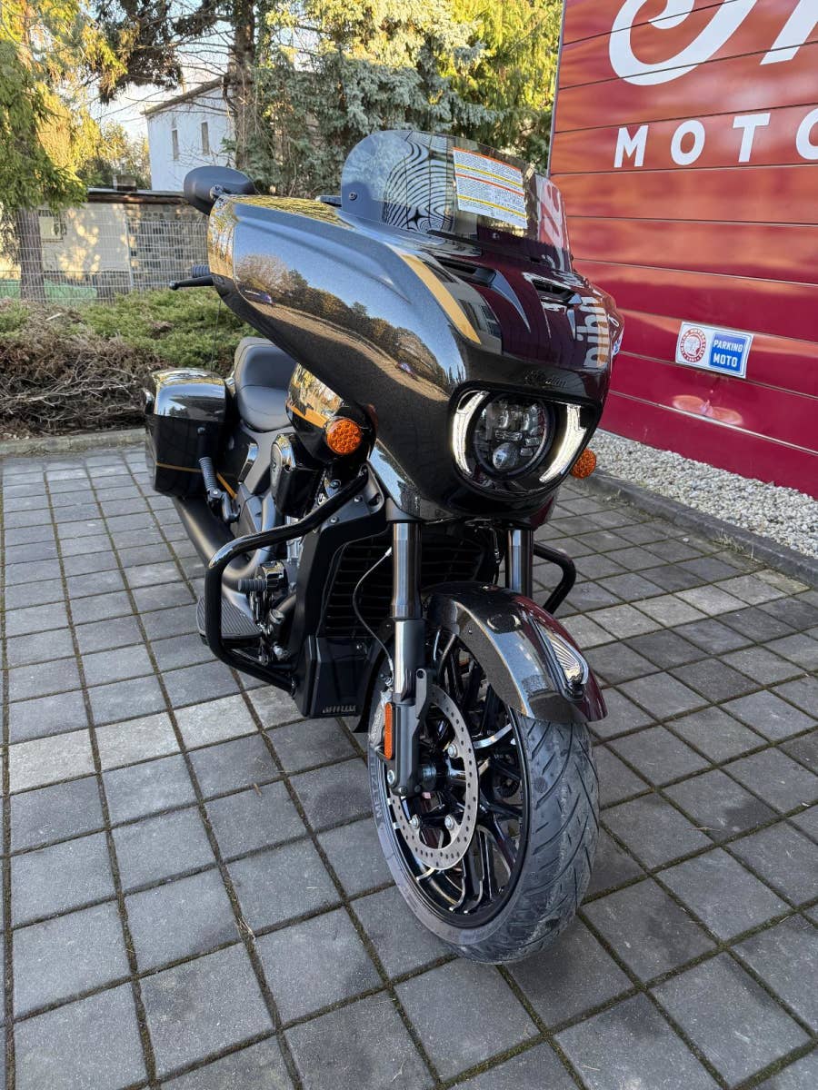 Novinka v nabídce – Chieftain 112 Powerplus Dark Horse v barvě Black Crystal / Black Metallic & Championship Gold. Kapalinou chlazený motor PowerPlus o objemu 1 834 cm3 nabízí špičkový výkon 122 koní a točivý moment 181,4 Nm. Tento technický klenot pochází přímo z dílen, které stojí za vítězstvím v prestižní sérii závodů MotoAmerica King of the Baggers.