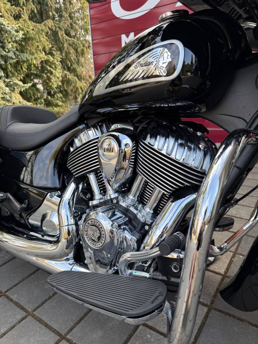 Dnes již legendární Indian Chieftain Limited v decentní barvě Black Metallic. Kombinace černé metalízy a chromu na motoru a výfucích dodává stroji punc elegance a síly. Výkonný, vzduchem chlazený motor Thunderstroke 116 ti nabídne skvělou ovladatelnost a kultivovanou jízdu, díky elegantní kapotáži výborná ochrana jezdce, asistenčními programy s možností m. j. volby jízdního režimu, 7 palcový, velkoplošný displej, navigace, audio, Apple CarPlay, tempomat, elektricky ovládané přední plexi, bezklíčové startování, LED světlomet, přední padací rámy, zamykatelné prostorné kufry, atd.