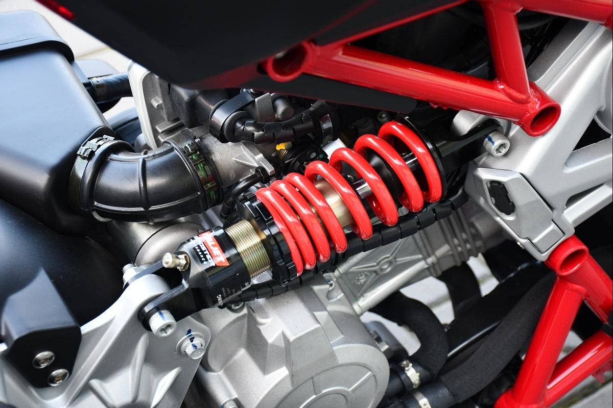 Jednoramenný tlumič I. S. S. a hydropneumatický nastavitelný tlumič PAIOLI