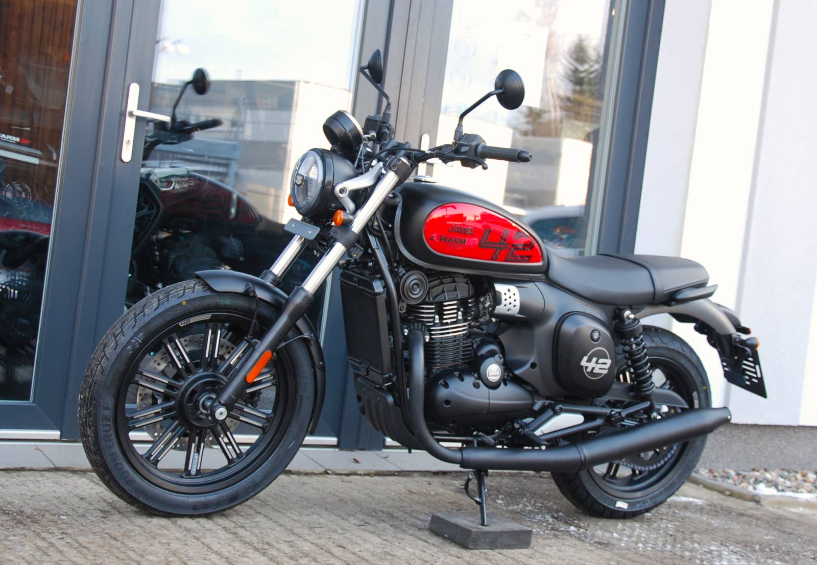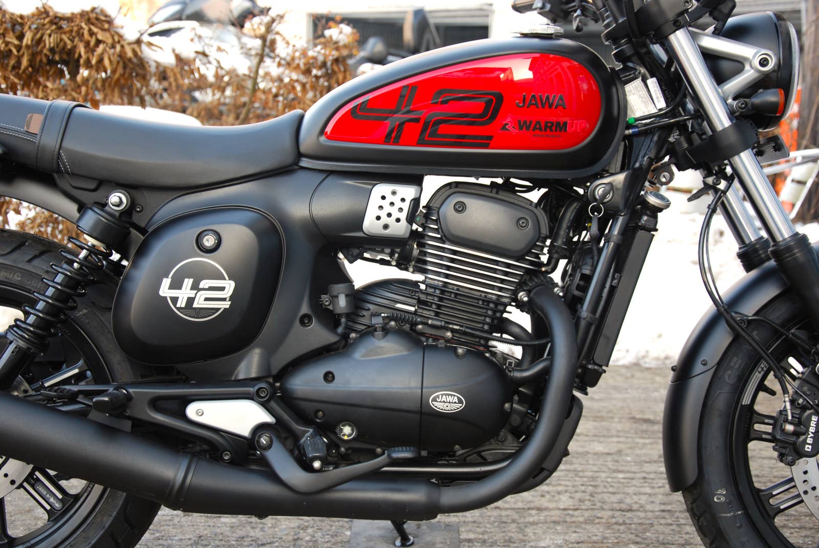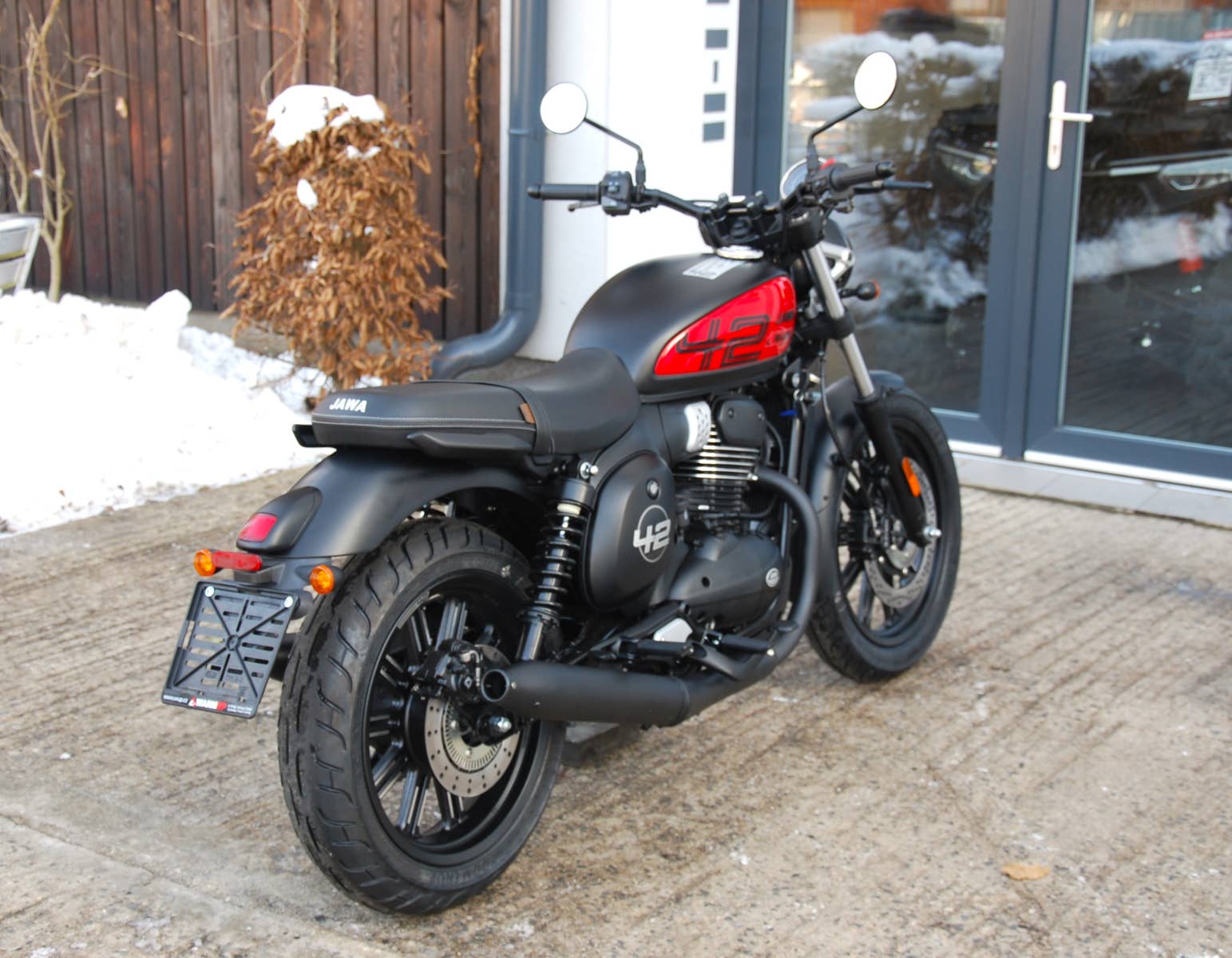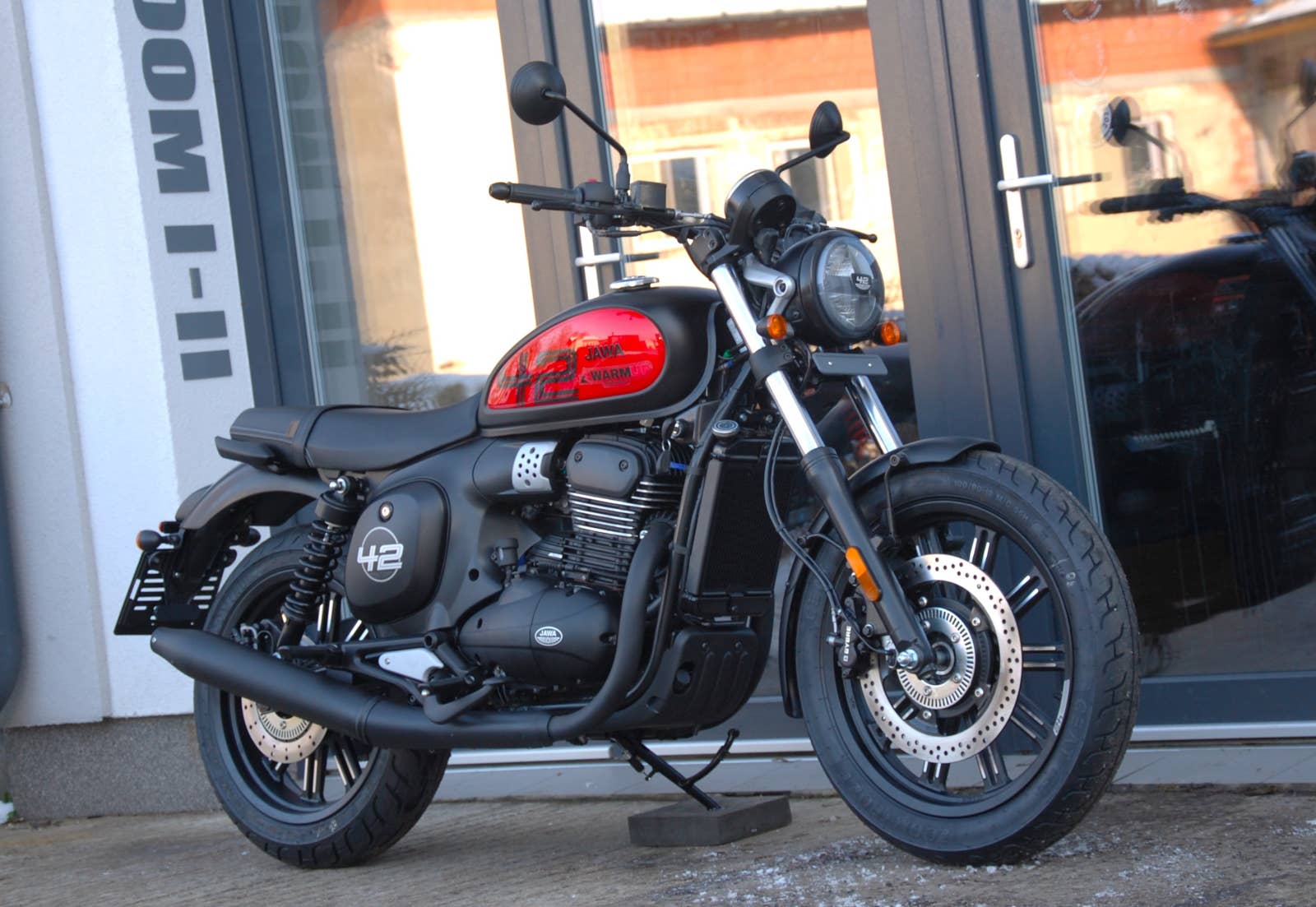 Obdobnou inovaci přináší i motocykl JAWA 350 CL 42. Nová generace řady 42 přináší, stejně jako základní provedení 350 CL je využit technicky shodný základ motocyklu s novější a silnější pohonnou jednotkou, ale se sportovnější lehkostí designu. Opět je využit oddělený světlomet a excentricky umístěný tachometr. Nově můžete na motocyklu nalézt inovovaný tvar palivové nádrže, neopomenutelné jsou zvednuté tlumiče výfuků a celý sportovní vzhled dolaďující litá kola. Nezbývá již nic jiného než si ji vyzkoušet na vlastní kůži!