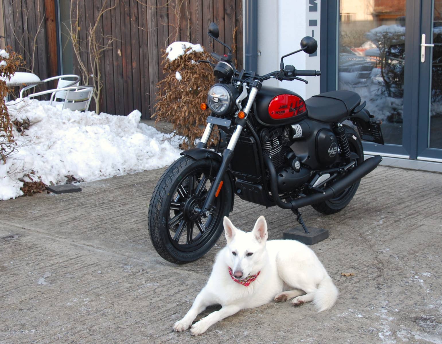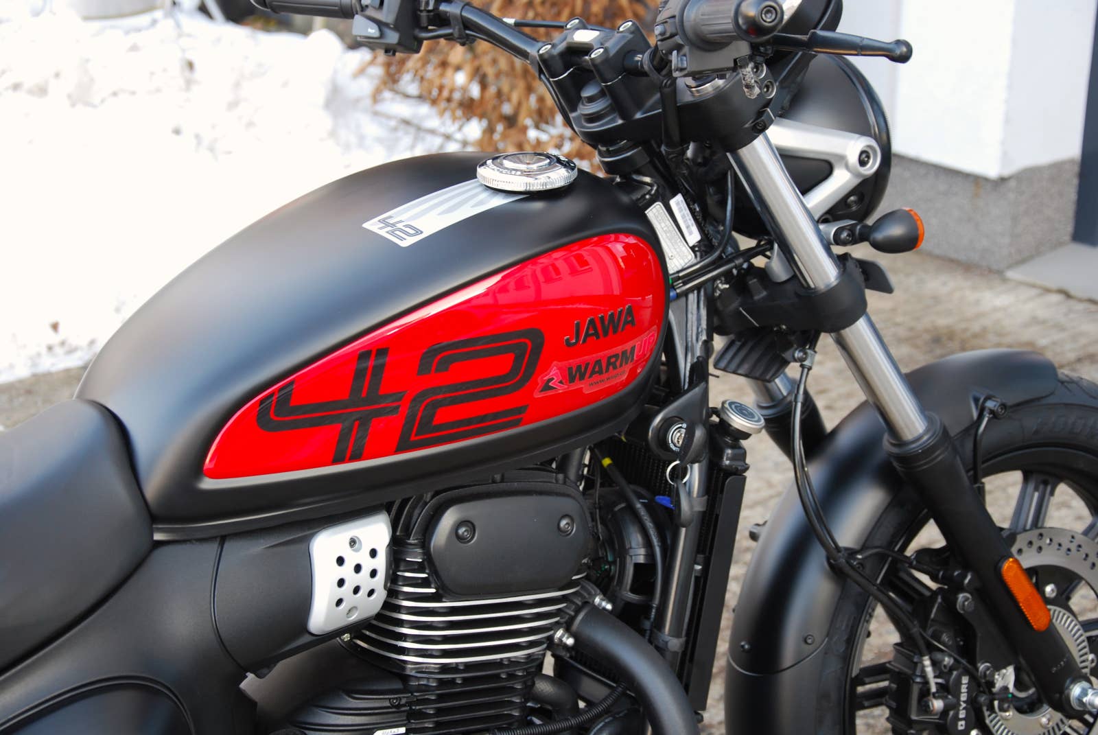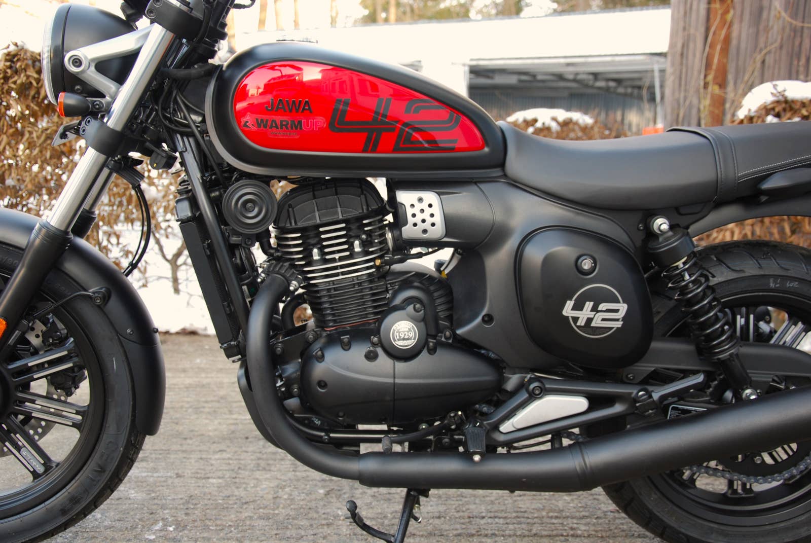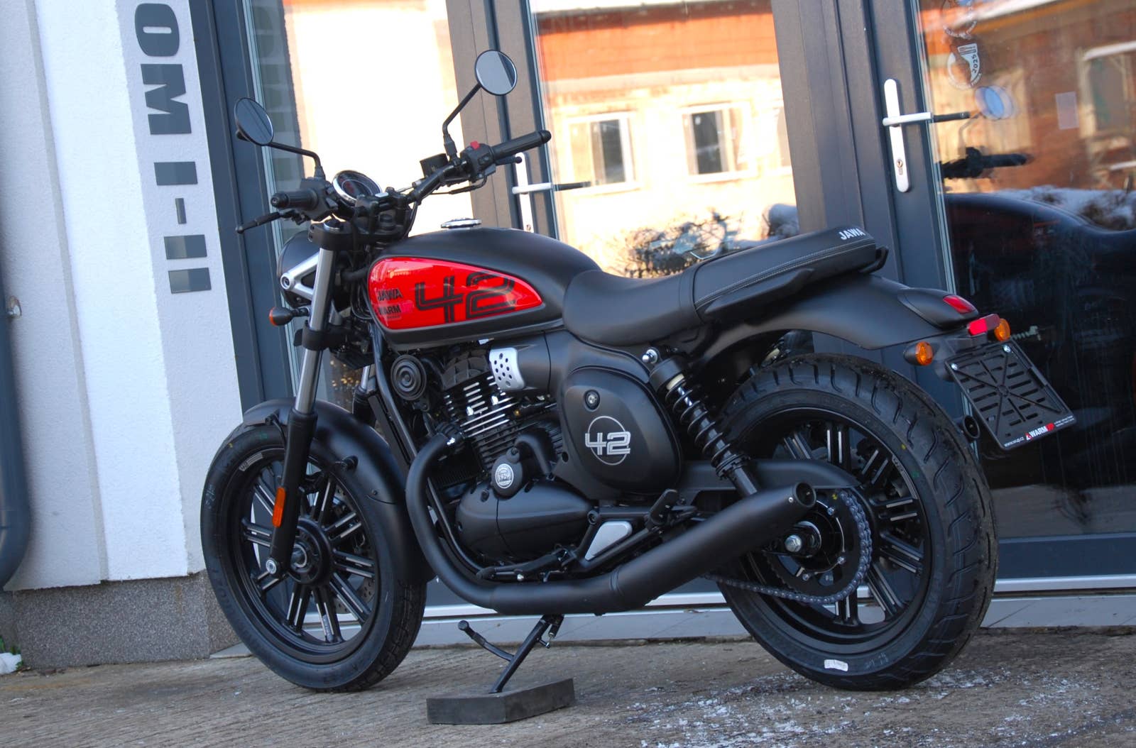 Obdobnou inovaci přináší i motocykl JAWA 350 CL 42. Nová generace řady 42 přináší, stejně jako základní provedení 350 CL je využit technicky shodný základ motocyklu s novější a silnější pohonnou jednotkou, ale se sportovnější lehkostí designu. Opět je využit oddělený světlomet a excentricky umístěný tachometr. Nově můžete na motocyklu nalézt inovovaný tvar palivové nádrže, neopomenutelné jsou zvednuté tlumiče výfuků a celý sportovní vzhled dolaďující litá kola. Nezbývá již nic jiného než si ji vyzkoušet na vlastní kůži!