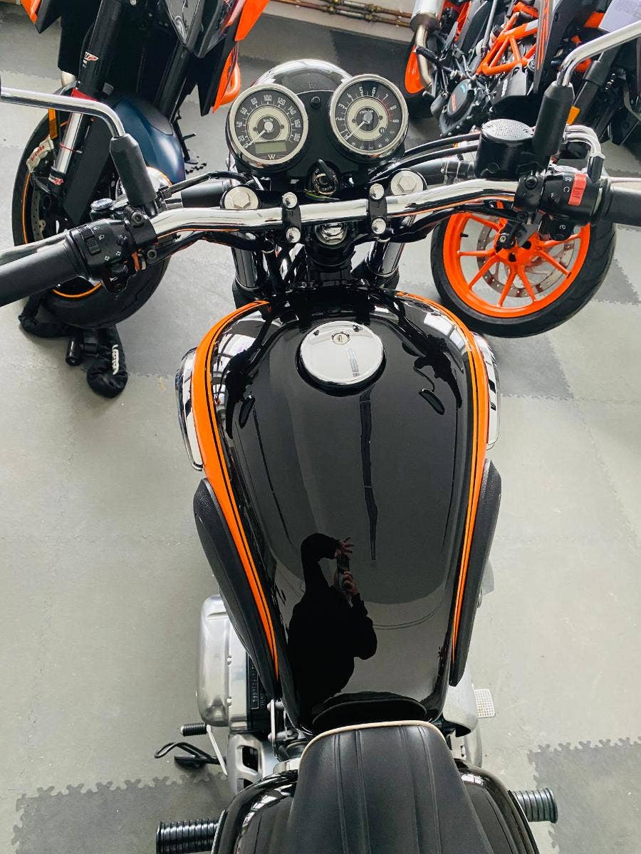Retro motocykl s pohodlnou, vzpřímenou jízdní pozicí. Zákazníci oceňují poctivé zpracování,