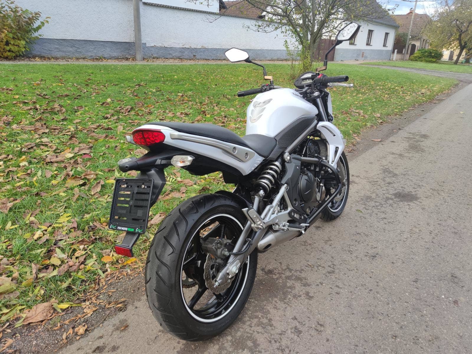 Máme na prodej velmi hezkou Kawasaki ER-6n s ABS v bílé barvě, první registrace 7/2009, výkon 25 kW = možnost řízení od 18 let, stav tachometru 42.527 km. Na motocyklu je namontovaný padací rám, jinak originální stav. Nyní bez žádných nutných investic, 2x klíč, pěkné obutí, COC list, kompletní dokumentace pro přihlášení.