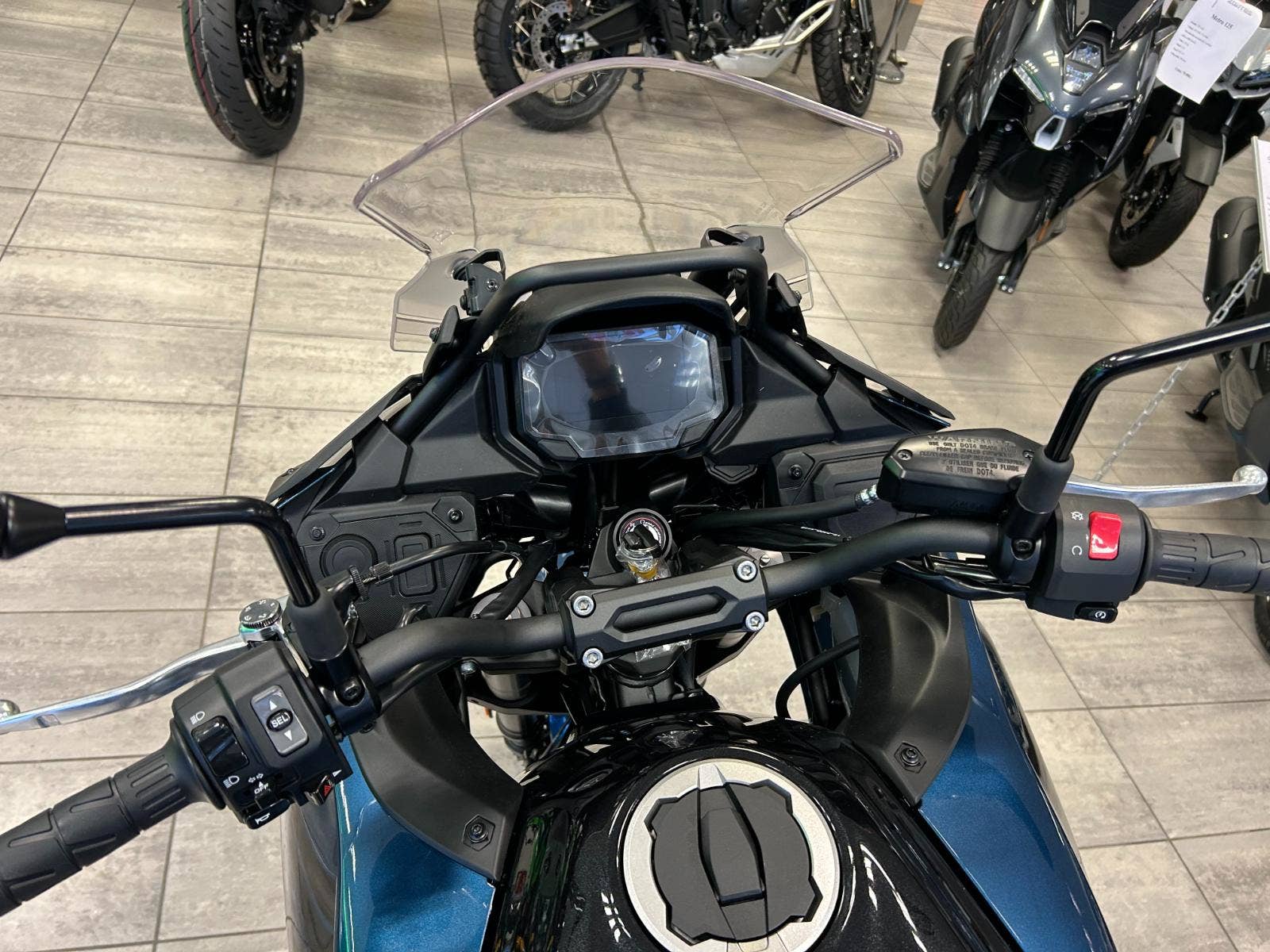 Spolu s přepracovanou maskou nabízí nový větrný štítek lepší ochranu před větrem, což přispívá k většímu pohodlí jezdce a zvyšuje potenciál Versyse 650 jako schopného partnera na dlouhé cesty. Štítek je nastavitelný ve čtyřech polohách a lze jej pohodlně nastavit i ze sedadla jezdce.
