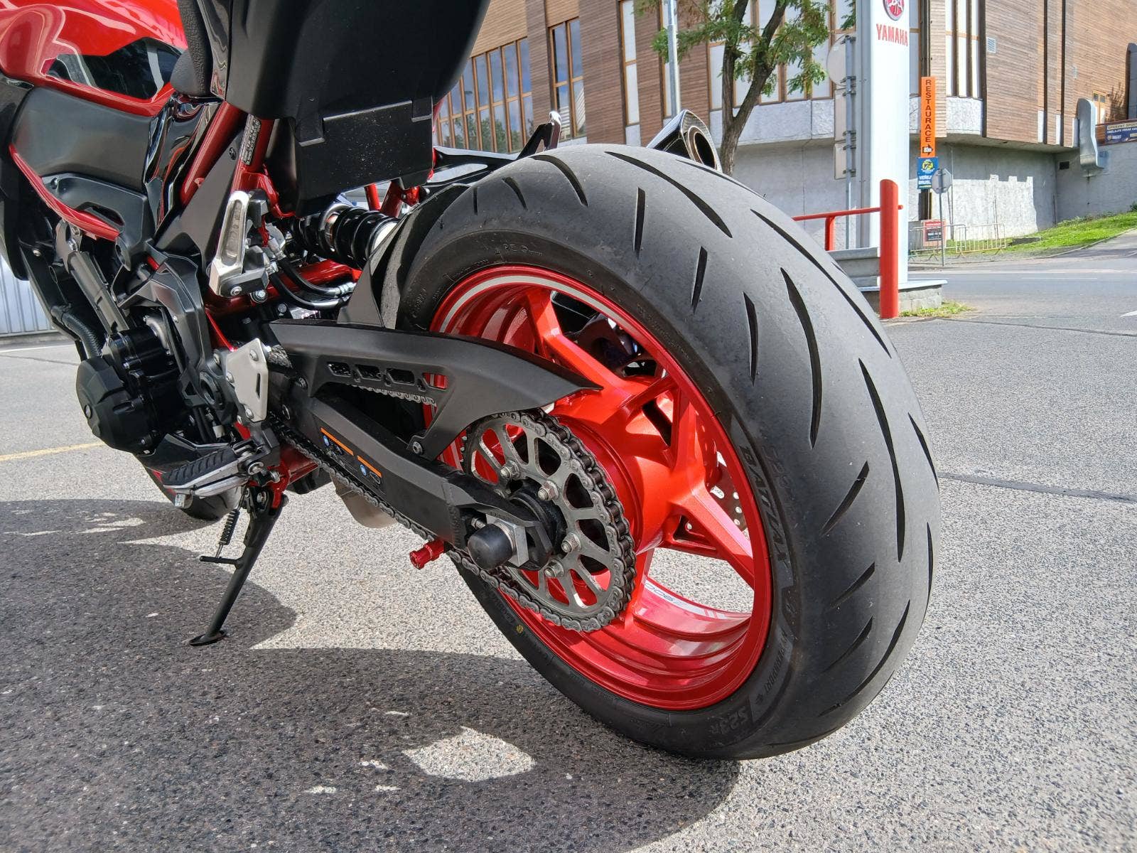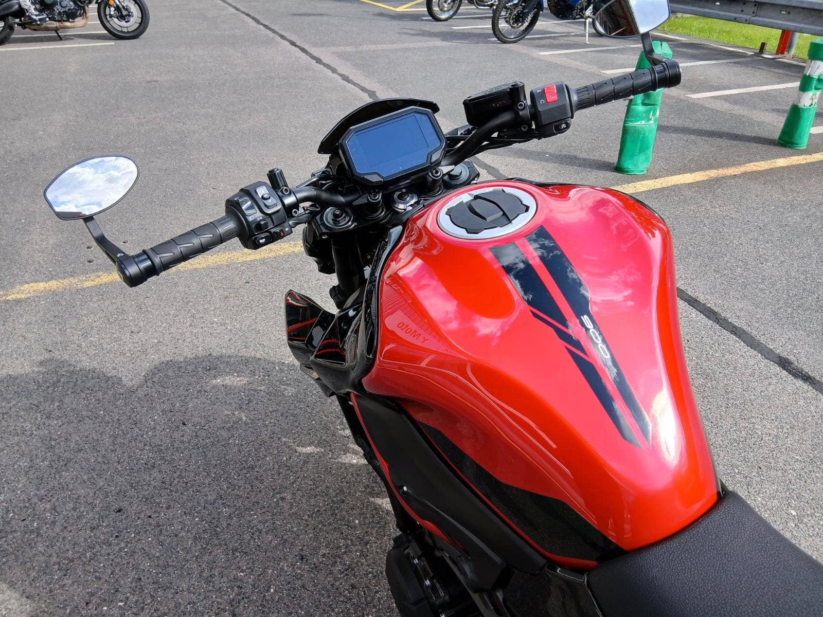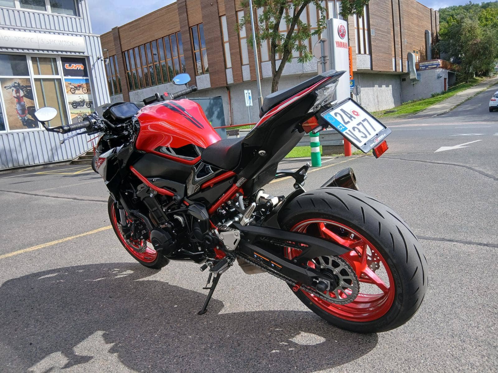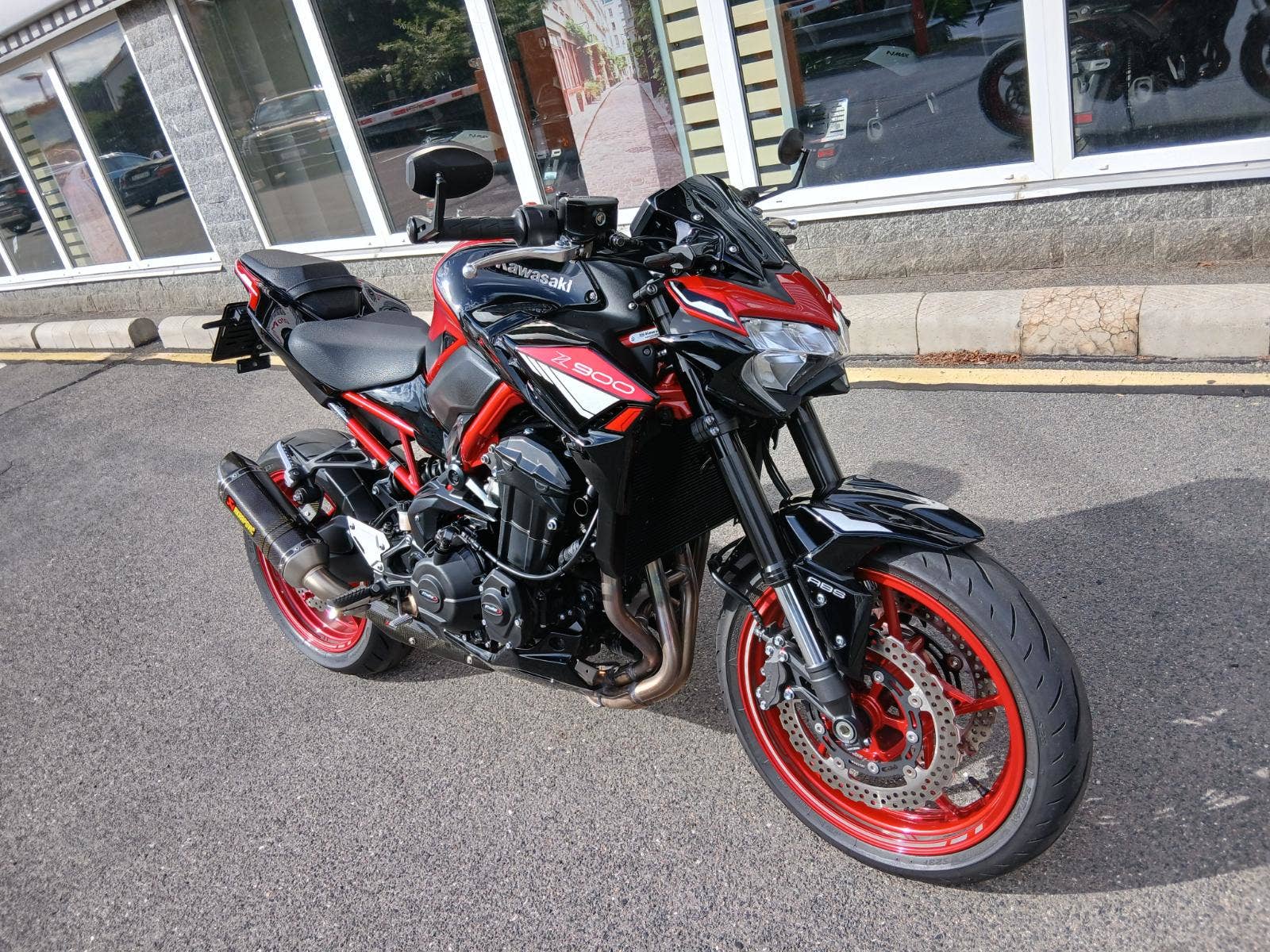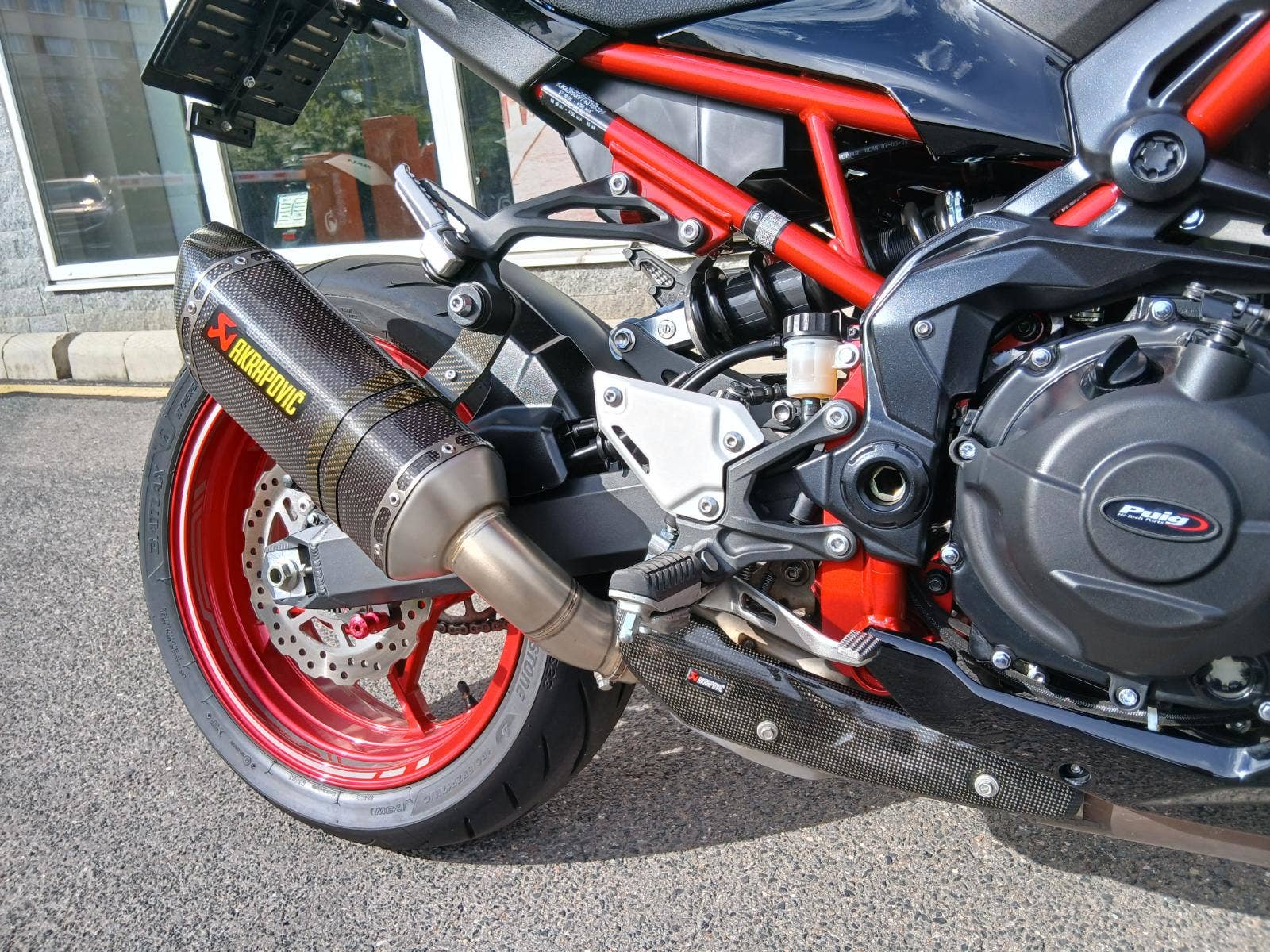 Nadstandardní výbava: homologovaný výfuk Akrapovič s karbonovým krytem, ochrana vík motoru Puig, krátký držák RZ Puig, dynamické blinkry Oxford, nastavitelná řadička SW-Motech, zrcátka v řidítkách. Originální původní díly jsou k motocyklu také.