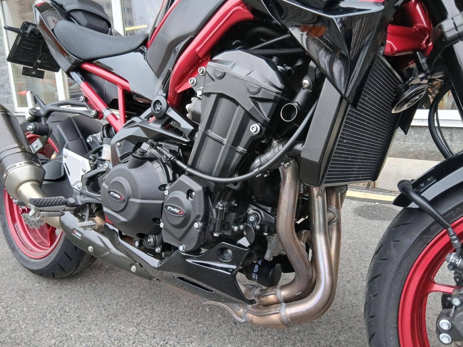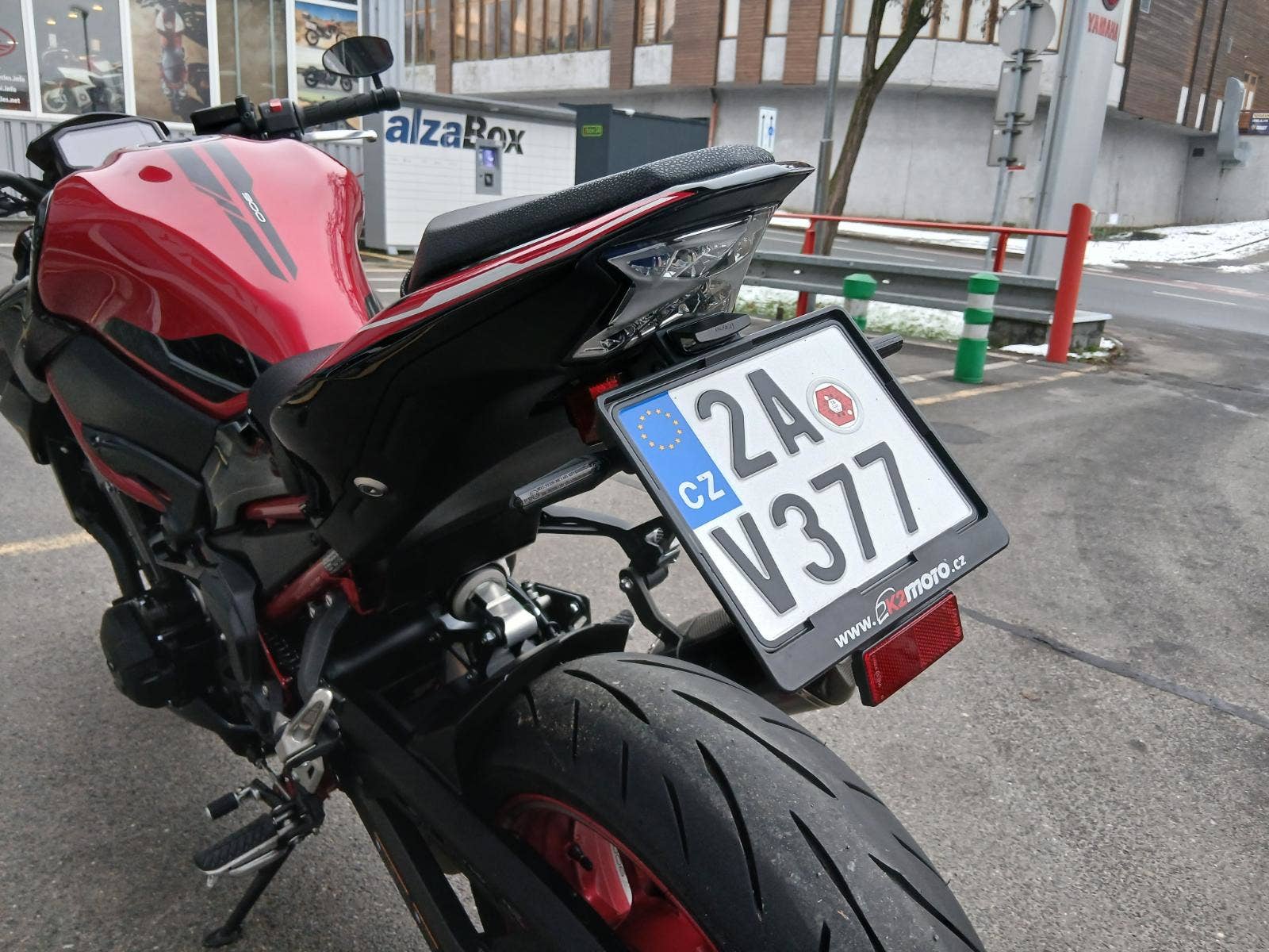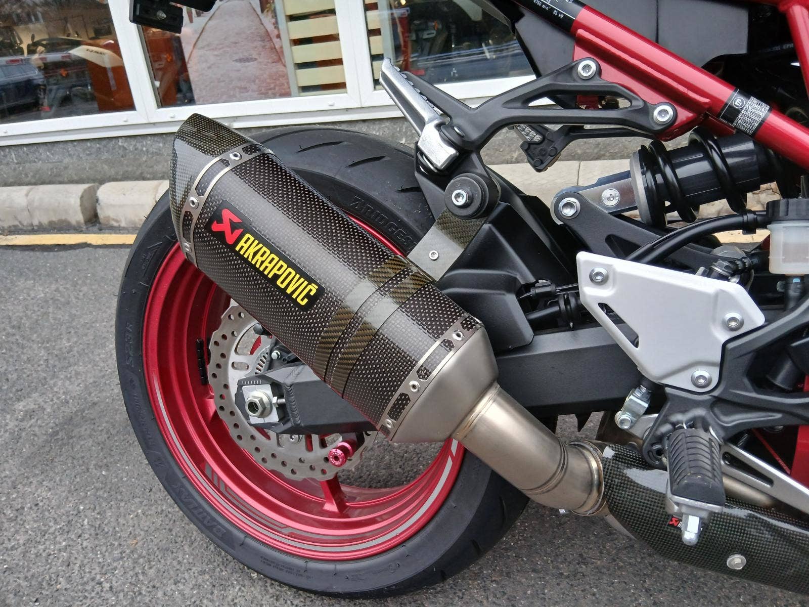 Nadstandardní výbava: homologovaný výfuk Akrapovič s karbonovým krytem, ochrana vík motoru Puig, krátký držák RZ Puig, dynamické blinkry Oxford, nastavitelná řadička SW-Motech, zrcátka v řidítkách. Originální původní díly jsou k motocyklu také.