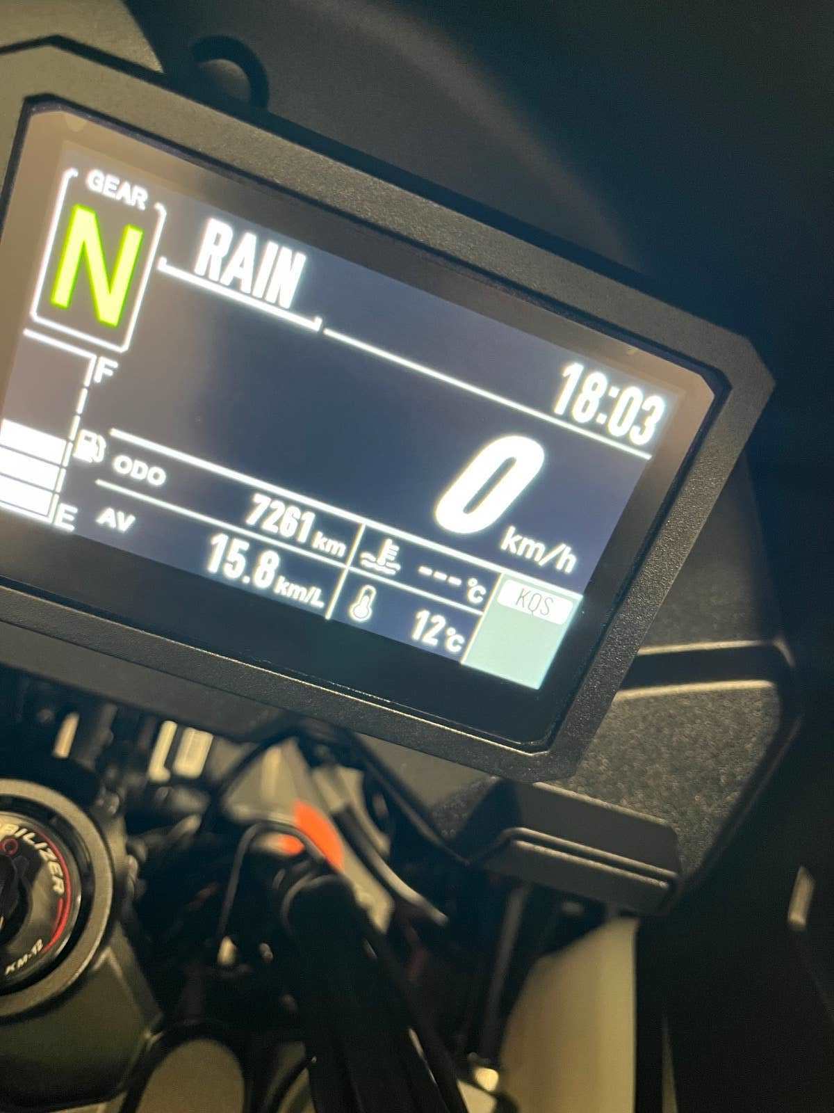 Elektronické systémy - 4 jízdní režimy Rain, Sport, Road, Rider, ABS, KTRM kontrola trakce, KCMF Asistent stability v zatáčkách, IMU Inerciální měření sklonu, ECO indikátor ekonomické jízdy.