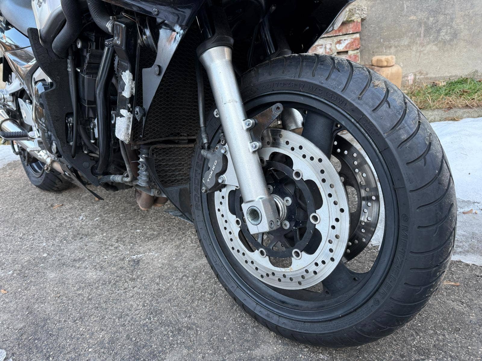 Motorka má zánovní řetězovou sadu, pěkné pneu, je v hezkém stavu lehce padlá vidle kola ok kapota s blatníkem a originálním polepem jsou k motorce + sada kufrů