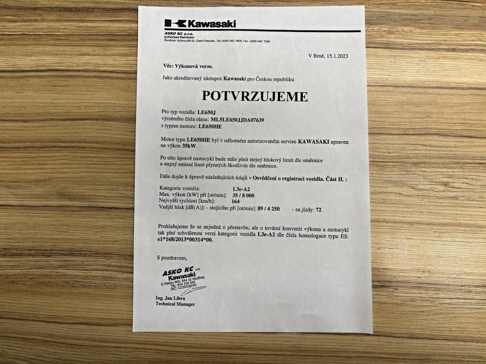 Motocykl zakoupený jako nový v ČR, 2.majitel, nehavarovaný, pravidelně servisovaný v autorizovaném servise Kawasaki - doloženo originální servisní knížkou , poslední servis byl 31.3.2025 na 10.936 km, velmi dobrý technický i vizuální stav . Verze s výkonem 35 kw - možno řídit s ŘP skupina A2 od 18ti let.