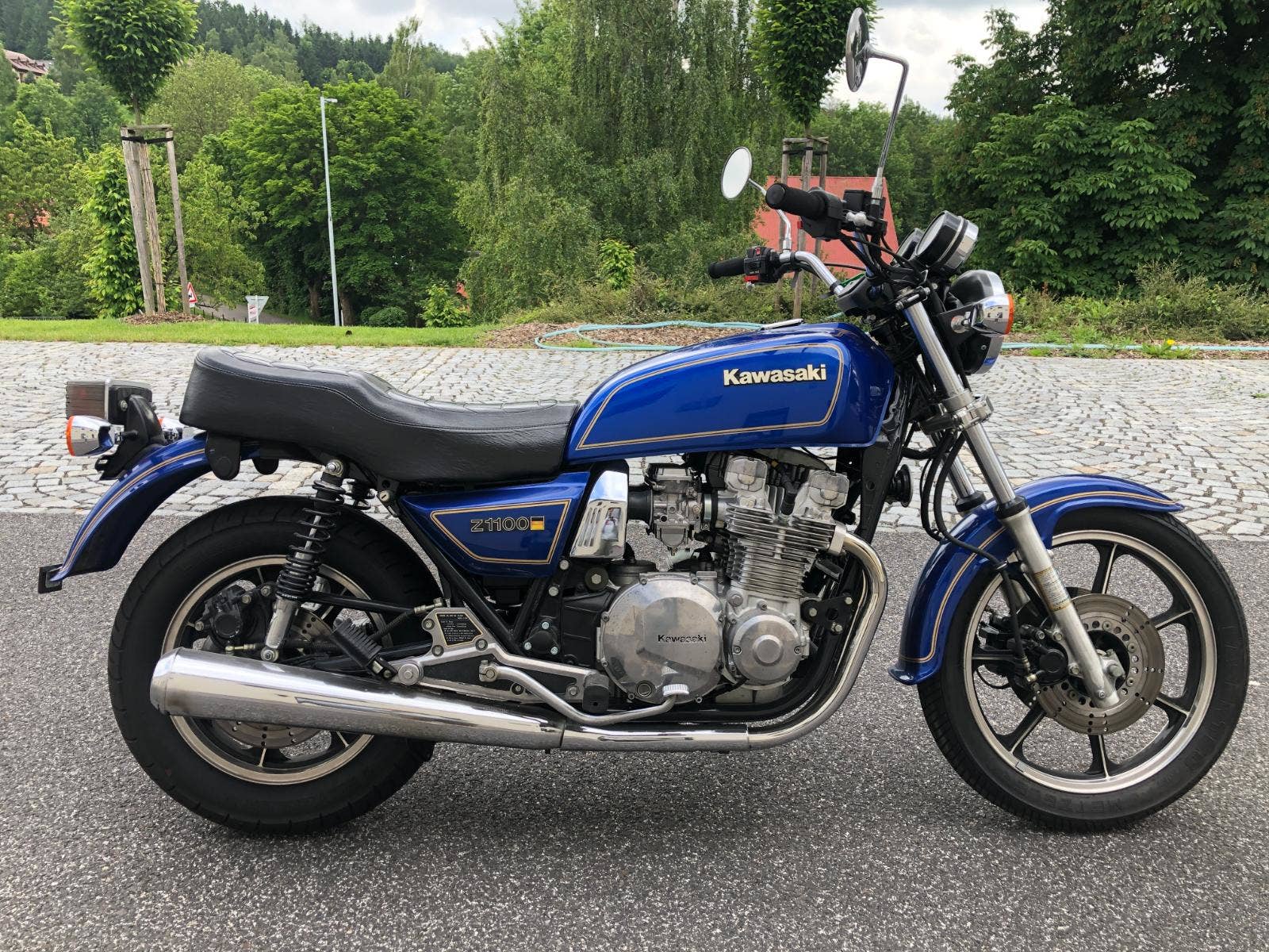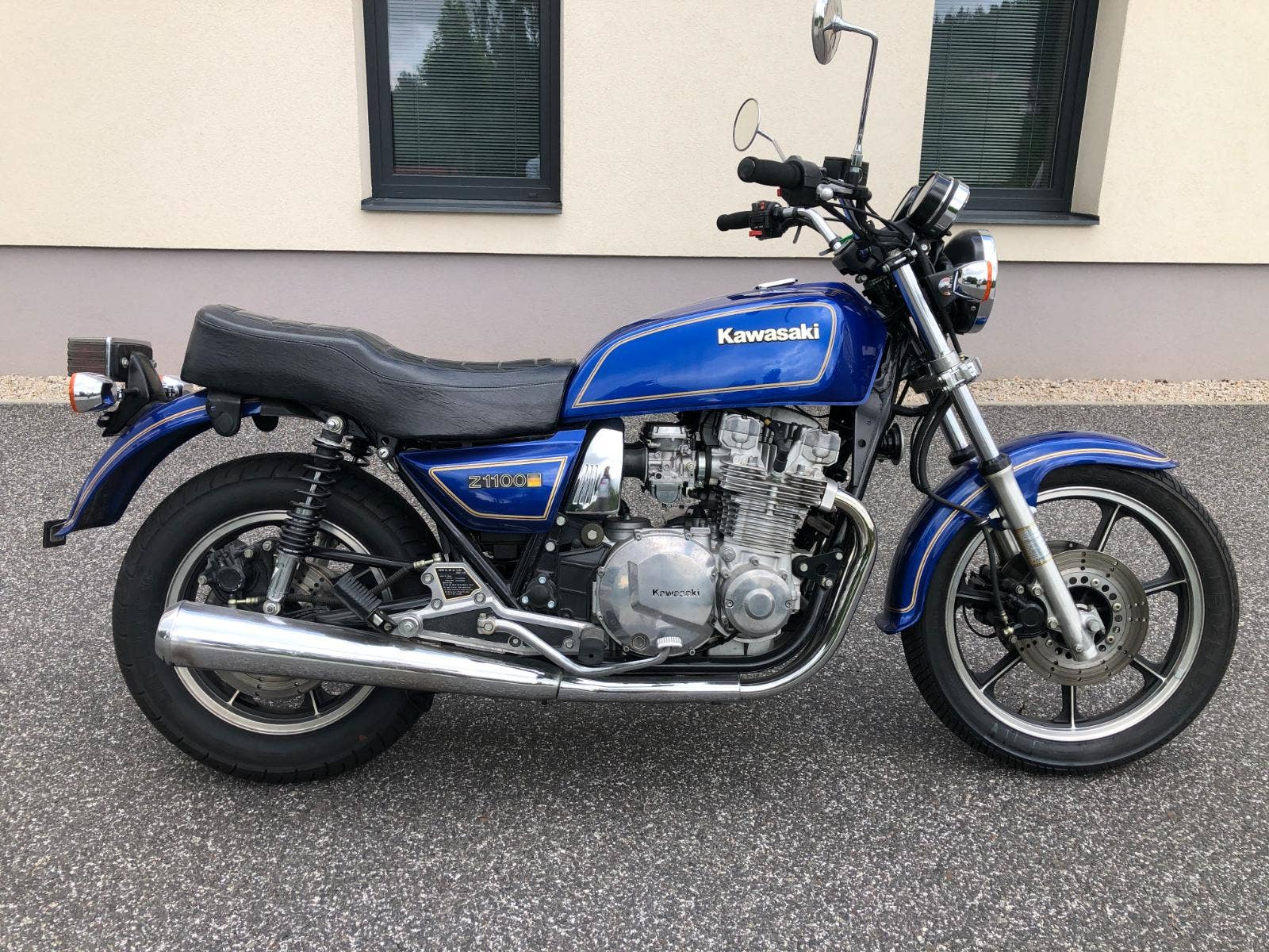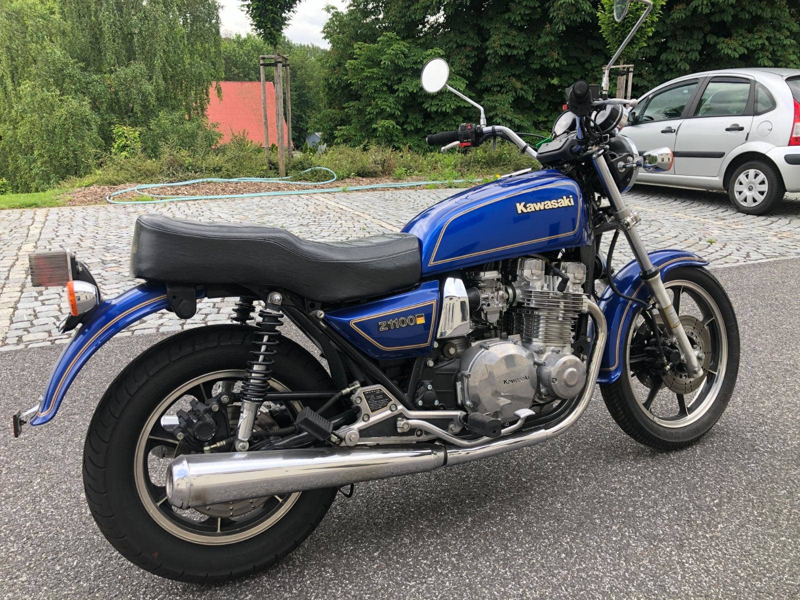 Krásná klasická Kawasaki Z1100, r.v. 1984, CZ TP, stav tacho 29tis km, původ DE, k motocyklu servisní kniha a manuál, serviska vyplňovaná do 28.713 km v roce 2008. Úžasný původní stav, minimální patina, zdravá nádrž, vše původní, nerenovované, původní lakování a původní potah sedla. Jedinou zásadní vadou na kráse jsou typicky vyrezlé koncovky výfuků. Motocykl dlouhodobě stál ve sbírce, lze jej nastartovat, nicméně pro návrat do života bude potřeba udělat plnohodnotný servis. Krásná motorka.
